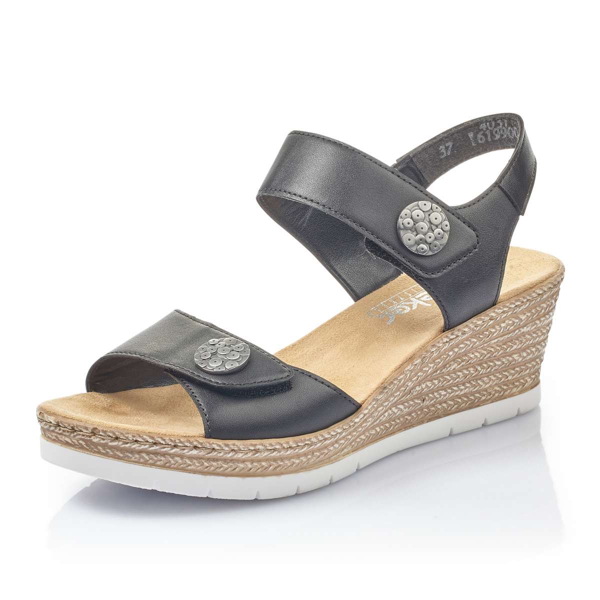 Sandálky na klínku od značky Rieker v jednoduchém stylovém provedení, které doplňují kovové komponenty na páscích. Zapínají se suchým zipem ve přední i kotníkové části. Tato letní obuv je vyrobena ve více barevných variantách a snadno ji sladíte s jakoukoliv kabelkou z naší široké nabídky.