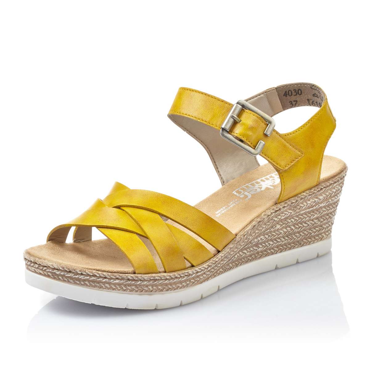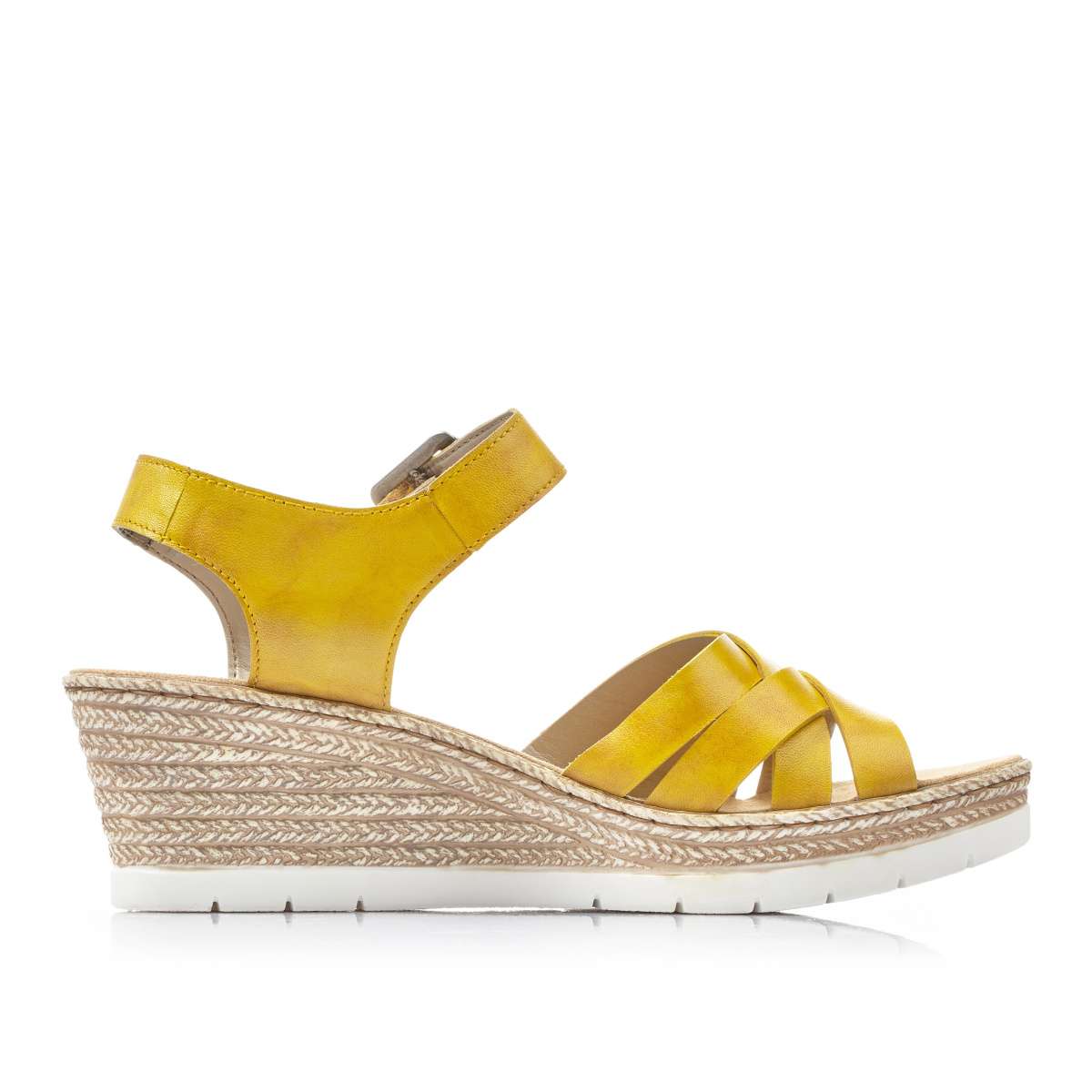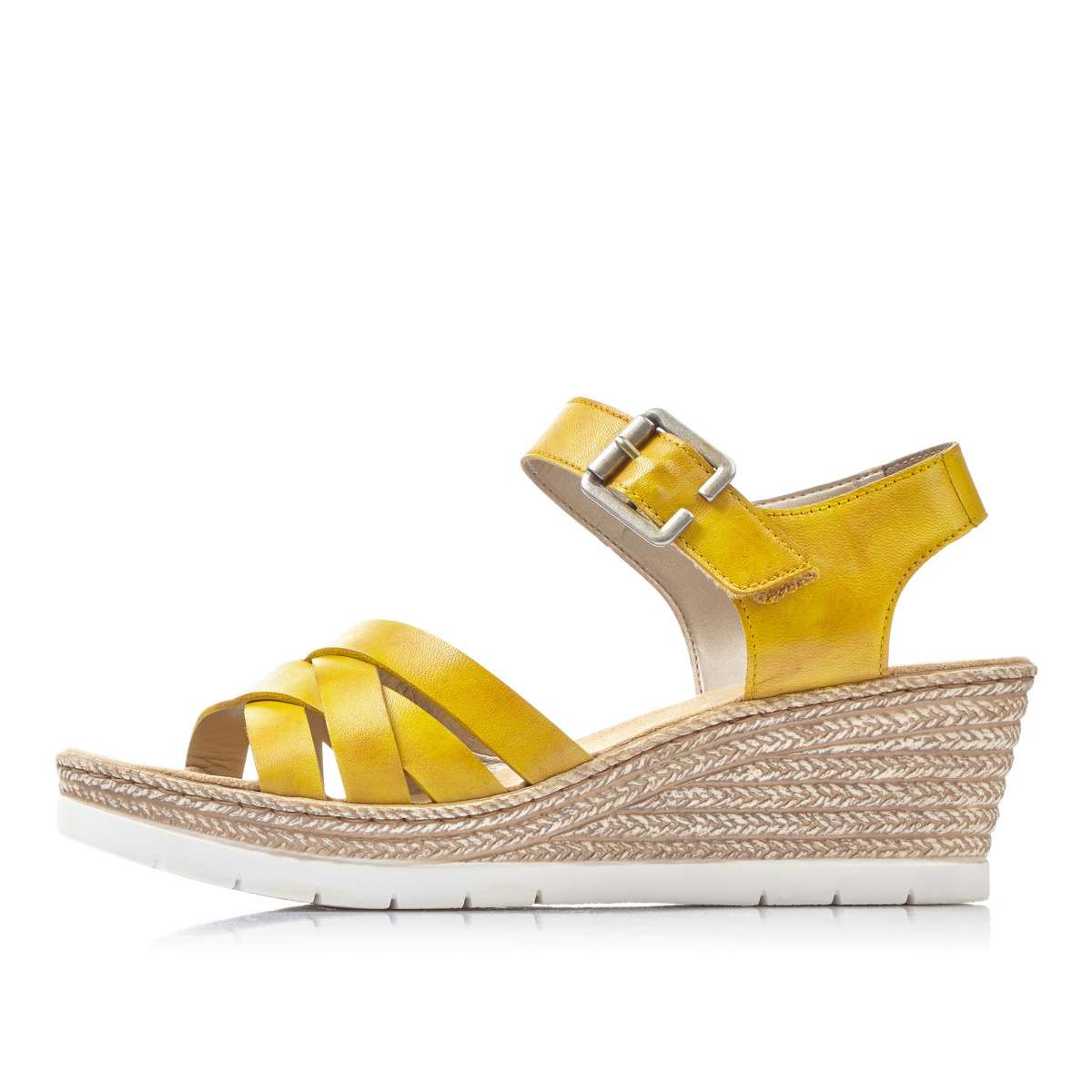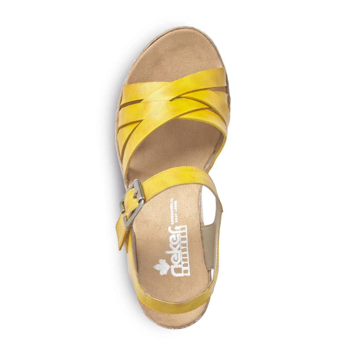 Žluté dámské sandály s přírodní usně, značky RIEKER.
