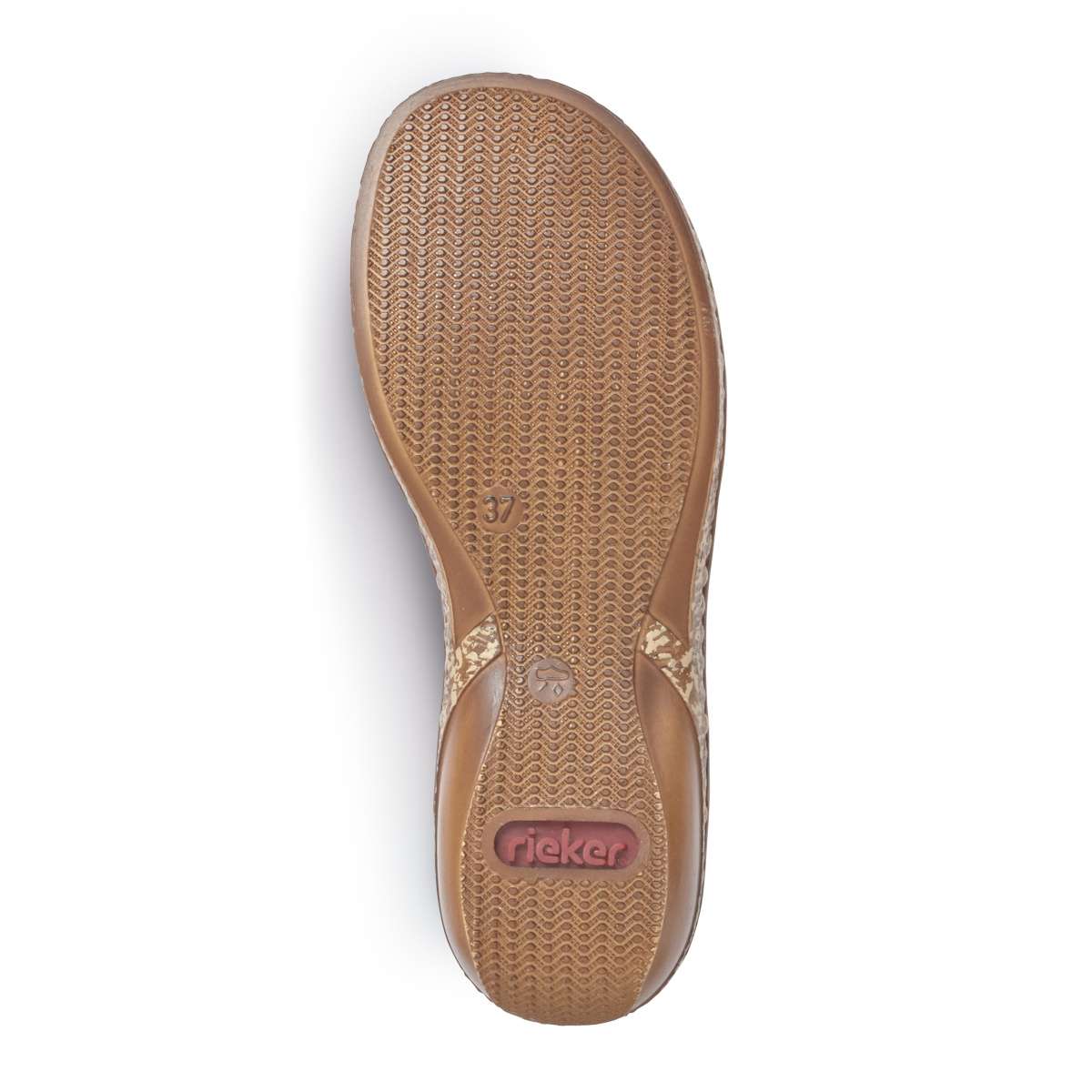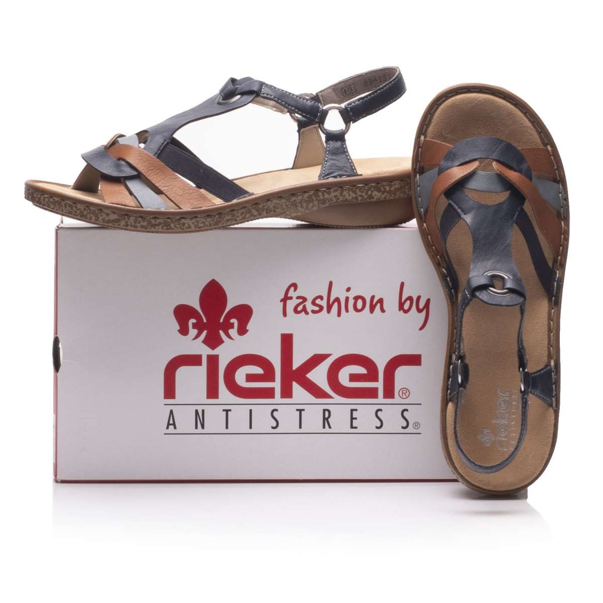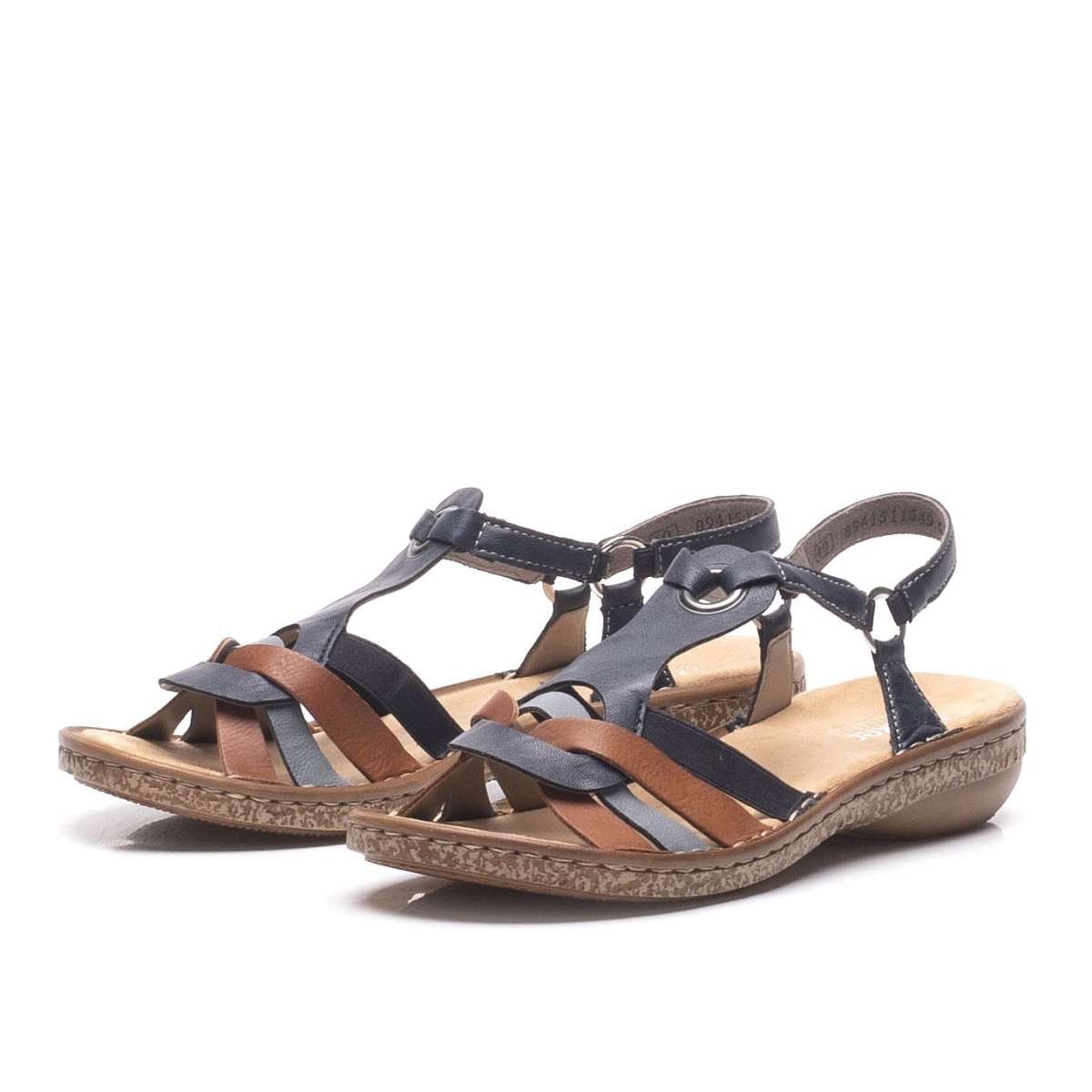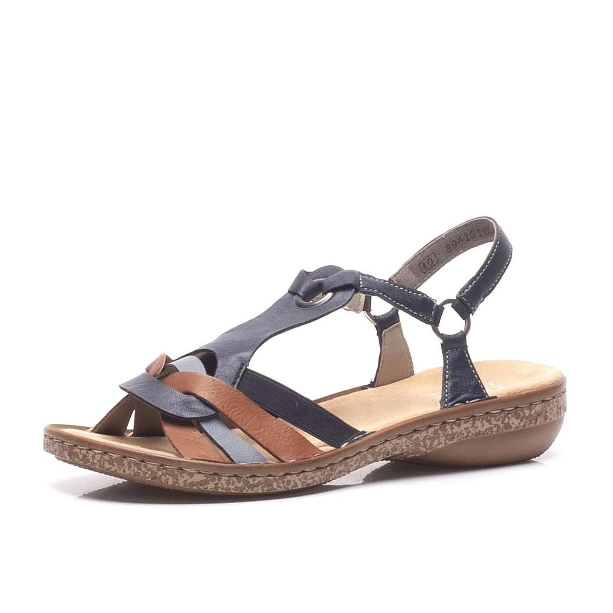 Tento letní model značky RIEKER, je zajímavý svým střihem a barevným provedením, kombinace hnědé barvy s modrou působí sportovně, takže si je můžete vzít k džínům nebo kraťasům. Obuv je vyrobena z kvalitního syntetického materiálu a jejich podpatek je vysoký 3,5cm.