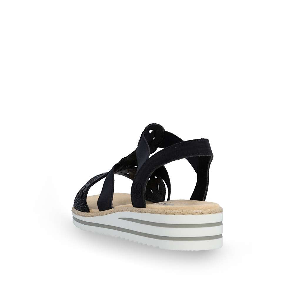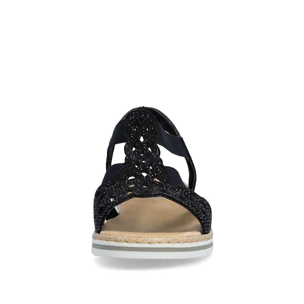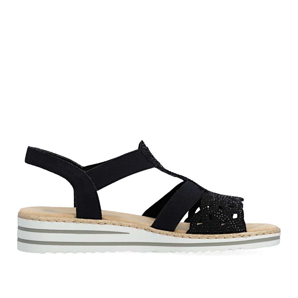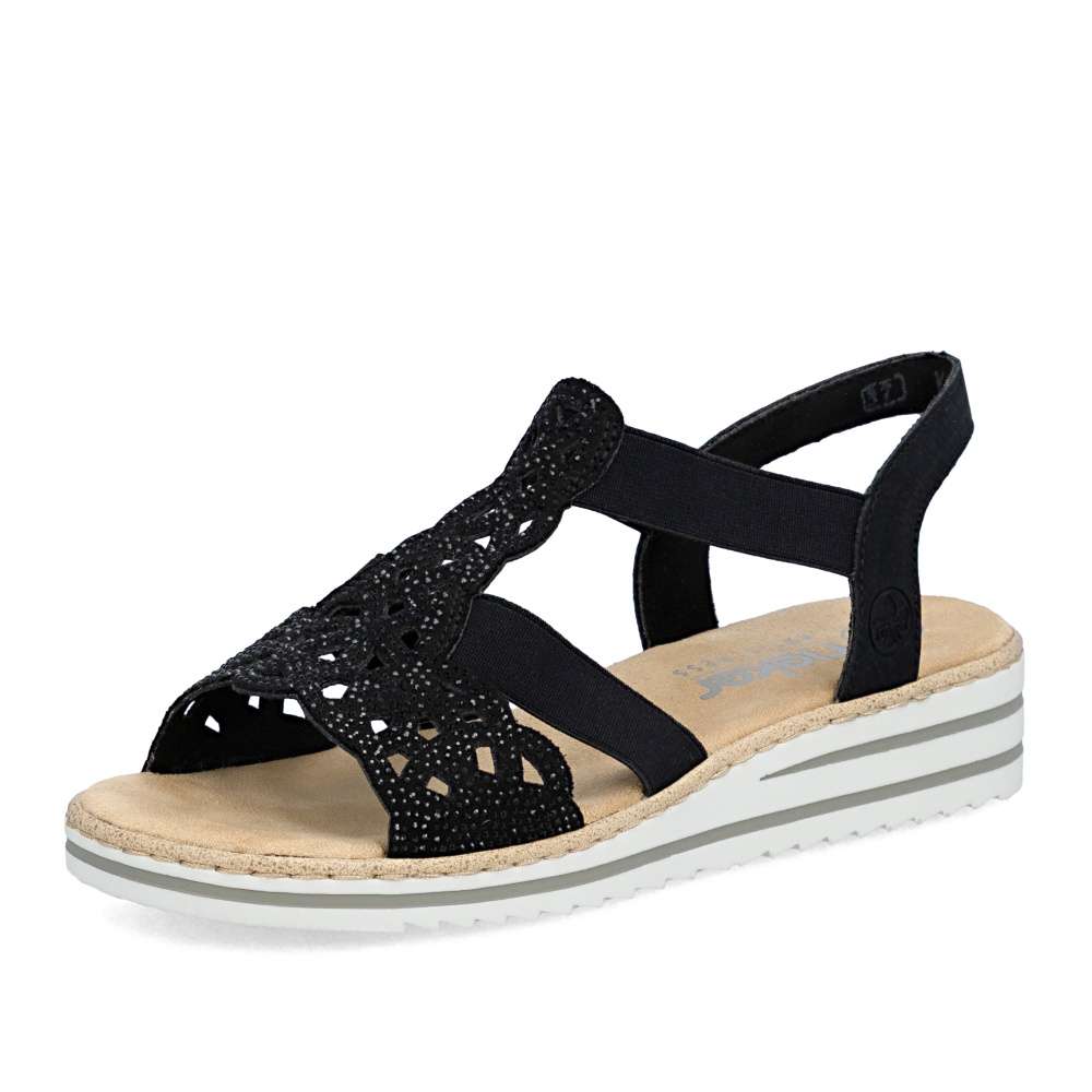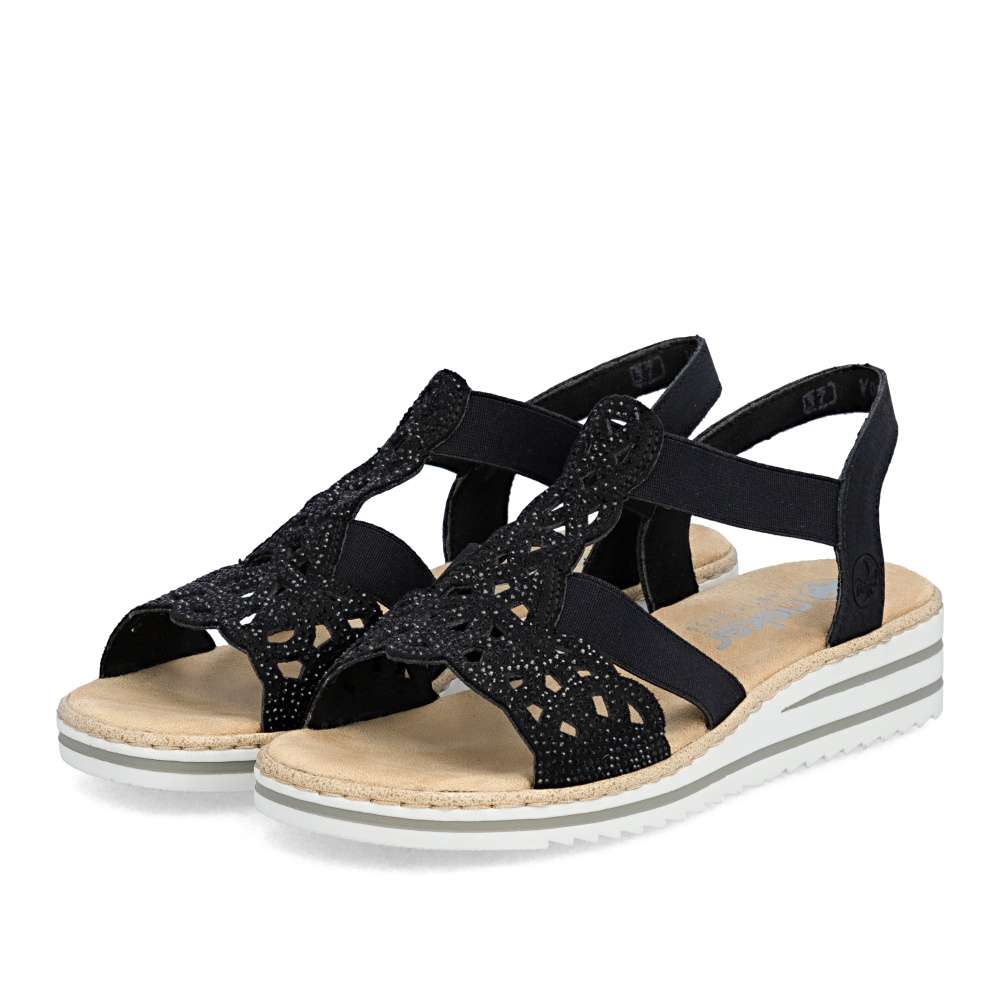 Půvabné sandály RIEKER zaujmou na první pohled svým elegantním zpracováním. Svršek je tvořen kombinací pevných a pružných pásků, které se krásně přizpůsobí noze a zajistí pohodlí při nošení. Výrazným dekoračním prvkem je perforovaný vzor doplněný drobnými kamínky, které dodávají sandálům jemný ženský šarm. Příjemná textilní stélka poskytuje komfort i během celodenního nošení, zatímco podešev účinně tlumí nárazy při chůzi. Ideální volba pro ženy, které touží po eleganci a pohodlí v jednom.