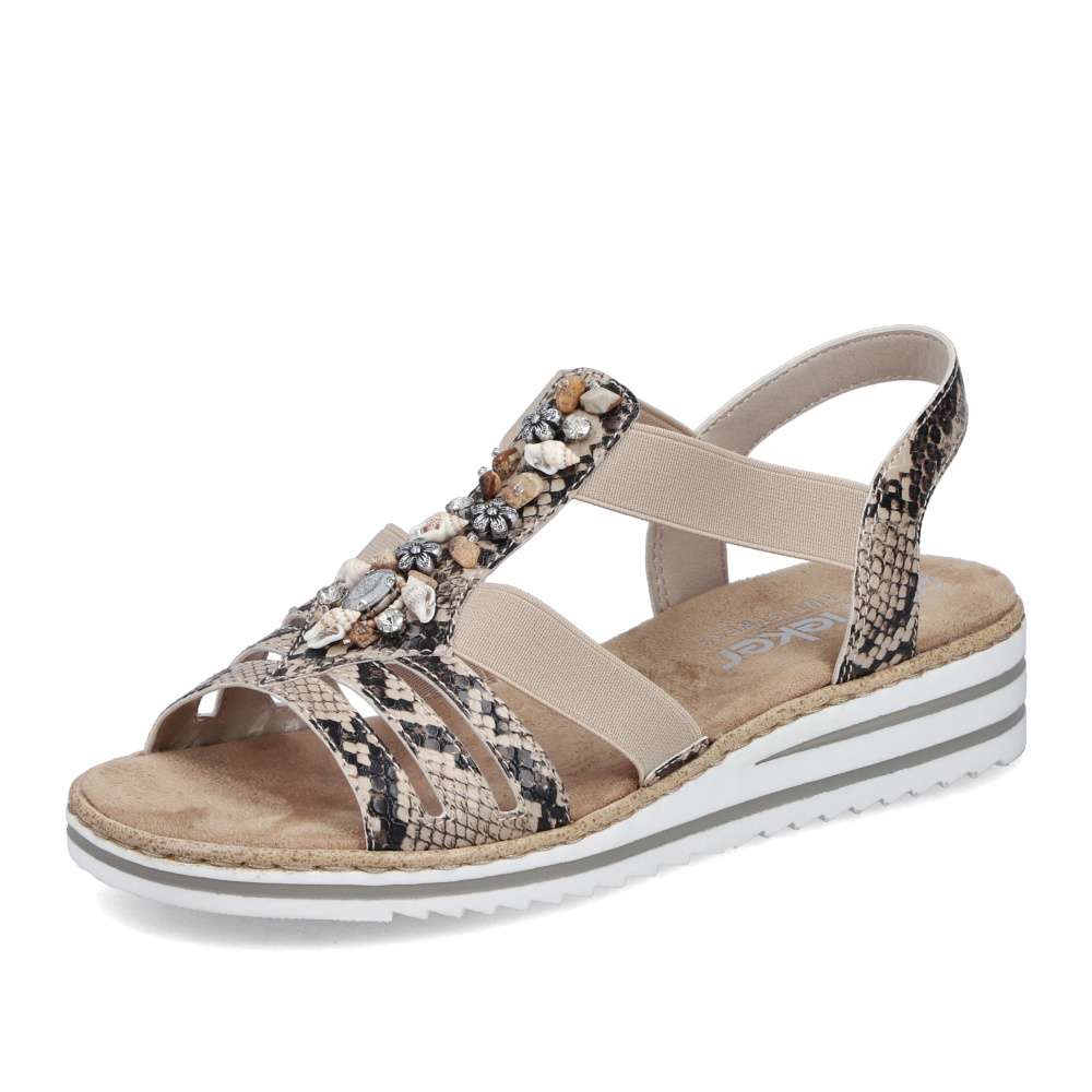 Atraktivní kombinace vzoru a malých aplikací na nártovém pásku vytváří tyto jedinečné sandály RIEKER, které doplní Vaše letní dny originalitou. Promyšlená kombinace pevných a pružných pásků zajistí dokonalé přizpůsobení chodidlu, stabilitu i pohodlí při každém kroku. Pružné pásky navíc výrazně usnadňují obouvání a zaručují příjemné nošení bez nepříjemného tlaku. O pohodlí při každém kroku se postará textilní stélka, která je příjemná na dotek, zatímco komfortní podešev účinně tlumí nárazy při chůzi a přispívá k celkovému pohodlí během nošení. Tyto sandály jsou ideální volbou pro ženy, které chtějí spojit stylový vzhled s maximálním pohodlím během letních dnů.
