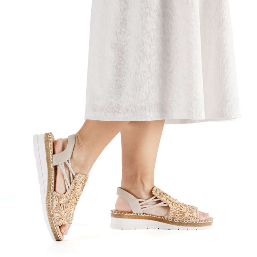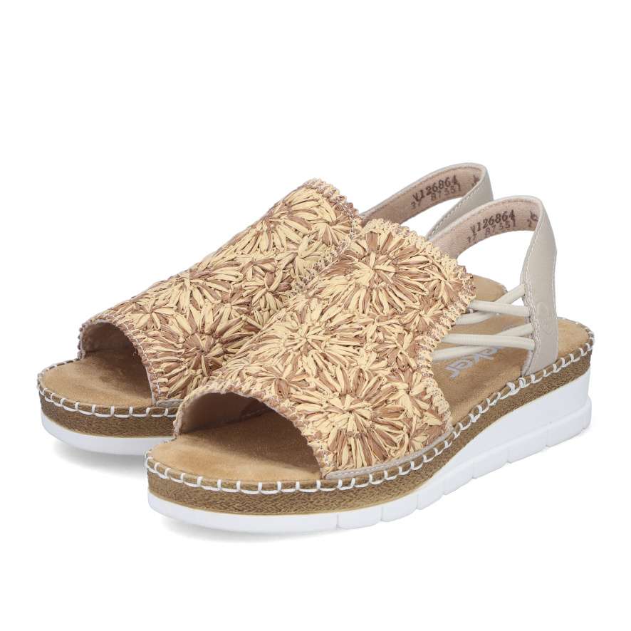 Sandály RIEKER se stanou skutečnou ozdobou vašich nohou a dodají každému outfitu stylový nádech. Svršek ze strukturovaného materiálu v nápaditých vzorech působí originálně a doplní Váš šatník jedinečným vzhledem. Praktické boční gumičky zajišťují snadné obouvání a zároveň se přizpůsobí tvaru chodidla. Pevný zadní pásek poskytuje potřebnou oporu a stabilitu při chůzi, takže se můžete cítit pohodlně po celý den. Příjemná textilní stélka je měkká na dotek a přispívá k celkovému komfortu při nošení. Vyšší podešev navíc účinně tlumí nárazy při chůzi a dodává sandálům moderní vzhled svým precizním zpracováním. Tyto sandály RIEKER jsou ideální volbou pro letní dny – skvěle doplní šaty, sukně i ležérní outfity a poskytnou vám pohodlí i styl v jednom.