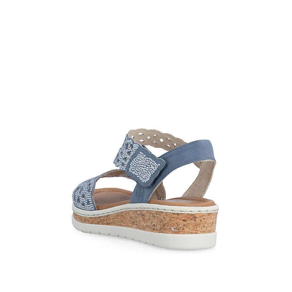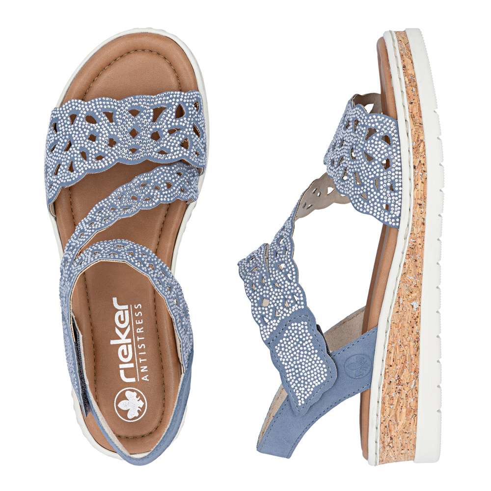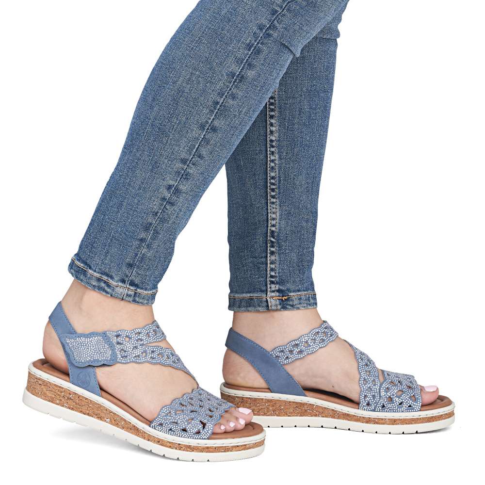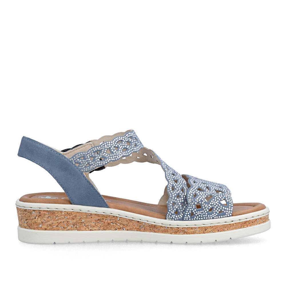 Tyto modré sandály RIEKER jsou skutečným módním skvostem, který kombinuje eleganci, komfort a ženský půvab. Působivý perforovaný vzor svršku a jemné lesklé aplikace dodávají sandálům jedinečný vzhled, který zaujme na první pohled. Každý detail byl pečlivě promyšlen, aby boty působily luxusně a zároveň prakticky. Pásky svršku jsou precizně poskládané a zajišťují dokonalé držení nohy, zatímco pásek přes nárt s praktickým suchým zipem umožňuje snadné nazutí a perfektní přizpůsobení tvaru chodidla. Textilní stélka poskytuje maximální pohodlí a vyšší klínový podpatek s nárazy tlumící funkcí zajišťuje stabilitu při každém kroku. Tyto sandály jsou ideální pro ženy, které chtějí spojit moderní styl s bezkonkurenčním komfortem - ať už do práce, na večerní setkání s přáteli nebo na letní procházku městem. S těmito sandály RIEKER se stává váš letní outfit nepřehlédnutelným a stylovým vyjádřením osobnosti a vkusu.