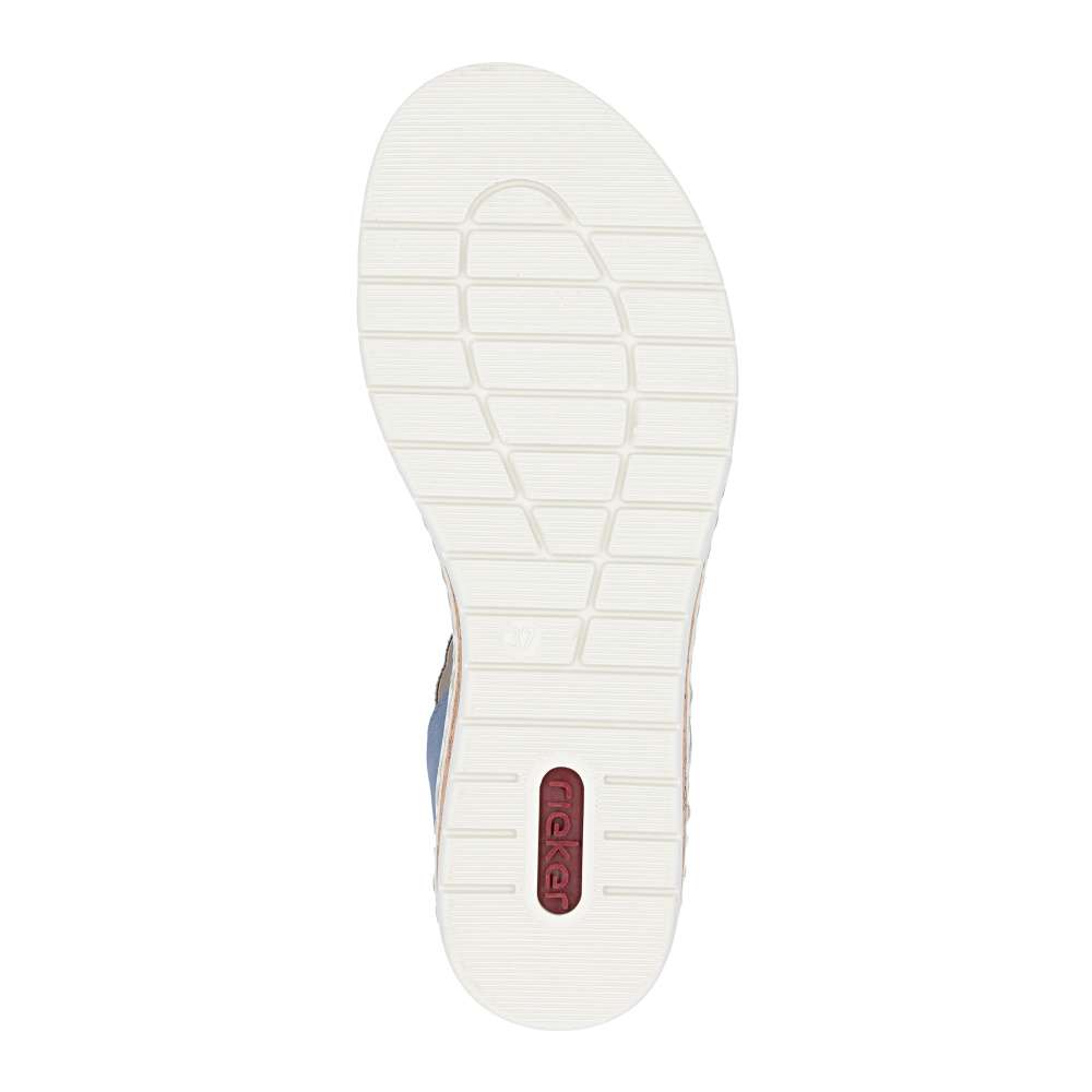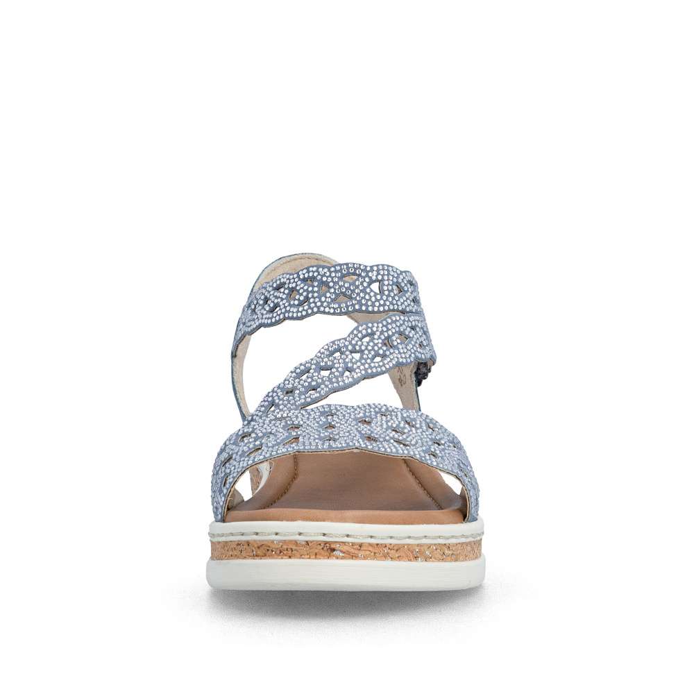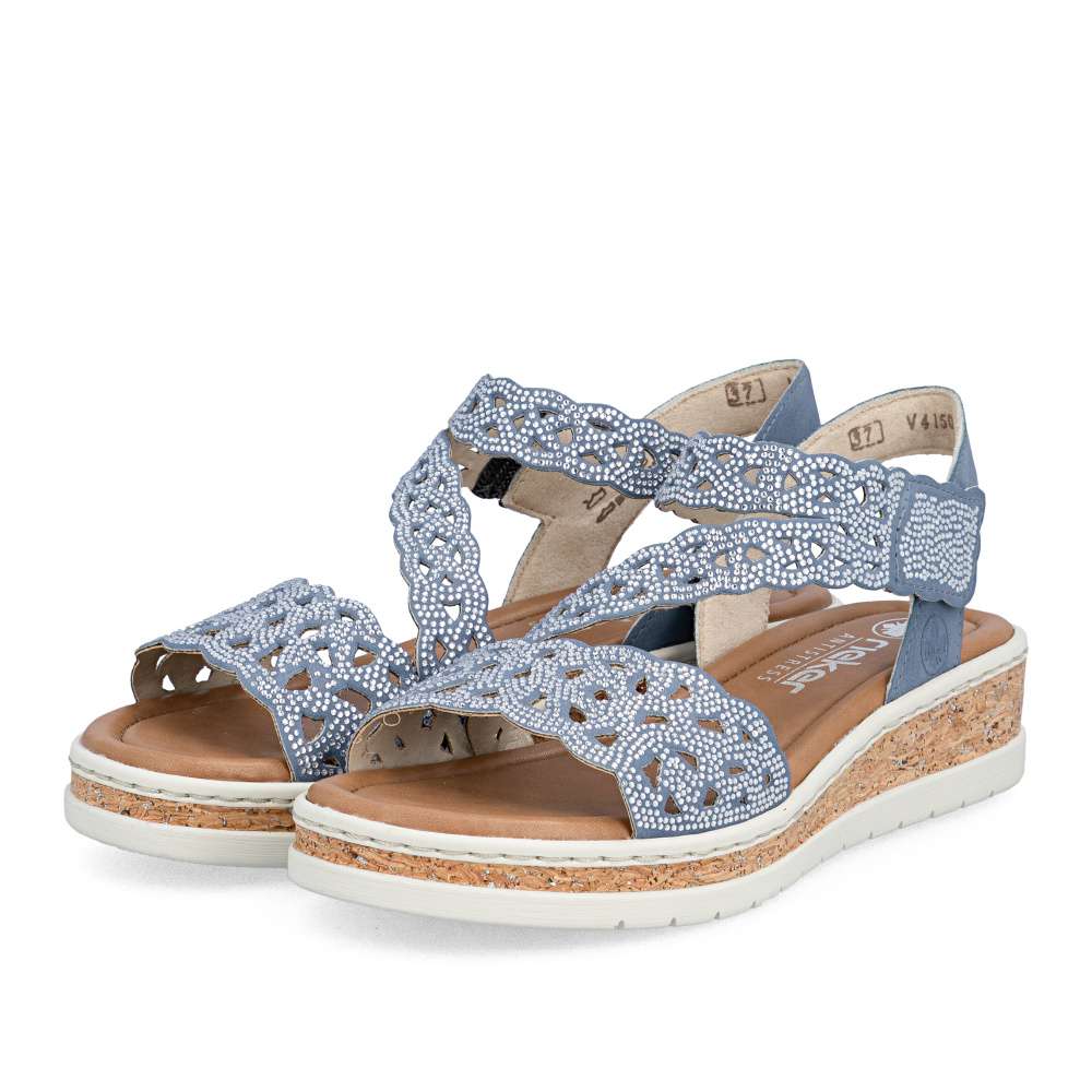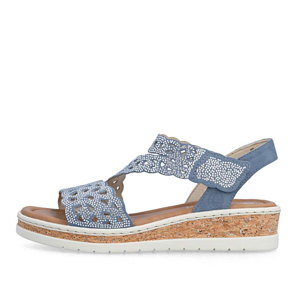 Tyto modré sandály RIEKER jsou skutečným módním skvostem, který kombinuje eleganci, komfort a ženský půvab. Působivý perforovaný vzor svršku a jemné lesklé aplikace dodávají sandálům jedinečný vzhled, který zaujme na první pohled. Každý detail byl pečlivě promyšlen, aby boty působily luxusně a zároveň prakticky. Pásky svršku jsou precizně poskládané a zajišťují dokonalé držení nohy, zatímco pásek přes nárt s praktickým suchým zipem umožňuje snadné nazutí a perfektní přizpůsobení tvaru chodidla. Textilní stélka poskytuje maximální pohodlí a vyšší klínový podpatek s nárazy tlumící funkcí zajišťuje stabilitu při každém kroku. Tyto sandály jsou ideální pro ženy, které chtějí spojit moderní styl s bezkonkurenčním komfortem - ať už do práce, na večerní setkání s přáteli nebo na letní procházku městem. S těmito sandály RIEKER se stává váš letní outfit nepřehlédnutelným a stylovým vyjádřením osobnosti a vkusu.