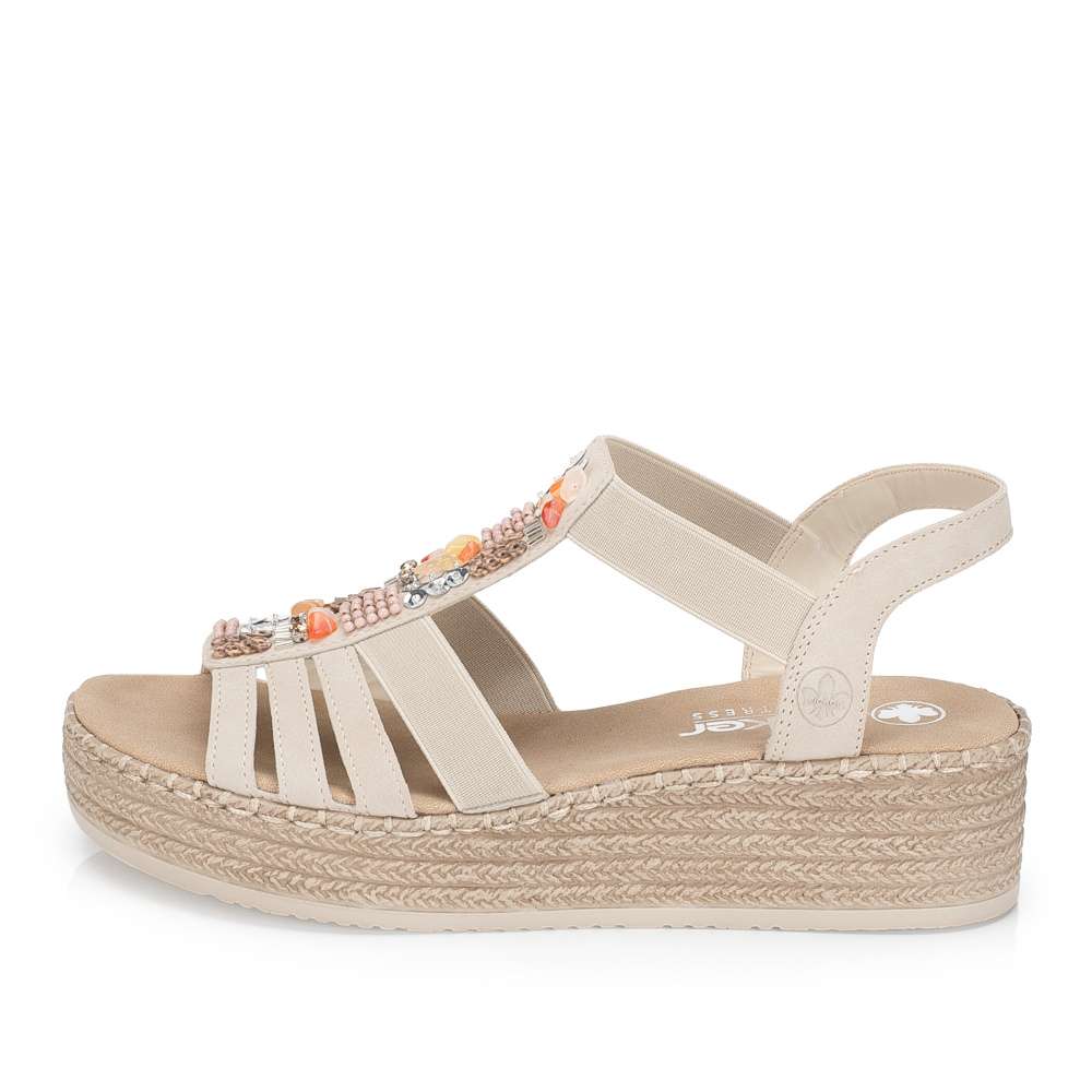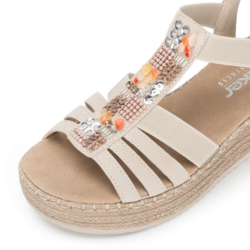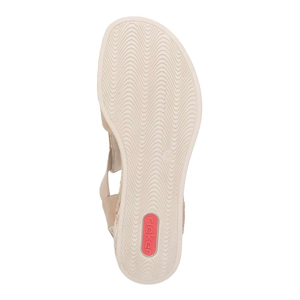Letní pohoda ve stylu značky RIEKER – přesně to nabízí tyto sandály v béžovém odstínu, které spojují komfort s moderním vzhledem. Promyšlená kombinace pevných a pružných pásků se krásně přizpůsobí noze a zajistí pohodlné nošení, zatímco středový pásek dekorovaný atraktivními aplikacemi dodává sandálům originální charakter. Díky praktickému provedení do nich jednoduše vklouznete a můžete si užívat příjemnou textilní stélku. Podešev s tlumícím efektem účinně absorbuje nárazy při chůzi, čímž snižuje únavu nohou a zajišťuje komfort i během dlouhých letních dnů. Tyto sandály RIEKER jsou ideálním společníkem na procházky městem, dovolenou i běžné každodenní nošení – dopřejí vám pocit lehkosti, pohodlí a stylu, který si zamilujete hned od prvního obutí.