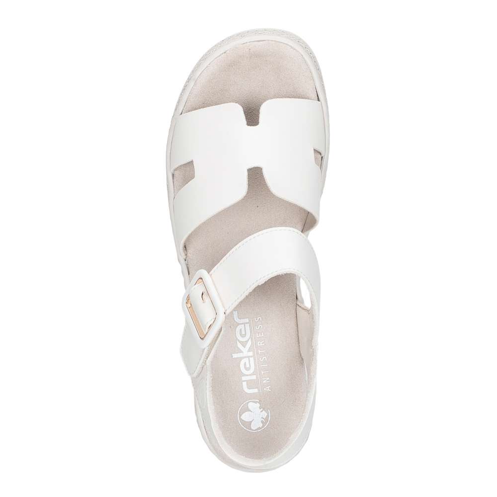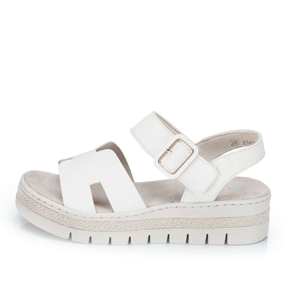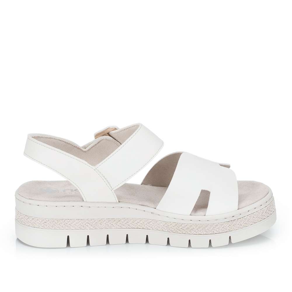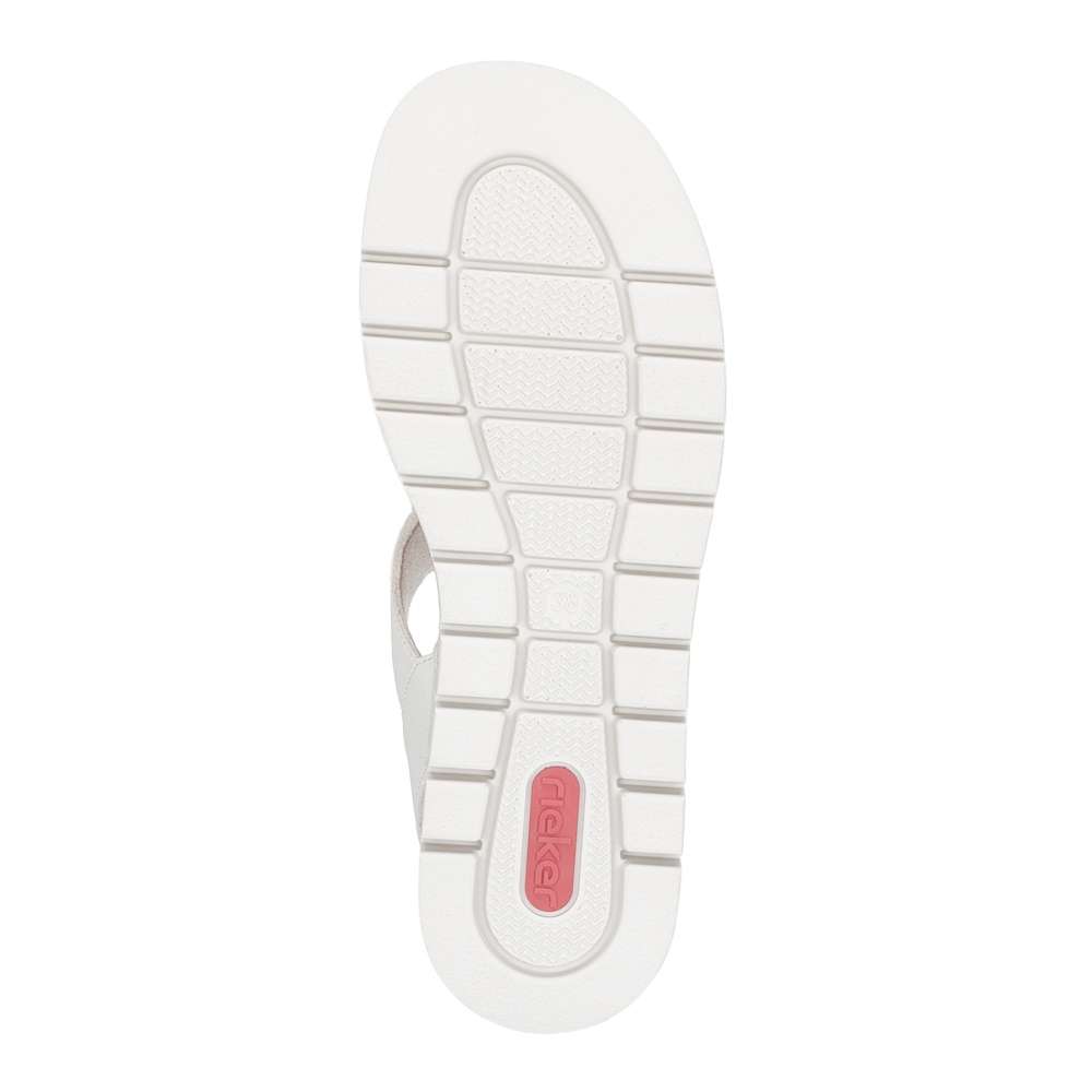 Sandály RIEKER v působivě nadčasovém stylu zaujmou čistým designem a precizně tvarovanými liniemi pásků. Béžový svršek působí svěže a elegantně, díky čemuž se snadno kombinuje s letními šaty i ležérními kalhotami. Pásek u kotníku je vybaven praktickým suchým zipem a doplněn výraznou sponou, která dodává modelu moderní akcent a zároveň zajistí pevné usazení na noze. Příjemná textilní stélka poskytne komfort při každém kroku a zpříjemní také celodenní nošení. Vyšší podešev efektivně tlumí nárazy při chůzi, čímž zvyšuje pohodlí a dodává sandálům stylový, sebevědomý vzhled. Tento model je ideální volbou pro ženy, které chtějí spojit eleganci, funkčnost a moderní design.