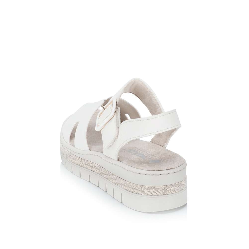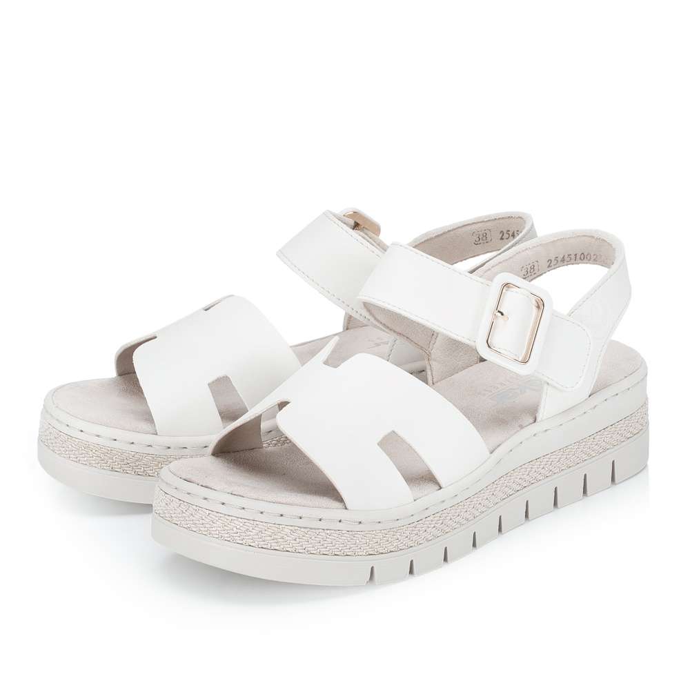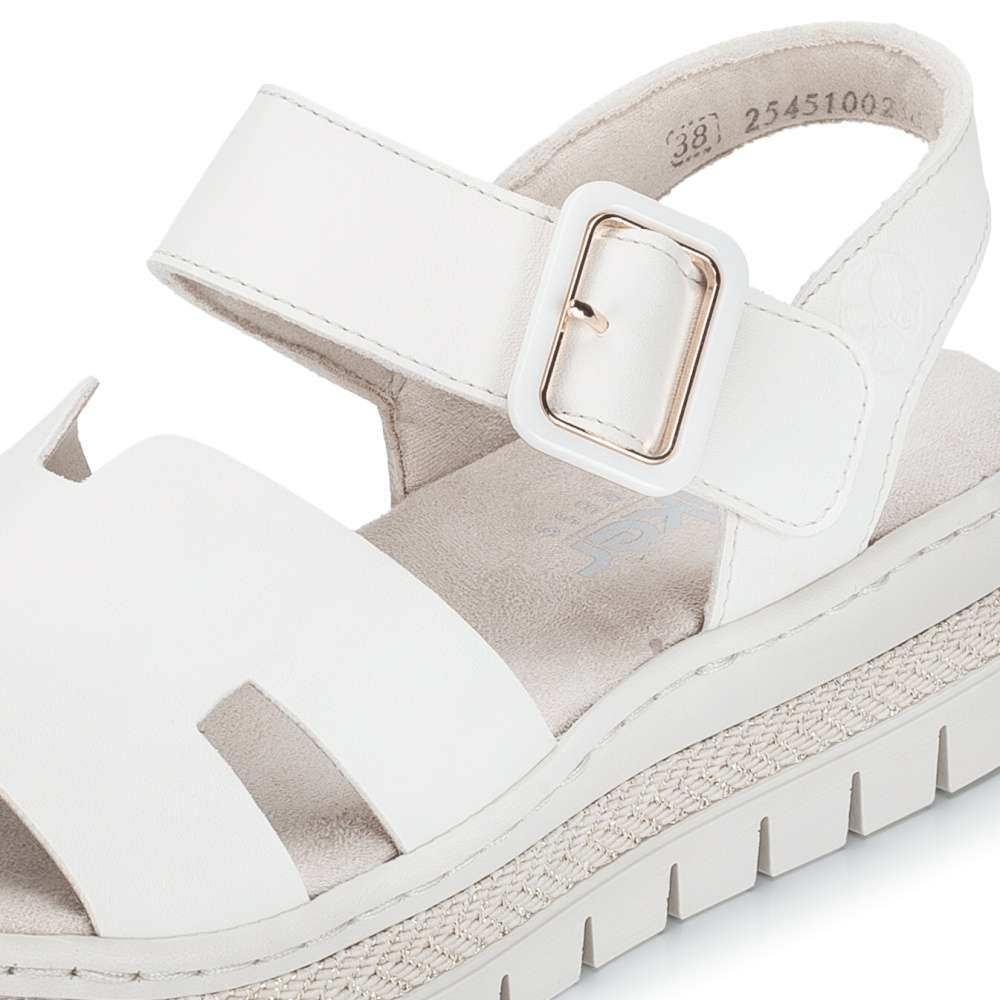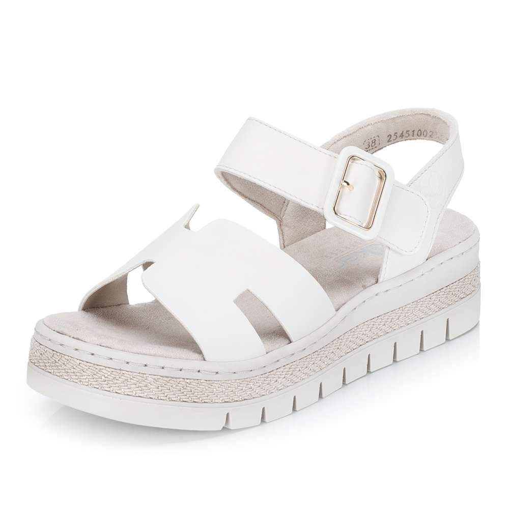 Sandály RIEKER v působivě nadčasovém stylu zaujmou čistým designem a precizně tvarovanými liniemi pásků. Béžový svršek působí svěže a elegantně, díky čemuž se snadno kombinuje s letními šaty i ležérními kalhotami. Pásek u kotníku je vybaven praktickým suchým zipem a doplněn výraznou sponou, která dodává modelu moderní akcent a zároveň zajistí pevné usazení na noze. Příjemná textilní stélka poskytne komfort při každém kroku a zpříjemní také celodenní nošení. Vyšší podešev efektivně tlumí nárazy při chůzi, čímž zvyšuje pohodlí a dodává sandálům stylový, sebevědomý vzhled. Tento model je ideální volbou pro ženy, které chtějí spojit eleganci, funkčnost a moderní design.