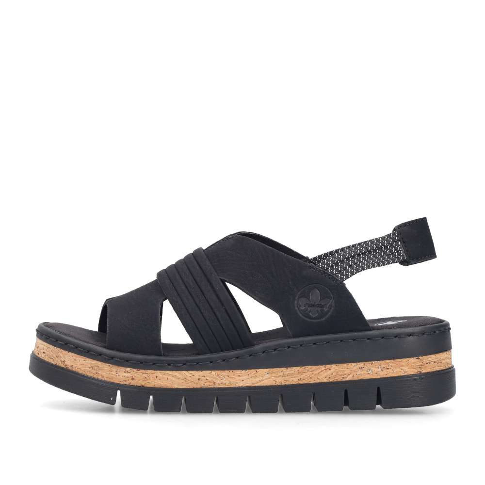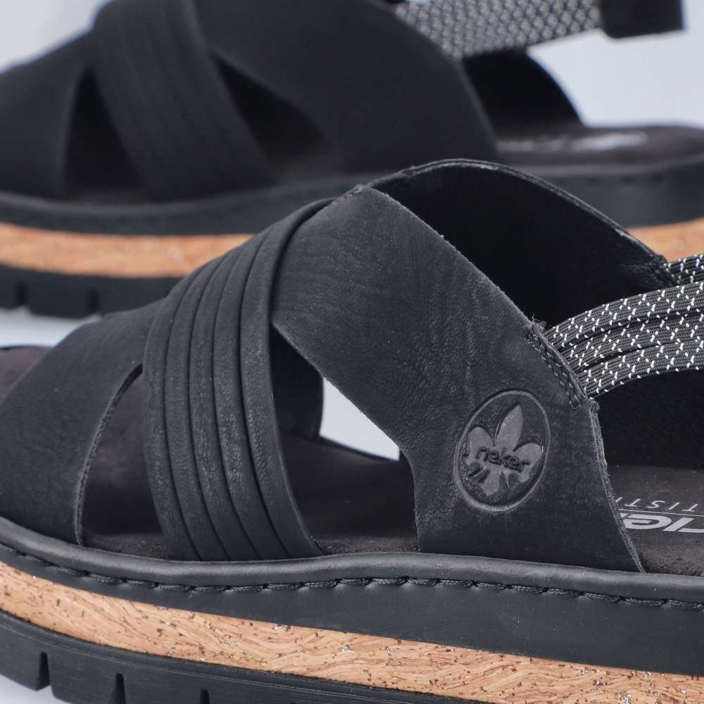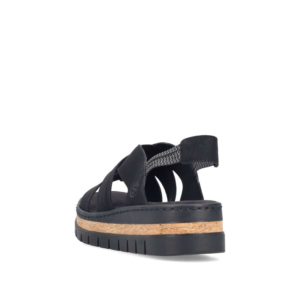 Černé sandály RIEKER okouzlí svou působivou skladbou elegantně poskládaných pásků, které přidají ženský šarm. Zadní pružné gumičky usnadní nazutí a přizpůsobí se vaší noze. Měkká textilní stélka rozmazlí vaše chodidla příjemným došlapem, zatímco vyšší podešev tlumí nárazy a dodává stabilitu, přičemž svým designem podtrhuje jedinečný charakter sandálů. Tyto sandály nejsou jen obuví – jsou výrazem vašeho stylu, sebevědomí a radosti z každého letního kroku.