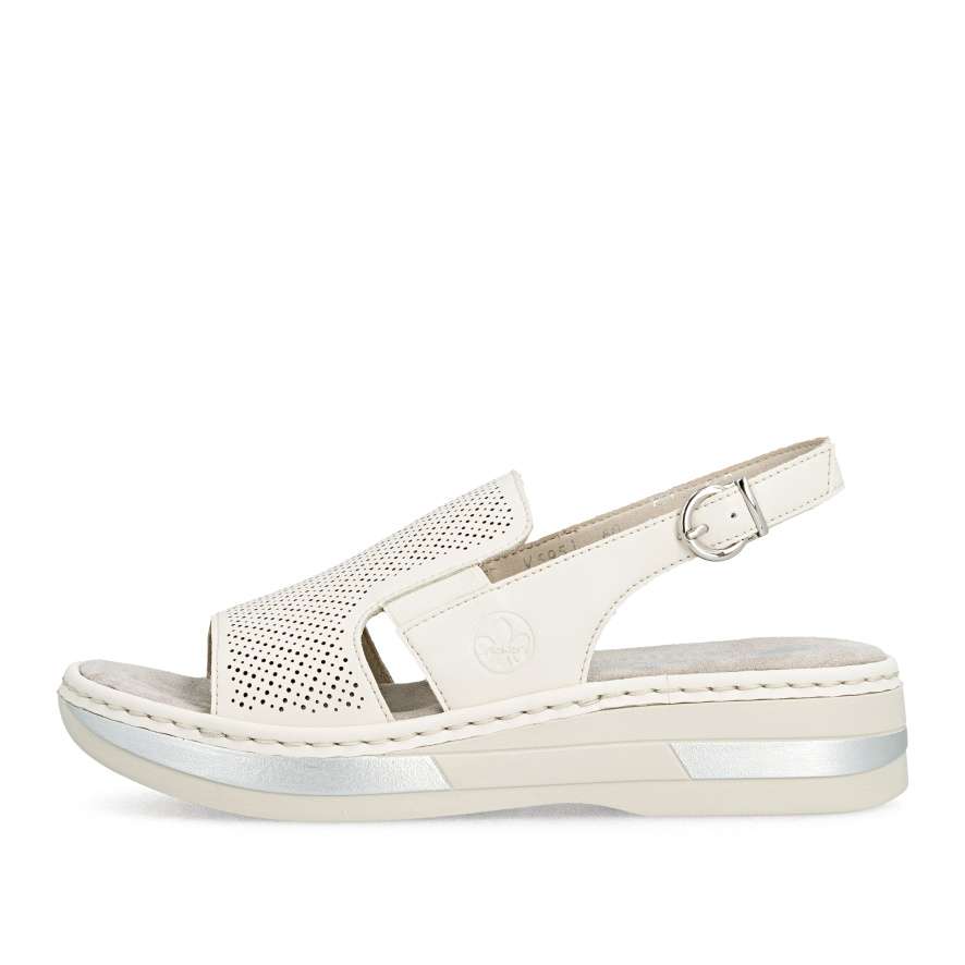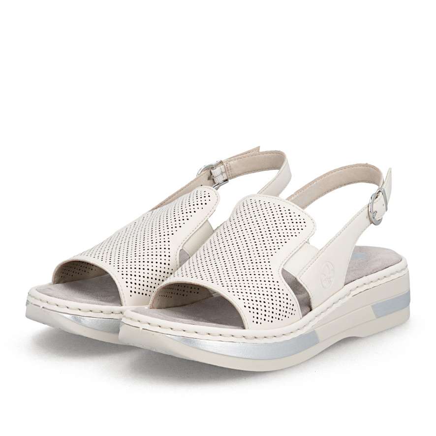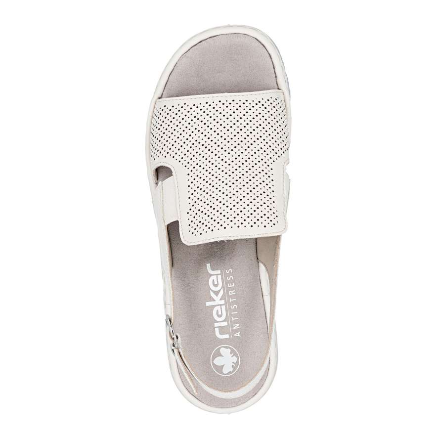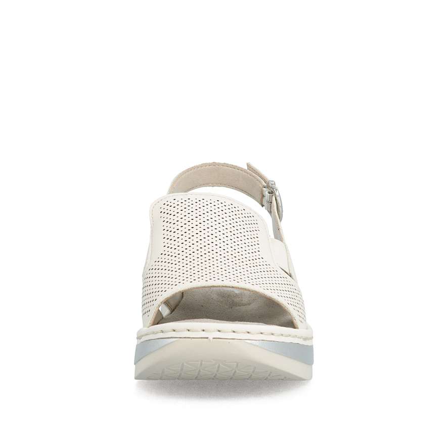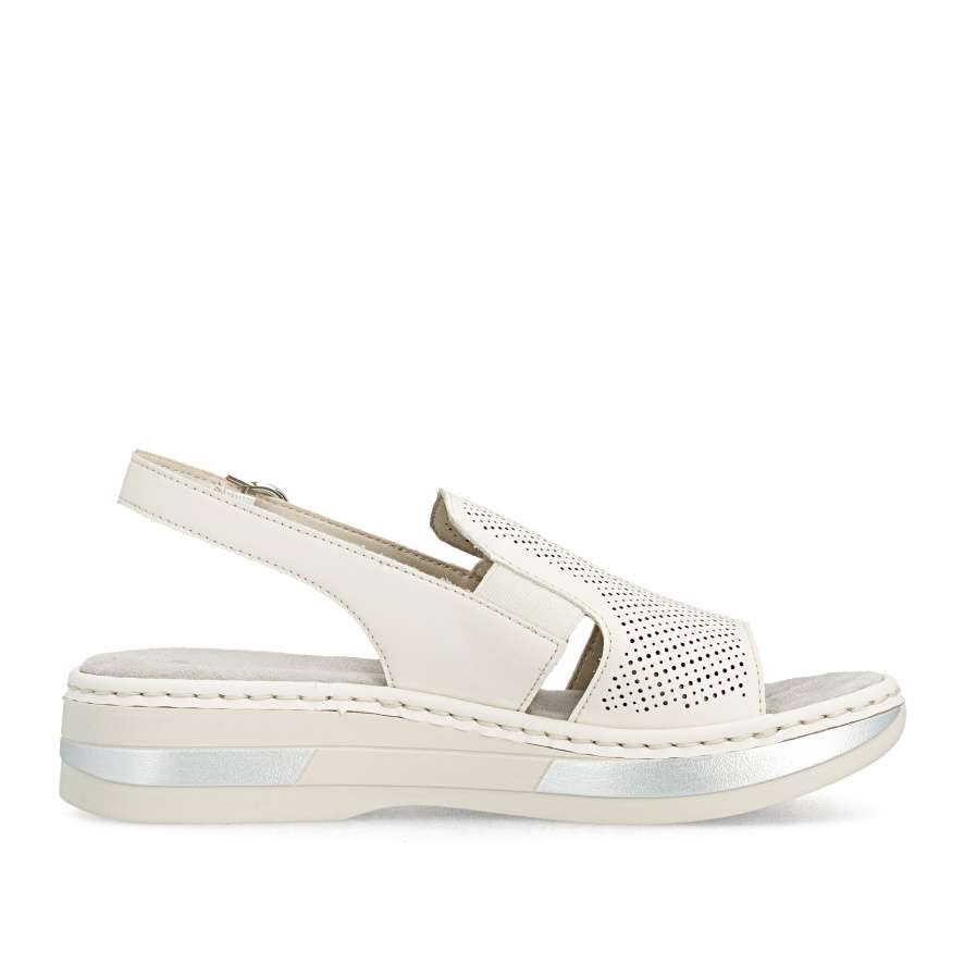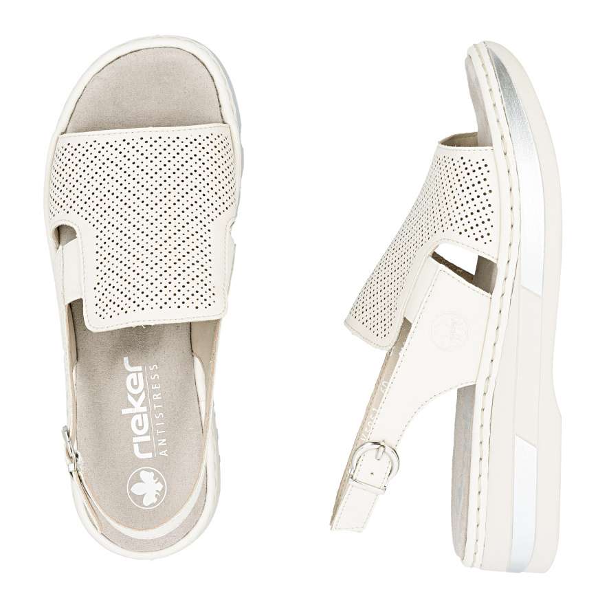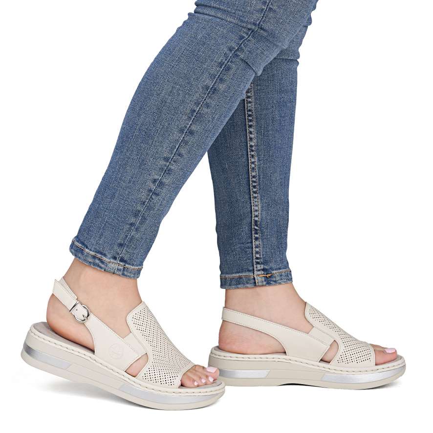 Tyto kožené sandály RIEKER jsou ztělesněním pohodlí a ženského šarmu, který si zamilujete při každém kroku. Univerzální béžový odstín je činí dokonale kombinovatelnými s různými outfity, zatímco minimalistická perforace na svršku a jemné logo značky dodávají moderní detail. Vsazené gumičky po stranách nártu umožňují snadné a rychlé nazutí, zatímco zadní nastavitelná spona zajistí, že se sandály přesně přizpůsobí tvaru vaší nohy. Textilní stélka poskytuje měkký komfort a pečuje o pohodlí i při celodenním nošení. Vyšší podešev s tlumením nárazů zajišťuje stabilitu a její lesklé lemování jedinečný vzhled, který je ideální pro ženy, které chtějí být stylové, aniž by obětovaly komfort. Ať už projíždíte městem, strávíte den na setkání s přáteli, nebo si jen vychutnáváte slunečný den venku, tyto sandály vám dodají jistotu, styl a pohodlí, které si zamilujete každý den.