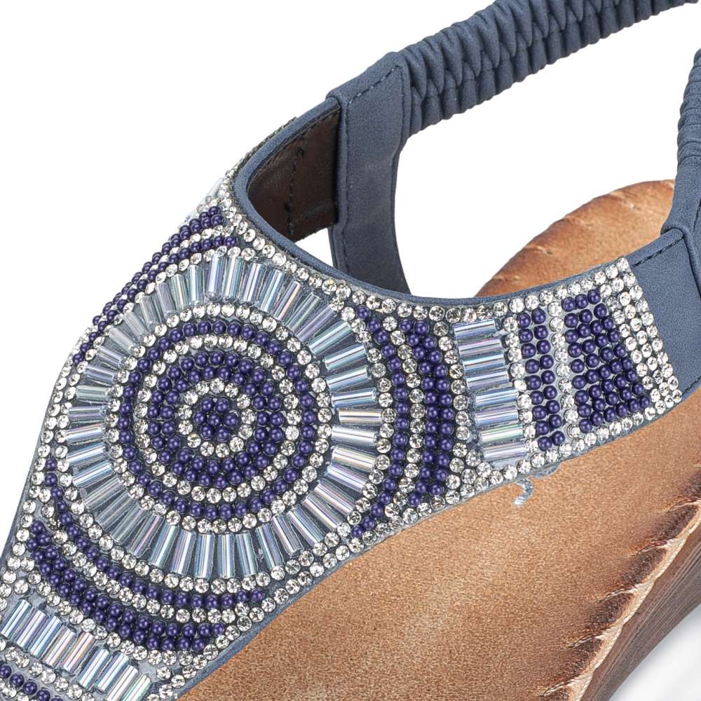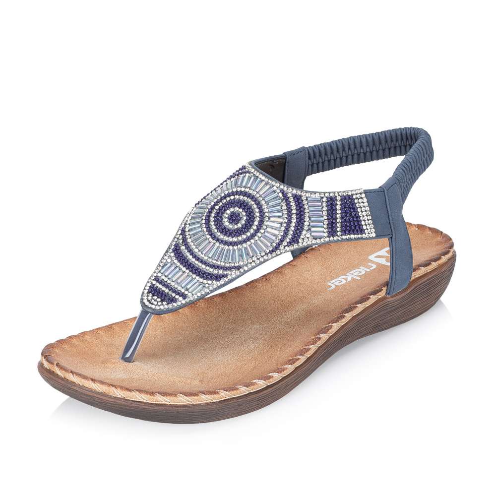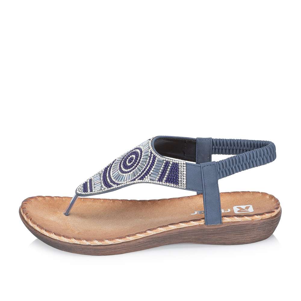 Tyto unikátní sandály Rieker se stanou skutečným šperkem pro vaše nohy. Modrý svršek je v oblasti nártu ozdoben precizně poskládanými aplikacemi s jemnými odlesky, které dodávají sandálům jedinečný charakter. Zadní pružná gumička se stará o pohodlné nazouvání a perfektní přizpůsobení se chodidlu, zatímco příjemná stélka zajistí komfort každým krokem. Podešev tlumí nárazy při chůzi, takže si můžete užívat dlouhé procházky nebo letní dny bez kompromisů na pohodlí. Tyto sandály jsou dokonalou kombinací stylu a komfortu, ideální pro letní dny, kdy chcete zazářit a zároveň se cítit pohodlně. Dokonalá souhra moderního vzhledu a maximálního pohodlí díky funkčním technologiím to jsou boty RIEKER Sport.