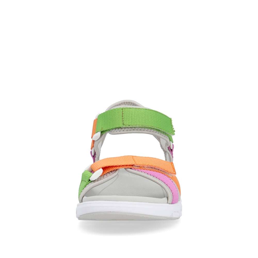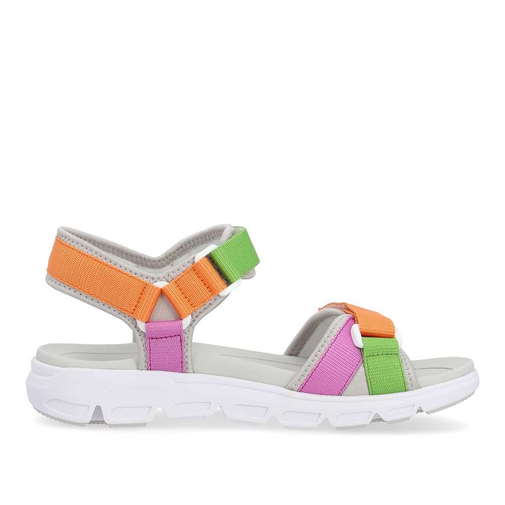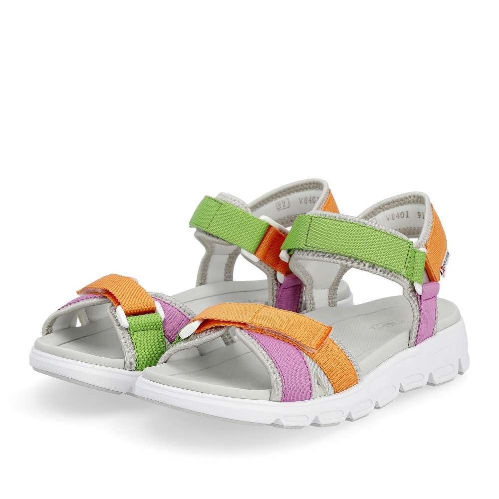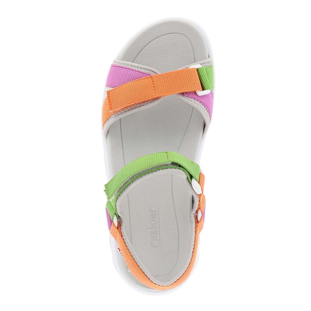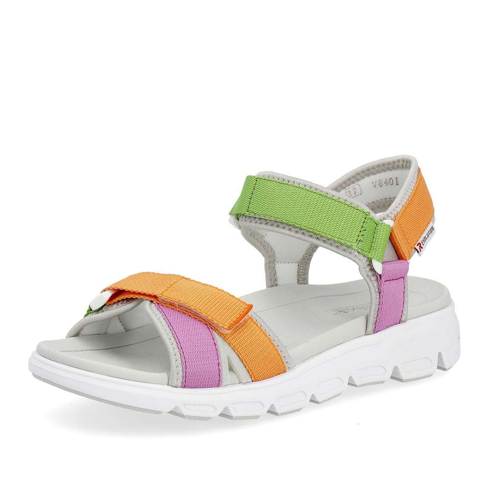 Rieker Revolution je nová řada moderní sportovní obuvi s obrovským důrazem na komfort a pohodlí i při celodenním nošení. Tyto dámské sandálky budou chtít nosit všechny ženy, které mají rády pestré barvy. Sandálky jsou velice pohodlné a pásky si můžete nastavit díky zapínání na suchý zip. Boty jsou vhodné jak ke kalhotám, tak k sukni nebo třeba k šatům. Tak neváhejte a vyrazte do města.