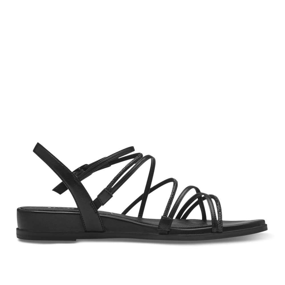 Elegantní sandálky značky Tamaris krásně doplní Vaše outfity na letních setkáních svými odlesky a třpytivými kamínky na propletení tenkých pásků. Tato kombinace vytváří unikátní vzhled této obuvi. Komfort na každém kroku Vám zajistí měkká stélka a pásek u kotníku se sponou, kterým si obuv přizpůsobíte dle svých požadavků. Tento model bude ozdobou Vašich nohou při každé příležitosti. Technologie: Touch-it – měkká stélka, která se dokonale přizpůsobí tvaru nohy, a díky tomu při nošení zajišťuje optimální pohodlí. ANTISLIDE – obuv s patentovaným protiskluzovým prvkem v podpatku, který výrazným způsobem snižuje riziko uklouznutí na kluzkém povrchu. VEGAN – pro zodpovědný životní styl bez živočišných materiálů.