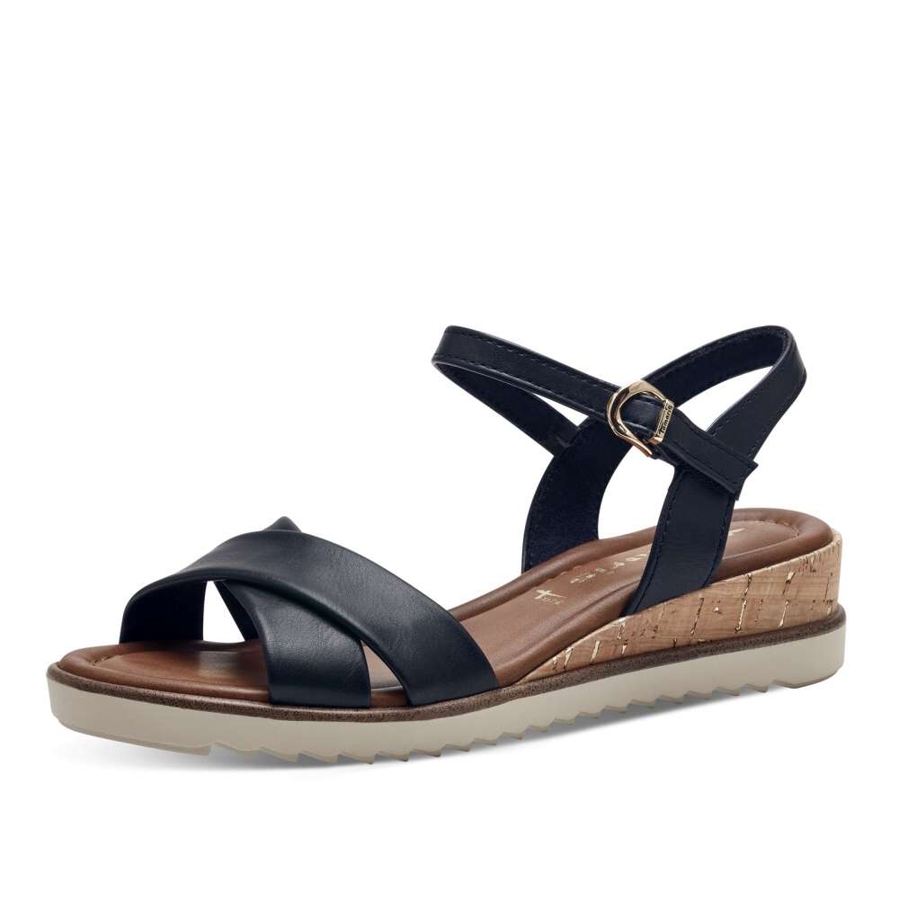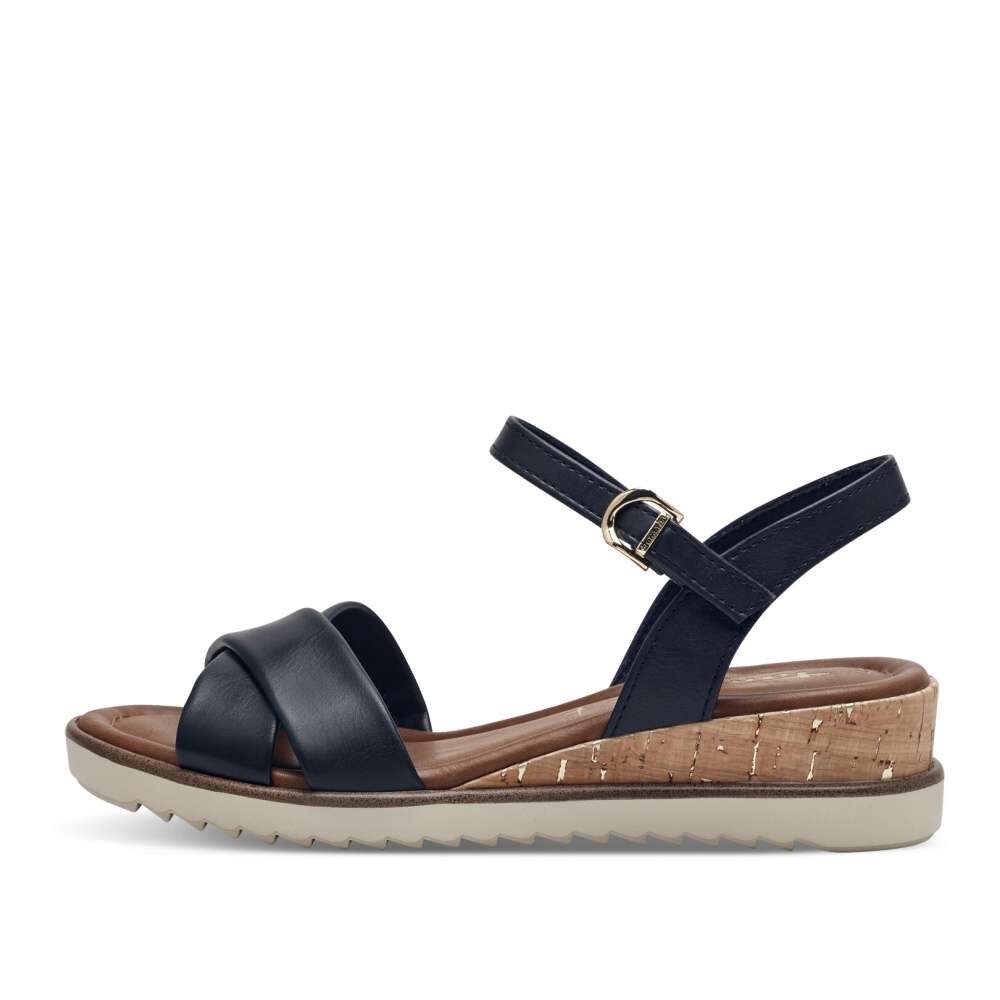 Tyto nadčasové sandály od značky Tamaris zaujmou svým jednoduchým a elegantním provedením. Překřížené pásky na nártu nejenom vytvářejí působivý vzhled, ale také zajišťují stabilní a pohodlnou chůzi. Pásek kolem kotníku s nastavitelnou sponou vám umožňuje přizpůsobit si sandály pro maximální pohodlí. Pohodlí po celý den zajistí měkká stélka, zatímco vyšší podrážka v kombinaci barev přidává do outfitu šarm a stylový nádech. Tyto sandály jsou skvělou volbou pro každou z Vás, přinesou vám pohodlí a eleganci do každodenního života. Technologie: Touch-it – měkká stélka, která se dokonale přizpůsobí tvaru nohy, a díky tomu při nošení zajišťuje optimální pohodlí. VEGAN – pro zodpovědný životní styl bez živočišných materiálů.