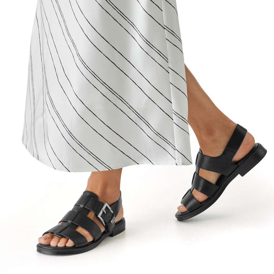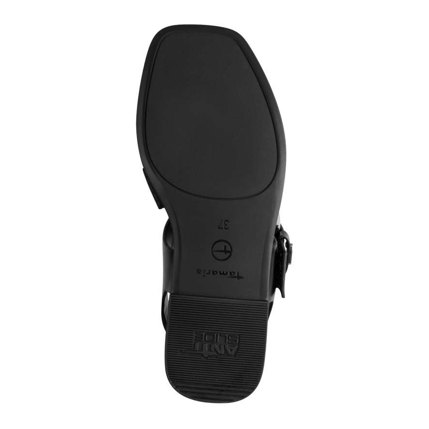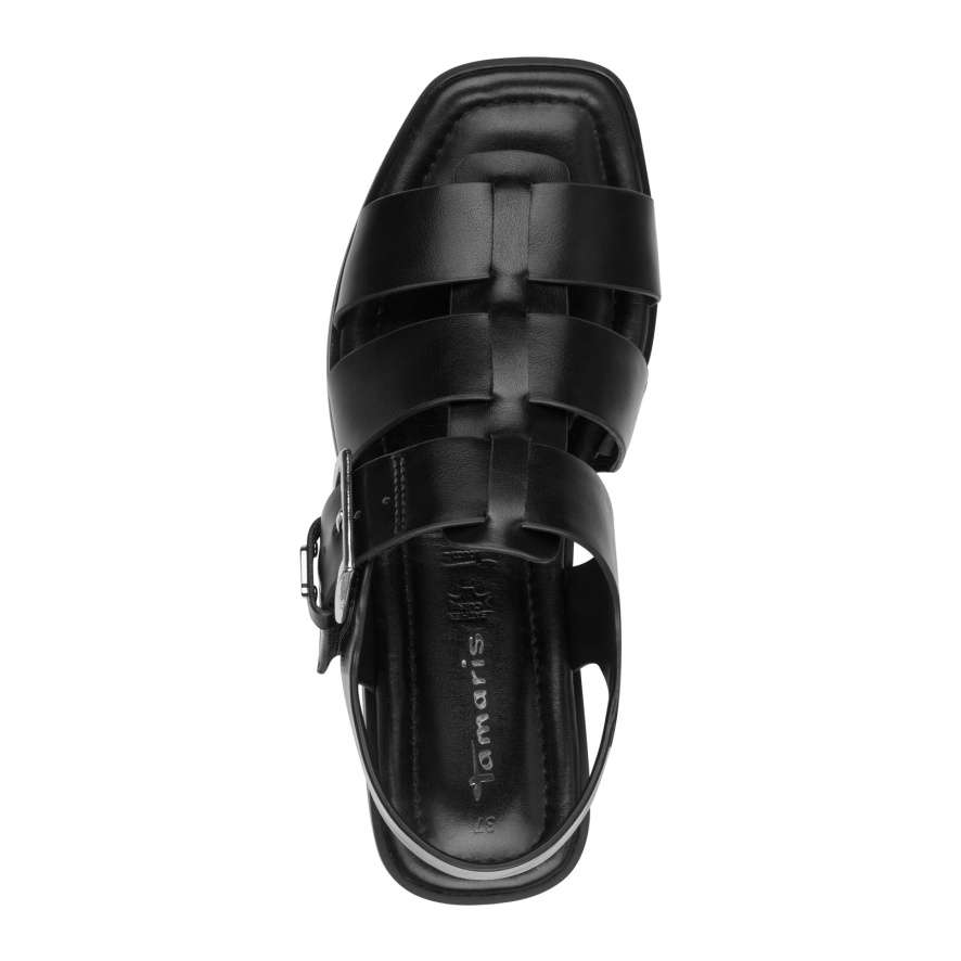 Pokud milujete jednoduchou, nadčasovou krásu, tyto sandály Tamaris jsou přesně pro vás. Černé provedení kombinuje moderní styl s praktičností, takže se snadno stane nepostradatelnou součástí vašeho šatníku. Botu tvoří tři široké pásky z hladkého materiálu spojené středovým pásem, přičemž pásek přes nárt je dekorovaný výraznou sponou a vybavený suchým zipem pro snadné nazutí a dokonalé přizpůsobení noze. Kožená stélka se svou měkkostí zajišťuje pohodlí při každém kroku, takže se v těchto sandálech budete cítit lehce. Minimalistický design dělá z této obuvi ideální volbu pro každodenní nošení i městský styl.