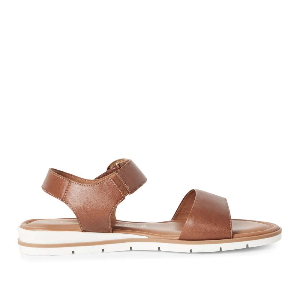 Detailní informace Tyto kožené sandály Tamaris hnedé barvy se vyznačují jednoduchým a elegantním svrškem, který se snadno kombinuje s jakýmkoli letním outfitem. Dekorativní spona na nártu dodává sandálům stylový vzhled, zatímco praktický pásek se suchým zipem zajišťuje snadné obouvání a přizpůsobení chodidlu. O maximální pohodlí se postará příjemně měkká stélka a flexibilní podešev, která zaručují komfort při každém kroku. Do práce i procházku městem budou dokonalým doplňkem.