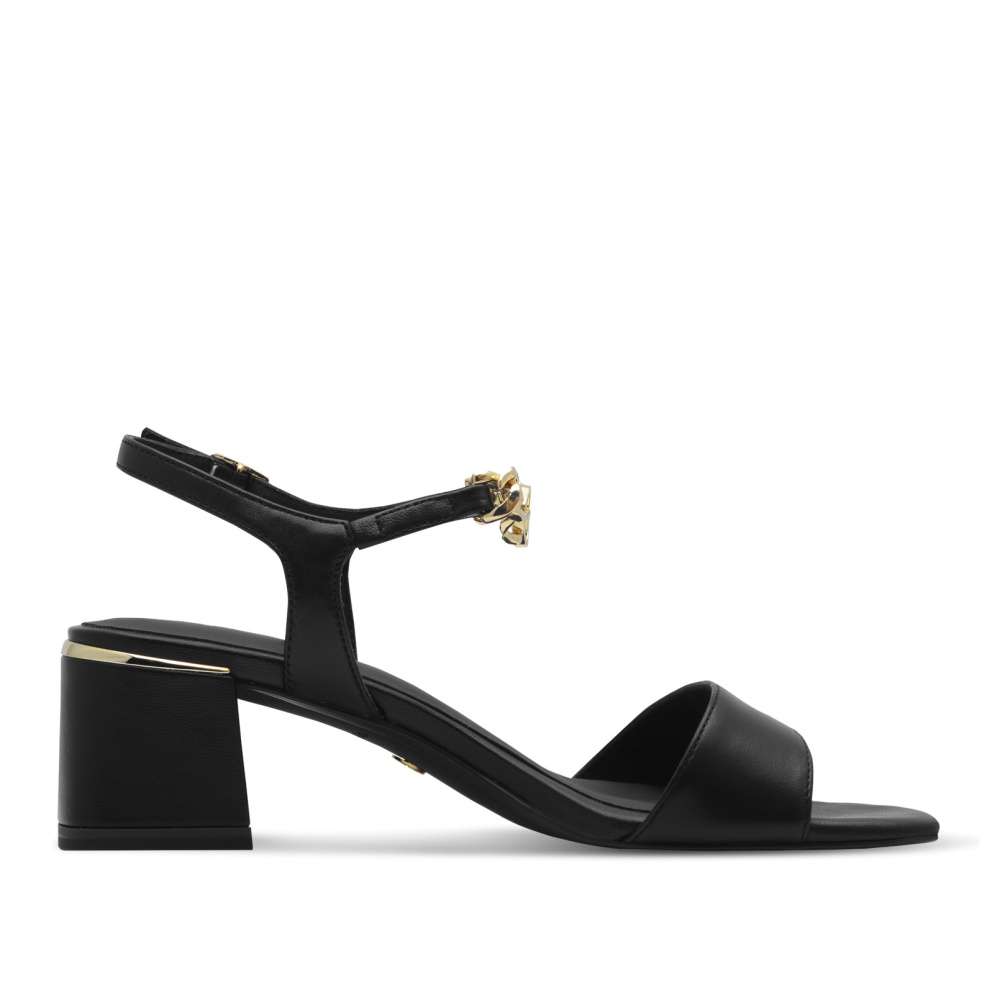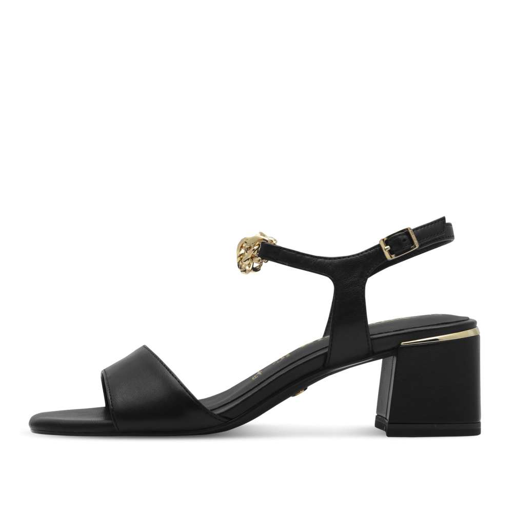 Detailní informace Tento elegantní model Tamaris Vás zaujme svým čistým designem. Přední část tvoří široký pásek, který obepíná nárt. Kotníkový pásek je zvýrazněn stylovým řetízkem, který dodává botě šmrnc a luxusní vzhled. Zapínání je řešeno drobnou sponou, jež umožňuje snadné přizpůsobení šířky dle potřeby. Podpatek je středně vysoký a blokového tvaru, což zajišťuje pohodlnou chůzi i stabilitu. Na patě najdete decentní kovový detail, který podtrhuje celkový sofistikovaný vzhled. Tento sandál je ideální pro společenské akce, letní oslavy či formálnější příležitosti, ale skvěle doplní i elegantní každodenní outfit. Jeho jednoduchost s důrazem na luxusní detaily z něj činí nadčasový kousek pro každou příležitost.