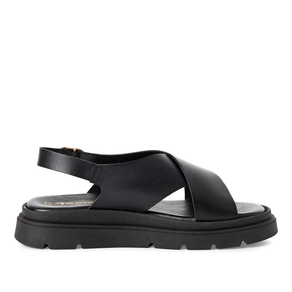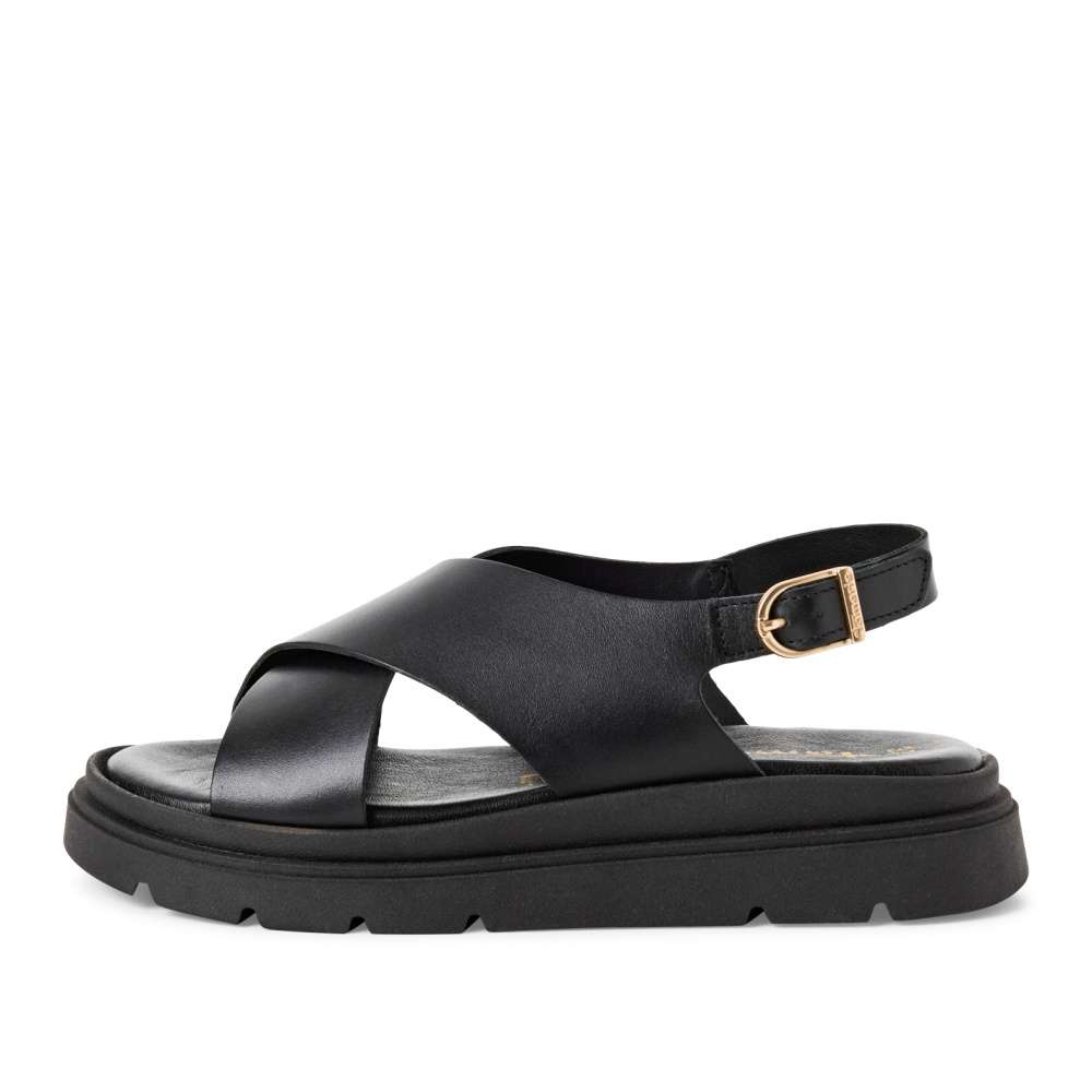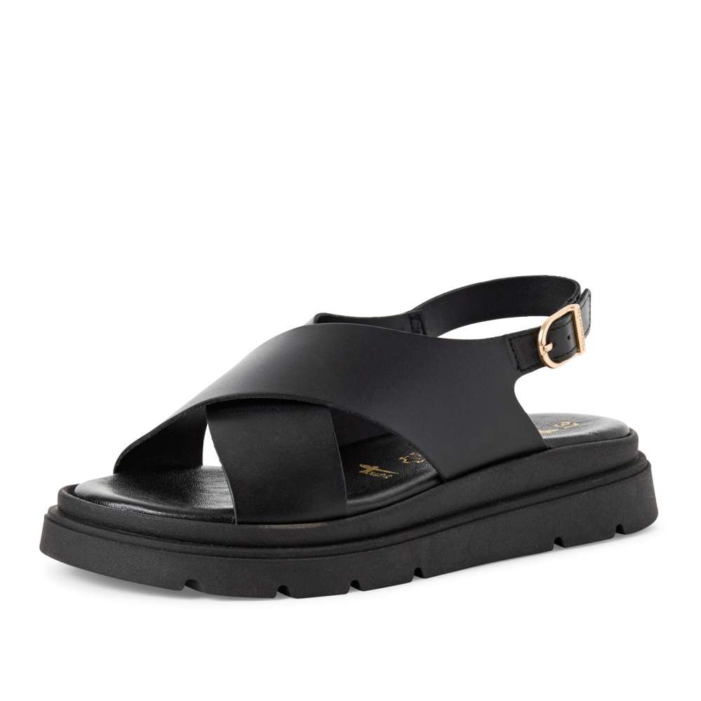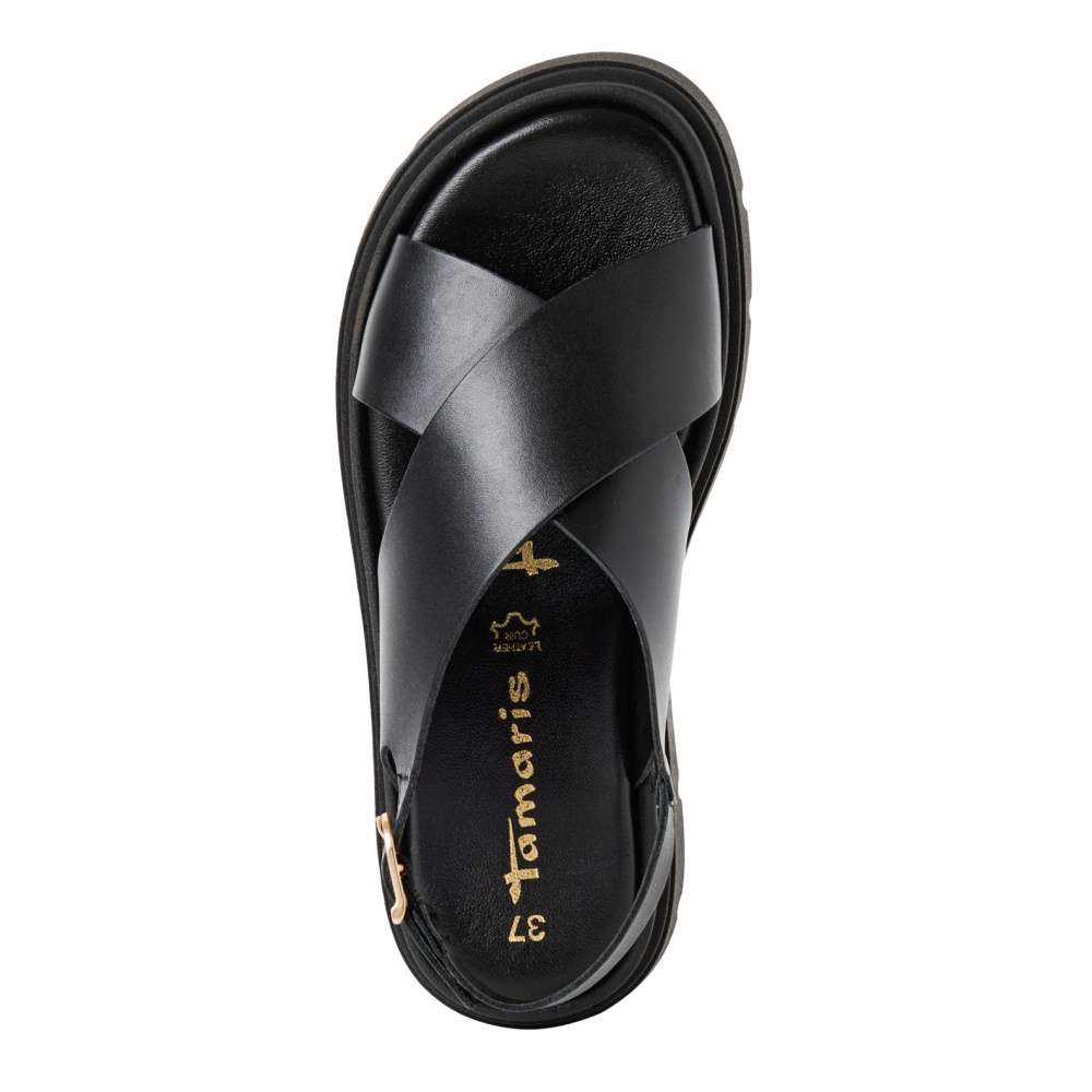 Originální vzhled sandálů značky Tamaris nadchne každou slečnu i ženu. Svršek je vyroben z kvalitní černé kůže a s dvěma překříženými pásky vykouzlí krásný vzhled. Pásky jsou vzadu boty spojeny nastavitelnou přezkou, kterou si upravíte boty lépe k Vaší noze. Stélka z měkké paměťové pěny se skvěle přizpůsobí tvaru Vaší nohy a tím zpříjemní každý krok. Tyhle boty budou Vašim společníkem jako obuv do kanceláře nebo procházku městem. Technologie: Touch-it – měkká stélka, která se dokonale přizpůsobí tvaru nohy, a díky tomu při nošení zajišťuje optimální pohodlí.