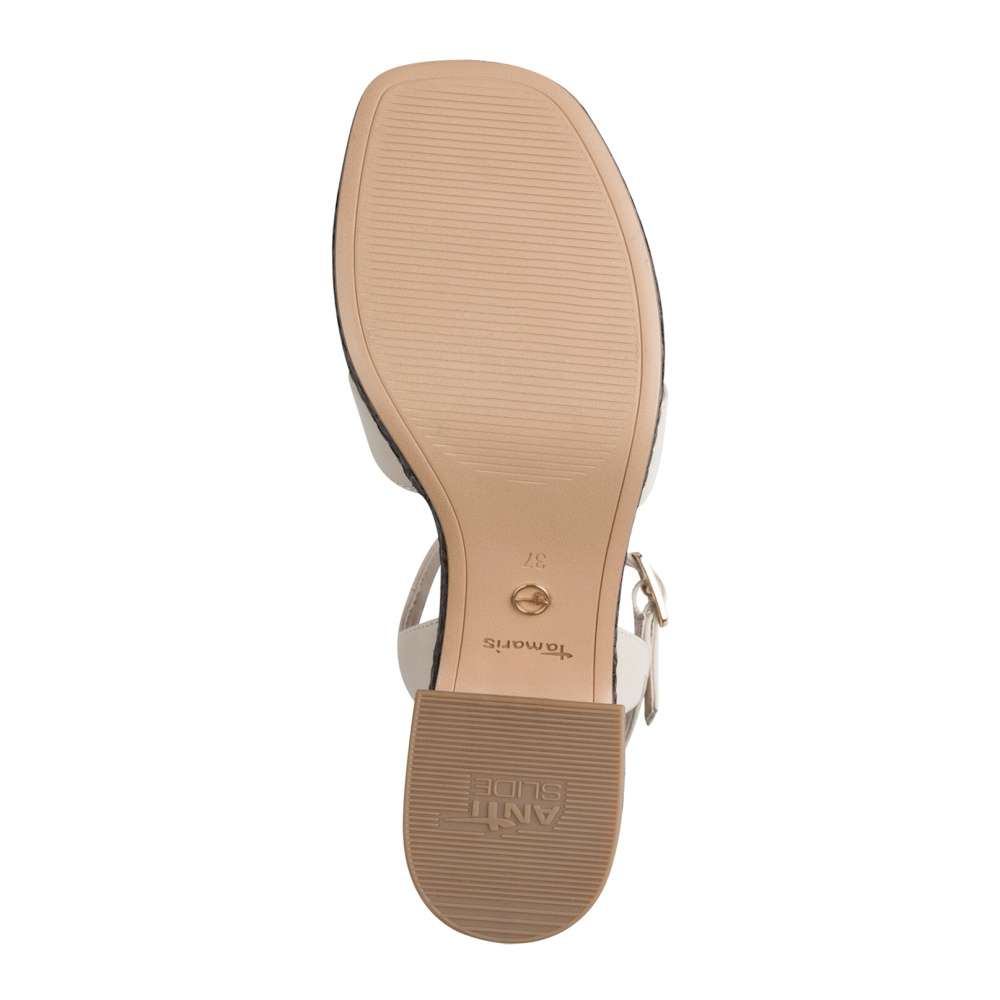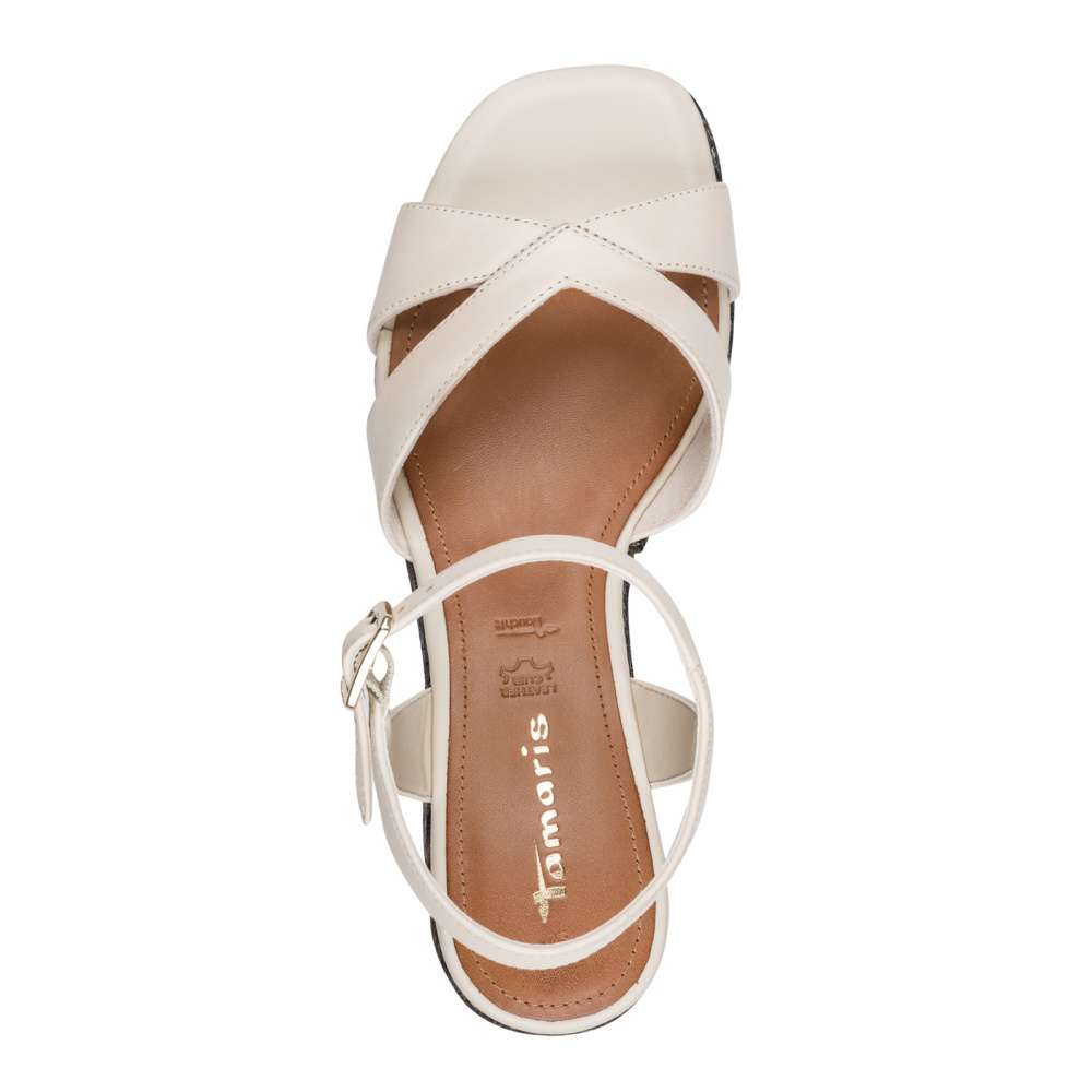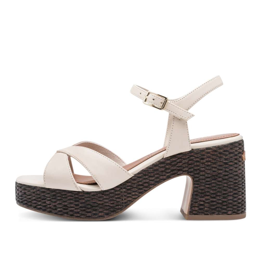 Tyto kožené sandále značky Tamaris jsou skutečně výrazným modelem, který přitahuje pozornost svou vysokou designovou podešví s vysokým podpatkem. Rafinované kožené pásky na nártu podtrhují ženskost a pásek u kotníku má zapínání na přezku, která umožňuje snadné přizpůsobení noze a ulehčí nazutí. Měkká kožená stélka a protiskluzový podpatek zajišťují stabilitu a komfort při každém kroku. Tyto boty nejenže vypadají skvěle, ale také se postarají o vaše pohodlí a sebevědomí každý den při cestě do práce nebo na schůzku.