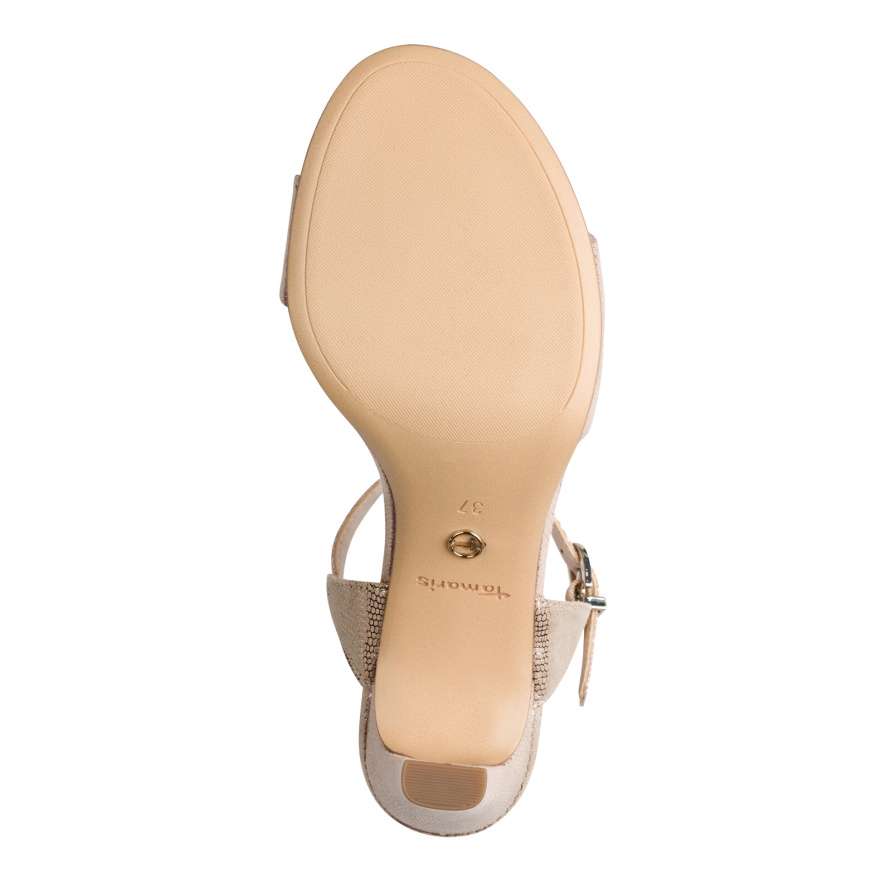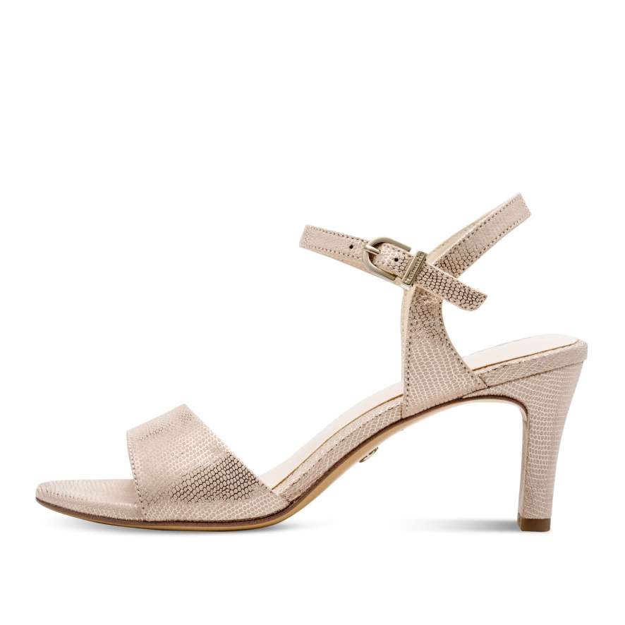 Máte ráda netradiční vzory? Tato moderní zlatá botička od značky Tamaris dodá každému outfitu šmrnc. Díky podpatku získává noblesní vzhled. Přes nárt se táhne pásek a kolem kotníku dva pásky s funkční přezkou, díky které si botu jednoduše upravíte a dosáhnete pohodlí. Díky stélce z měkké paměťové pěny je obuv příjemná i na celodenní nošení. Bota Vás nezklame, ať už se vydáte do divadla nebo na večeři s kamarádkou.