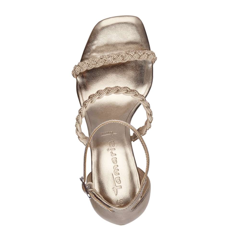 Sandálky Tamaris budou šperkem Vašeho vzhledu a dokonale doladí slavnostní oblečení. Lesk a třpyt je doplněný pohodlím, díky měkké stélce vyrobené z paměťové pěny nebude protancovaná noc žádný problém. Nazutí a přizpůsobení je zajištěno páskem přes nárt s funkční přezkou. Užijte si být nepřehlédnutelnou v kombinaci se společenskými šaty nebo overalem oslníte své okolí.