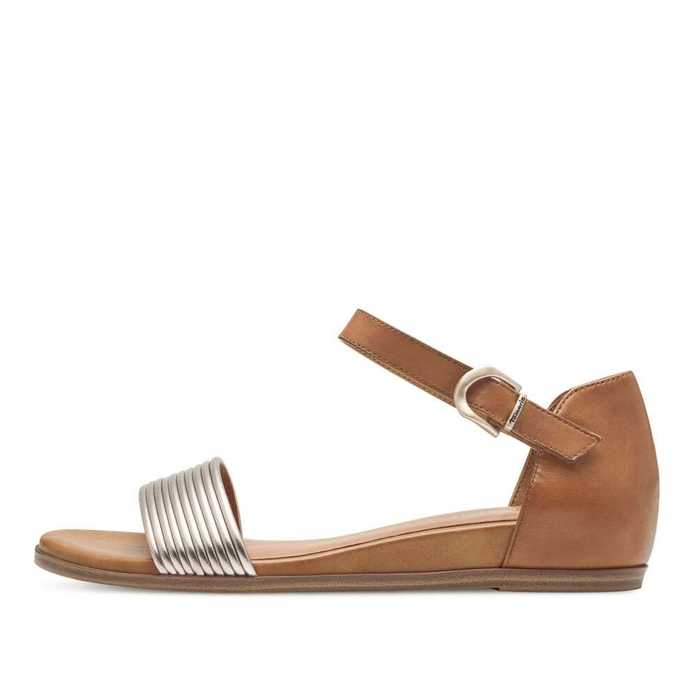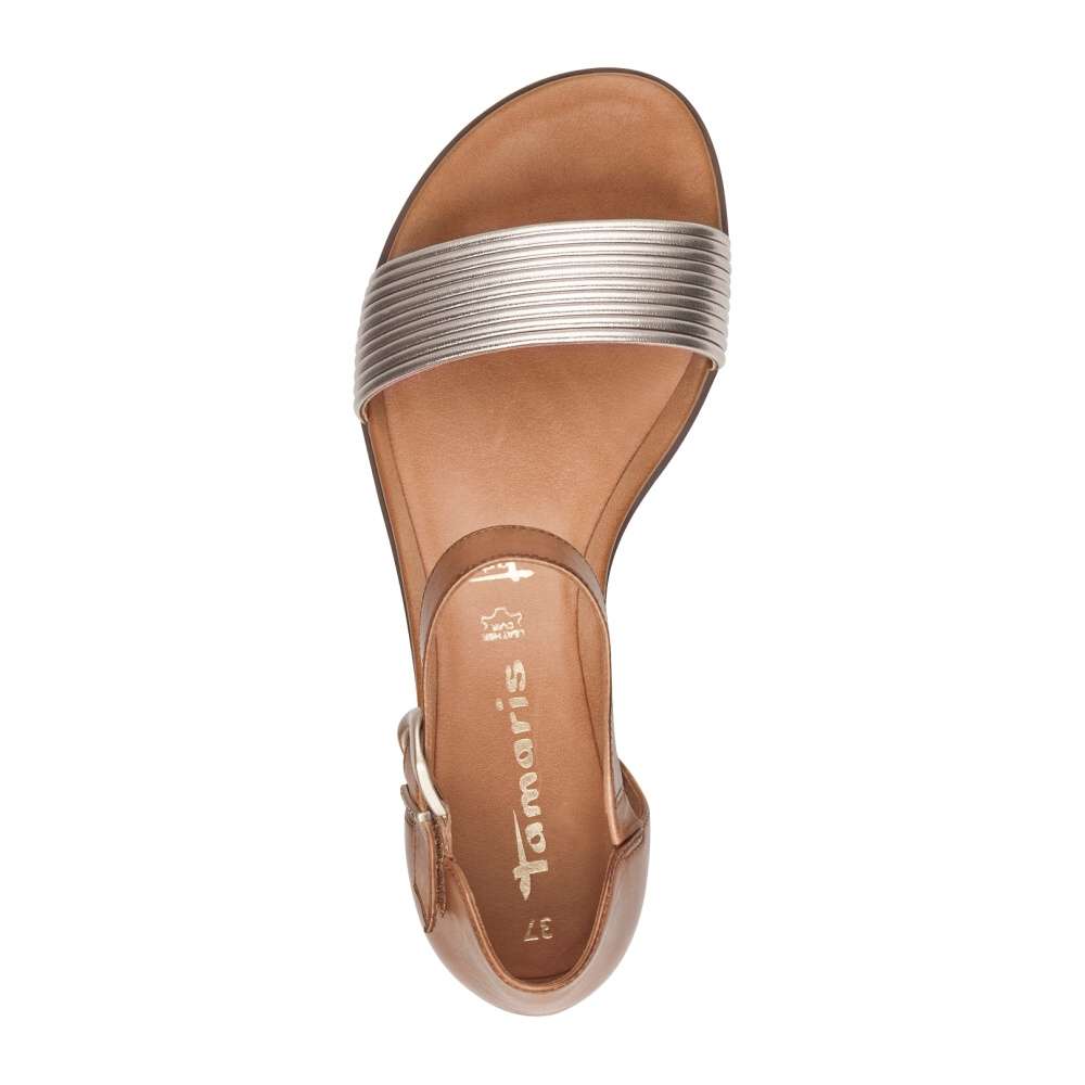 Krásné sandálky značky TAMARIS budou láskou na první pohled, kombinace hnědé barvy s lesklým předním páskem nelze přehlédnout. Páskem u kotníku si je přizpůsobíte dle svého pohodlí díky suchému zipu a oceníte i plnou patu pro stabilní chůzi. Se stélkou vyrobenou z paměťové pěny a nízkým protiskluzovým podpatkem se můžete těšit na pohodlnou a komfortní chůzi po celý den nošení. Tento model lehce zkombinujete se svým oblečením a doladíte kabelkou z naší nabídky.