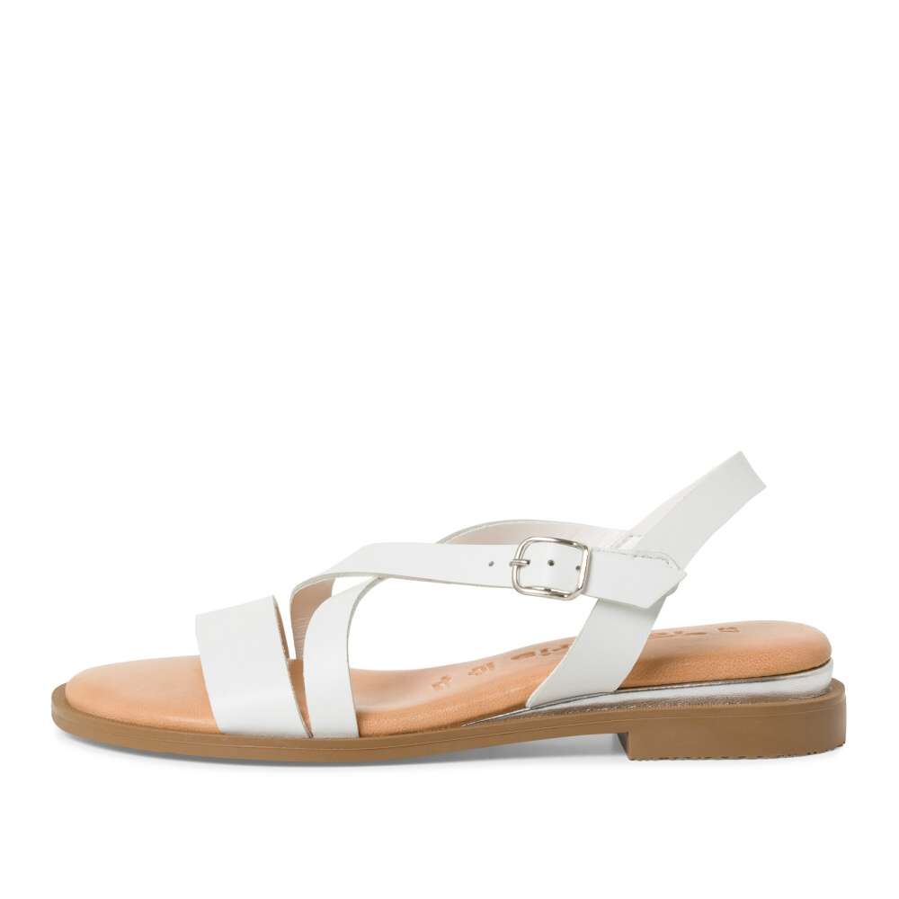 Tyto nadčasové sandály od značky Tamaris zaujmou svým jednoduchým a elegantním provedením. Překřížené kožené pásky na nártu a přední pásek nejenom vytvářejí působivý vzhled, ale také zajišťují stabilní a pohodlnou chůzi. Nastavitelnou sponou u kotníku si přizpůsobíte sandály k dokonalému pohodlí. Se stélkou vyrobenou z paměťové pěny a nízkým podpatkem se můžete těšit na pohodlnou a komfortní chůzi po celý den nošení. Tyto bílé sandály přinesou pohodlí a eleganci do každodenního života.