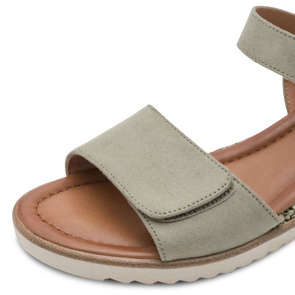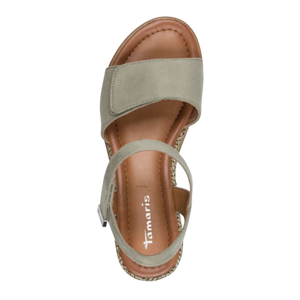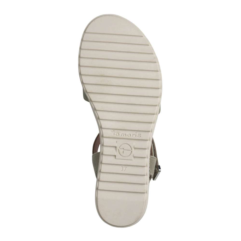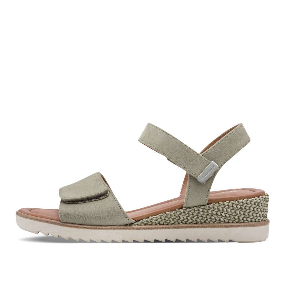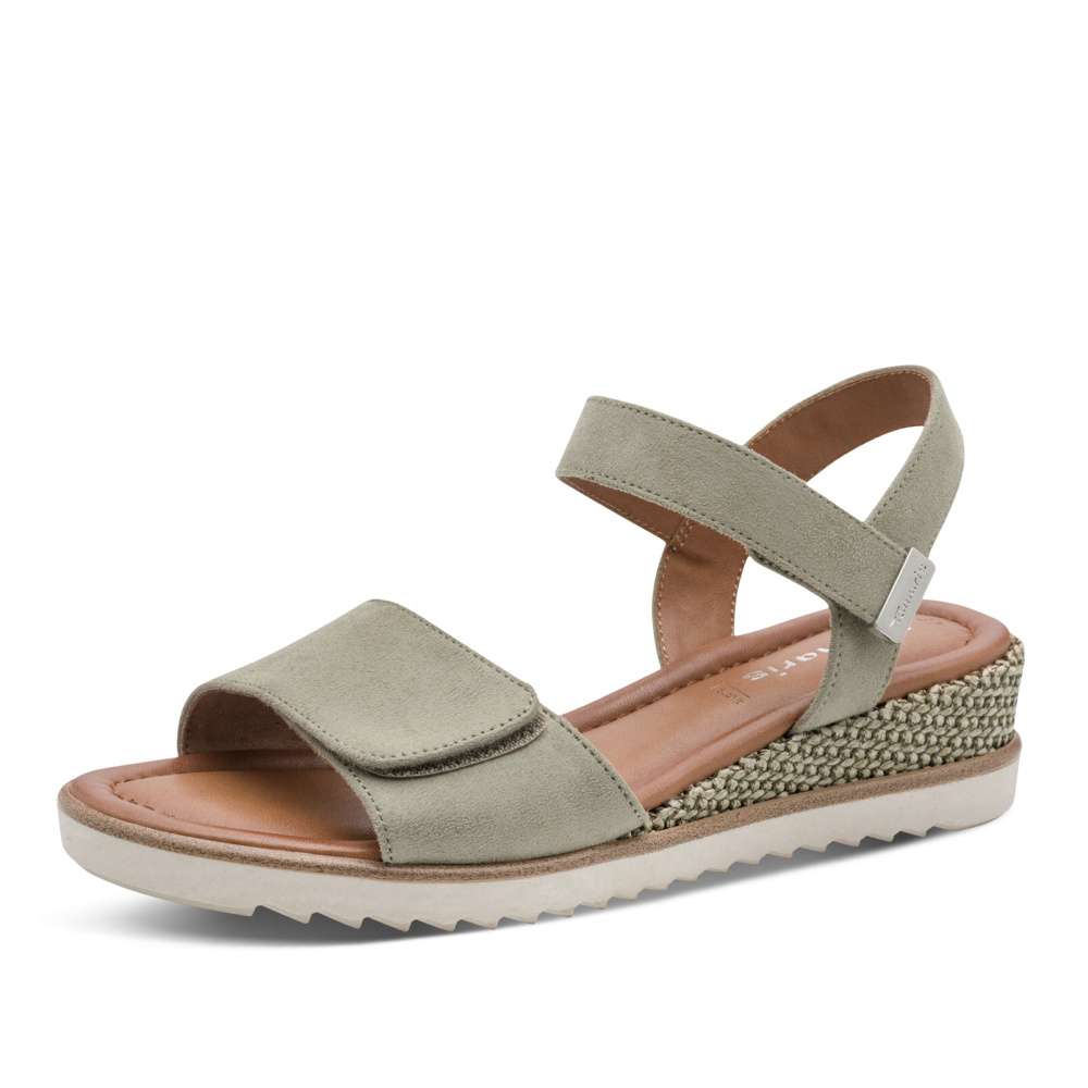 Dámské sandálky Tamaris na vyšším klínku spojují elegantní vzhled a maximální pohodlí. Stylový „pletený“ klínek dodává obuvi jedinečný vzhled, zatímco měkká stélka zajišťuje celodenní komfort při chůzi. Přední jednoduchý pásek přes prsty je vybaven suchým zipem pro snadné nastavení a perfektní přizpůsobení. Okolo kotníku najdete užší pásek na zip, který usnadňuje obouvání a pevně drží nohu. Ideální volba pro každodenní nošení i letní příležitosti.