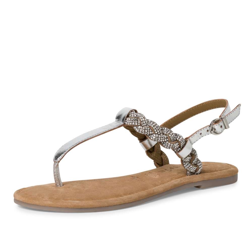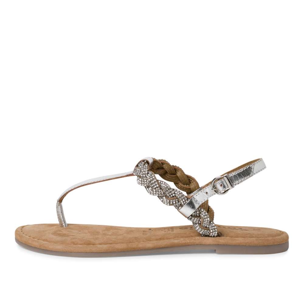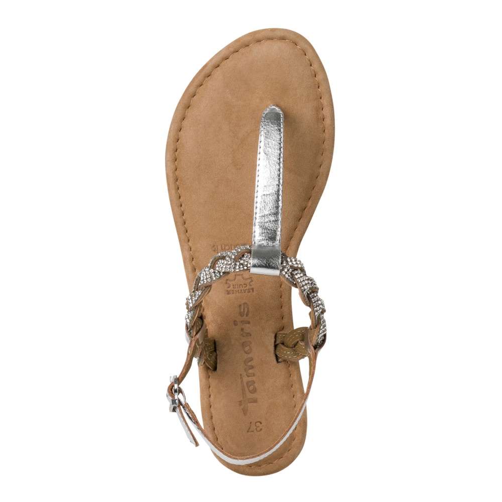 Kožené sandály Tamaris rozzáří Vaše dny svým zářivým vzhledem a třpytivými kamínky na pásku přes nárt. Páskem kolem paty sandály snadno obujete a přizpůsobíte si je přímo ke své noze. Kožená stélka Vám zajistí pohodlí na každém kroku díky své měkkosti. S tímto kouskem budete zářit jako hvězda při každé příležitosti. Technologie: Stélka Touch-it – měkká stélka, která se dokonale přizpůsobí tvaru nohy, a díky tomu při nošení zajišťuje optimální pohodlí.