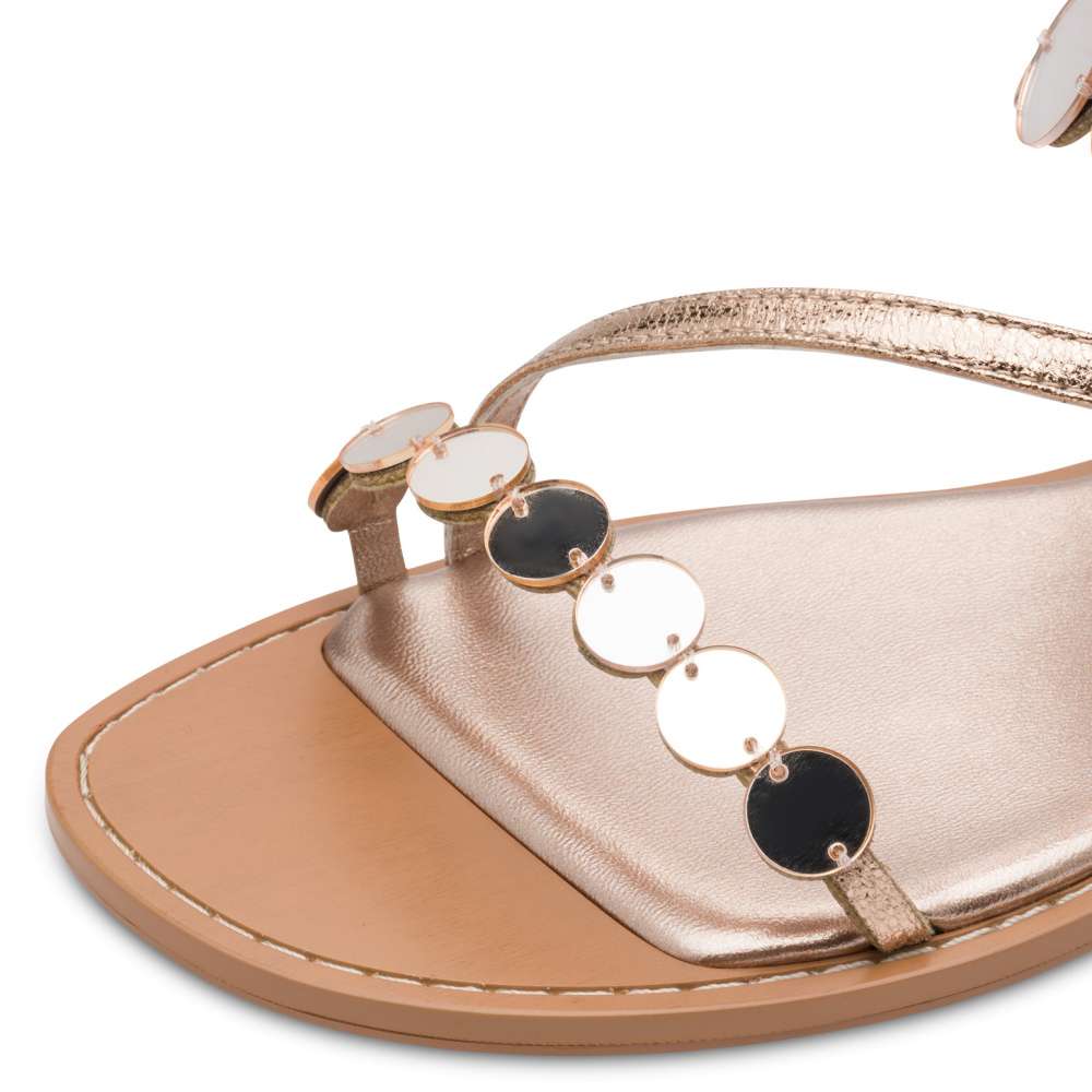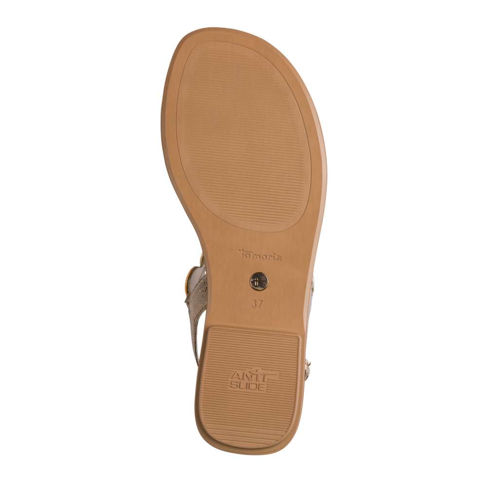 Stylová metallic verze těchto sandálků přidává outfitu jemný třpyt a moderní lesk. Kulaté ozdoby a jemné pásky zachovávají elegantní vzhled, zatímco přezka u paty umožňuje ideální přizpůsobení noze. Podešev s funkcí AntiSlide zajišťuje jistý krok a vysoké pohodlí. Perfektní volba pro letní večery i slavnostnější příležitosti.