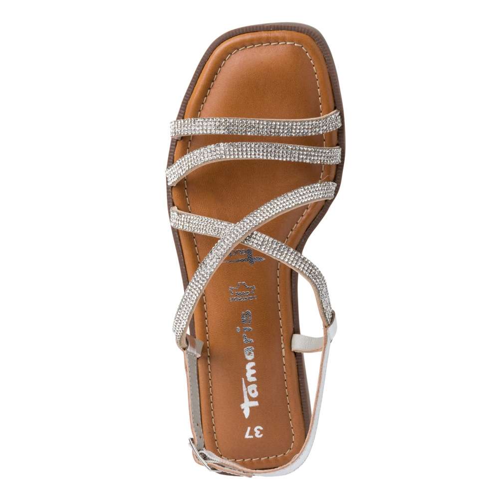 Krásné elegantní sandálky značky TAMARIS, budou pro Vás tou správnou volbou. Ozdobou jsou pásky zdobené kamínky přes prsty, tak kolem kotníku, kde je zároveň zapínání na sponku. Tyto překrásné sandálky Vám nesmí chybět ve Vašem botníku, které zkombinujete s hezkými letními šaty nebo jakoukoliv sukní. Technologie: Stélka Touch-it – měkká stélka, která se dokonale přizpůsobí tvaru nohy, a díky tomu při nošení zajišťuje optimální pohodlí.