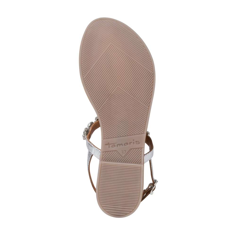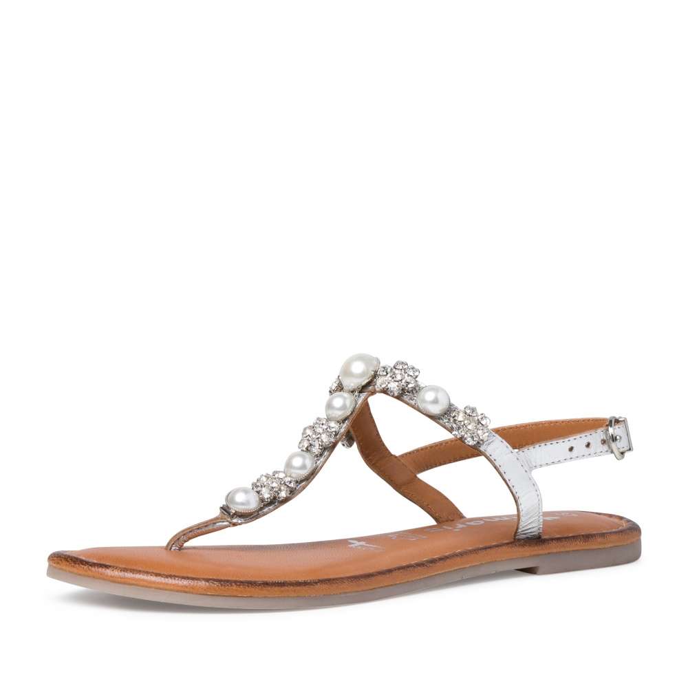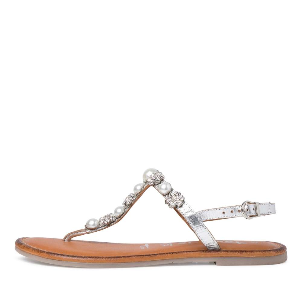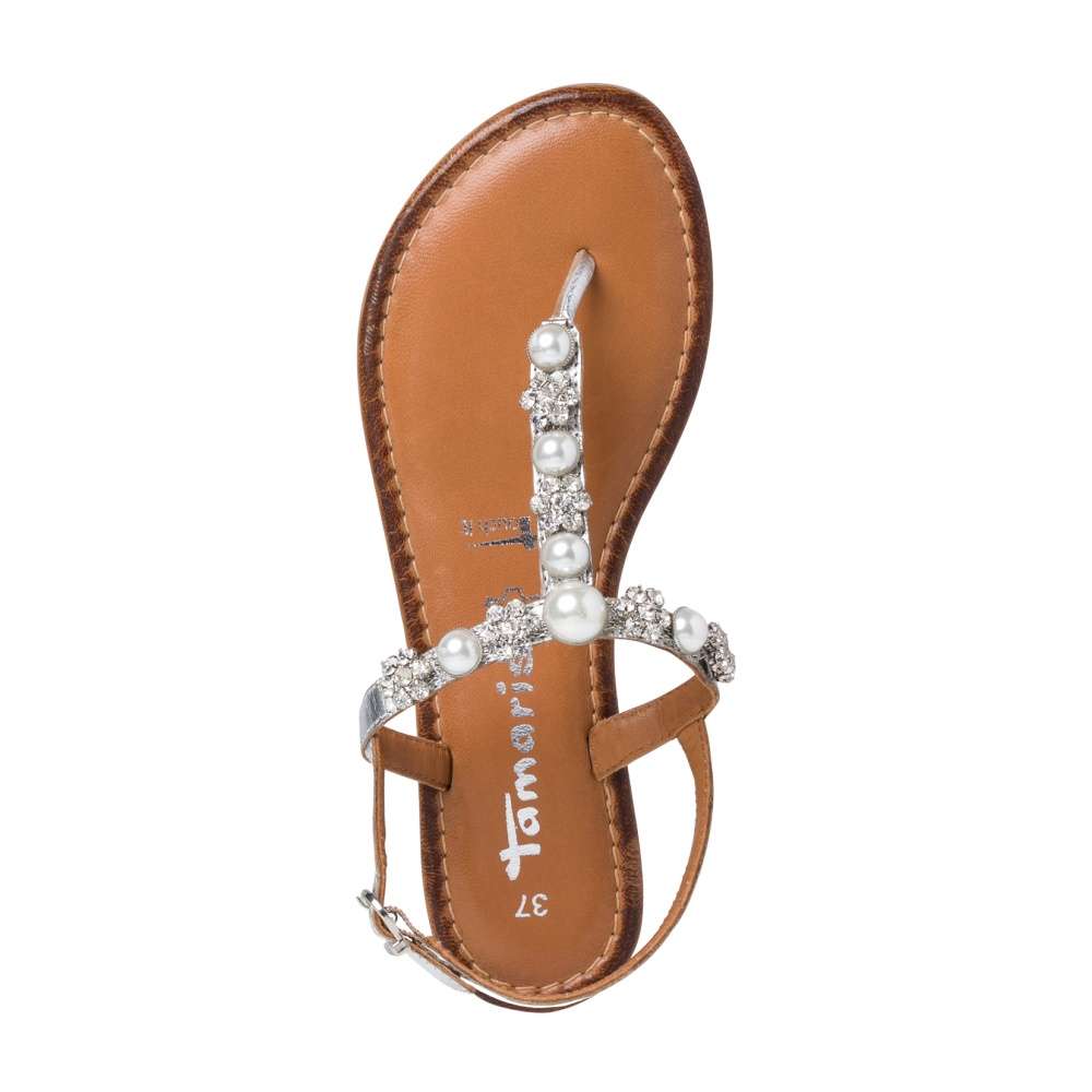 Krásné elegantní sandálky žabkového stylu značky TAMARIS, jsou pro Vás tou perfektní volbou. Kvalitní kožené pásky mezi prsty a pásek přes nárt zdobené krásnými květinami a usázenými kamínky uprostřed květu. Snadné nazouvání zajistí kovové zapínání na pásku kolem paty. Tyto překrásné sandálky Vám nesmí chybět ve Vašem botníku, které zkombinujete s hezkými letními šaty nebo sukní.