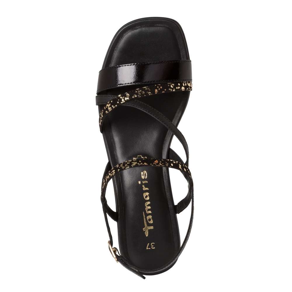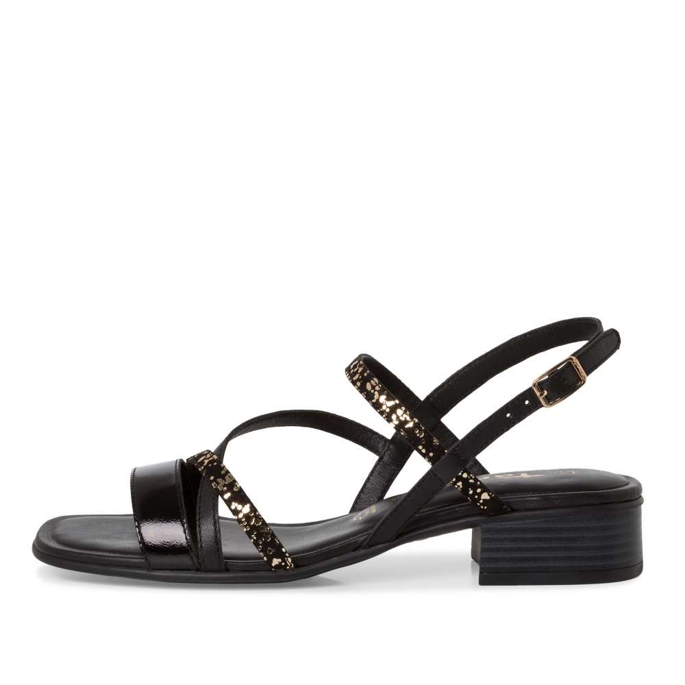 Tyto sandálky Tamaris budou elegantním a stylovým doplňkem Vašeho vzhledu. Pásky s odlesky zdobí svršek sandálek a přidávají jim nádherný lesk a eleganci, nejenže vypadají půvabně, ale také jsou pohodlné na nošení, a to i díky měkké stélce. Spona u kotníku usnadňuje nazutí a sejmutí sandálek, takže si je můžete rychle a snadno obout. Tyto sandálky jsou skvělou volbou pro letní procházky, večeře venku nebo jiné příležitosti, kdy chcete vypadat elegantně a zároveň se cítit pohodlně.