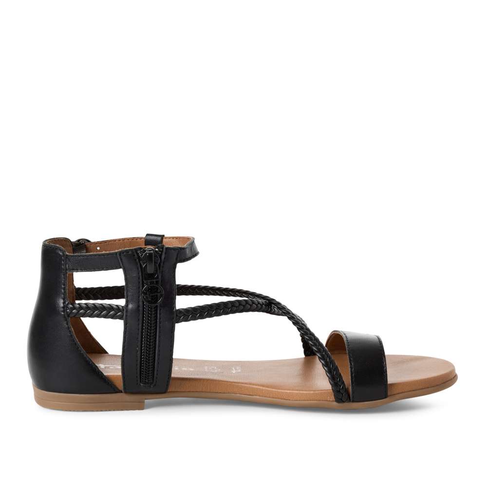 Detailní informace Vítejte v království stylu a komfortu s těmito koženými páskovými sandálky od Tamaris. Design černých sandálů kombinuje hladké a pletené pásky, které se vzájemně kříží přes nárt a dodávají obuvi nevšední a propracovaný vzhled. Na kotníku se nachází úzký pásek s malou přezkou, která slouží k pohodlnému upevnění a přizpůsobení boty. Sandály mají nízkou plochou podešev v přírodním hnědém odstínu, která zajišťuje pohodlí při chůzi. Vnitřní část je vyrobena z měkkého materiálu, což přispívá k celkovému komfortu. Tyto sandálky jsou kombinací vkusu a kvality, kterou si zamilujete na každém letním výletě nebo večerním setkání.