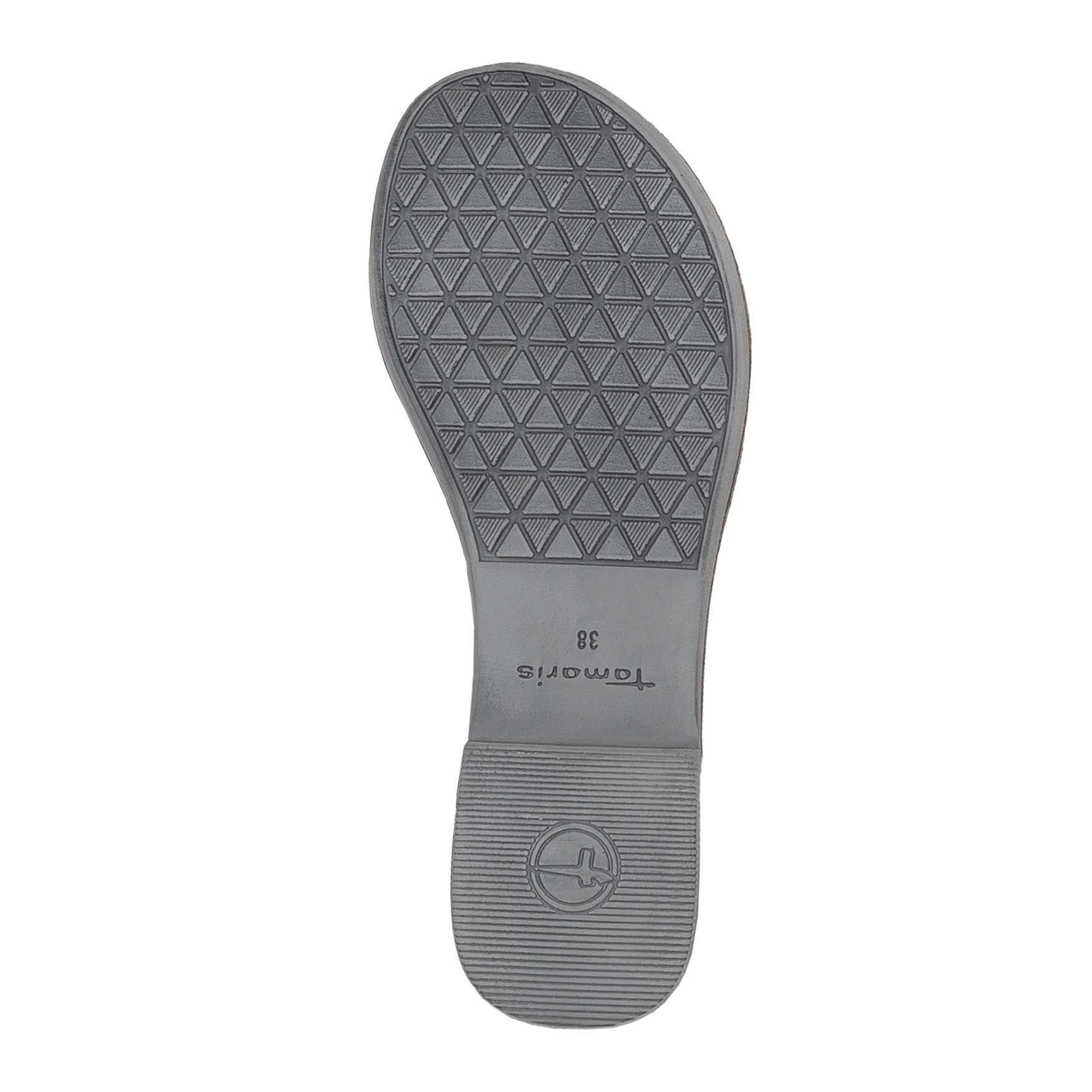 Detailní informace Dámské kožené sandálky značky TAMARIS v žabkovém stylu jsou zdobeny korálky, které jsou designově umístěny v oblasti nártu. Obuv vám bude dokonale sedět díky pásku kolem paty, který je ozdoben funkční kovovou přezkou. Díky pevné podešvi a měkké stélce z paměťové pěny se budete cítit velmi příjemně a pohodlně během celého dne. Tento model můžete kombinovat snad se všemi vašimi outfity, které využijete například na procházky městem nebo do práce.
