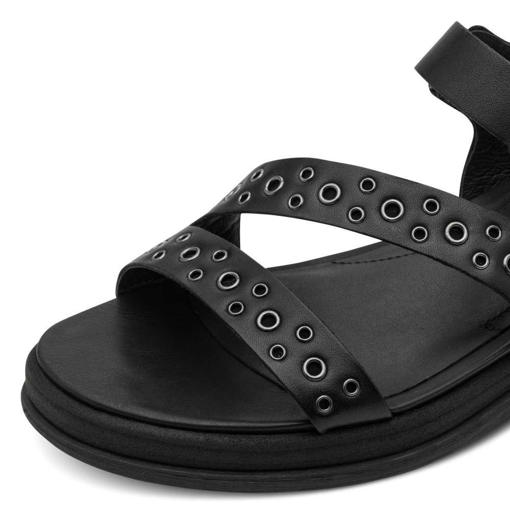 Elegantní kožené sandály s moderním designem. Tyto sandály z kvalitní přírodní kůže kombinují pohodlí a styl pro celodenní nošení. Měkká stélka poskytuje příjemnou oporu, zatímco decentně zdobené pásky dodávají obuvi jedinečný vzhled. Nastavitelný pásek s kovovou sponou zajistí perfektní přizpůsobení chodidlu. Ideální volba pro každodenní outfit i volnočasové aktivity.