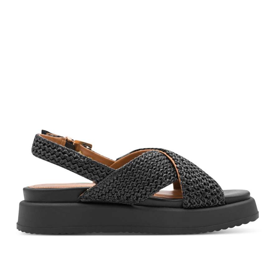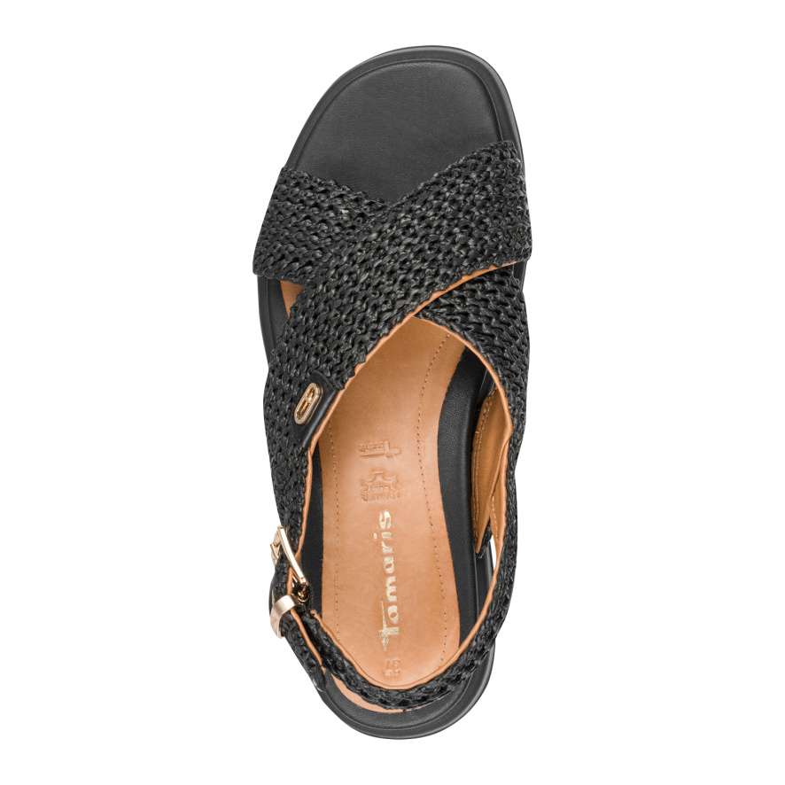 Nevšední sandály od značky Tamaris jsou perfektní volba, pokud preferujete pohodlnou, a přitom elegantní módu. Zajímavý žabičkový vzhled dvou překřížených pásku přes nárt oceníte zejména při kombinování s Vaším outfitem. Pásek u kotníku nabízí zapínání zlatou sponou, díky které si botu přizpůsobíte na Vaši nohu dle potřeby. Kožená stélka z paměťové pěny zaručuje pohodlí po celý den, a navíc se díky hladkému povrchu snáze čistí. Tyto sandále budou nejen ozdobou vašich nohou, ale i spolehlivým společníkem po celý den.