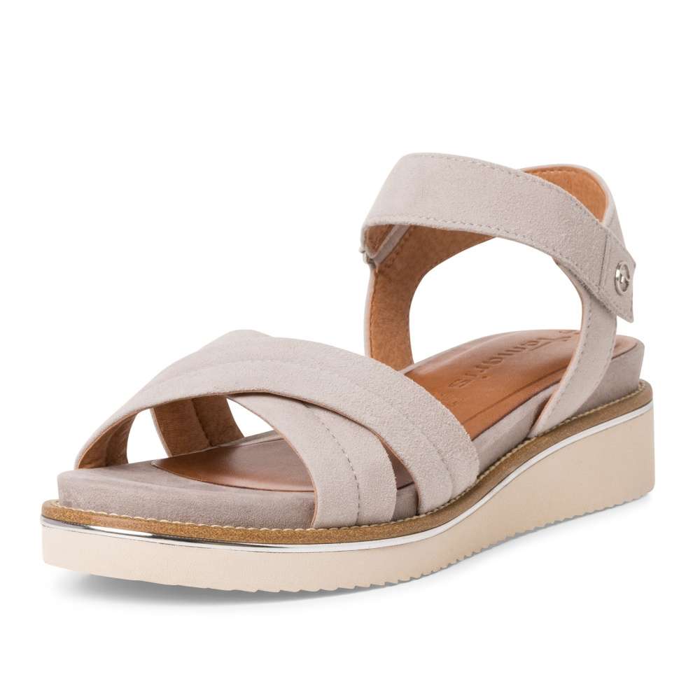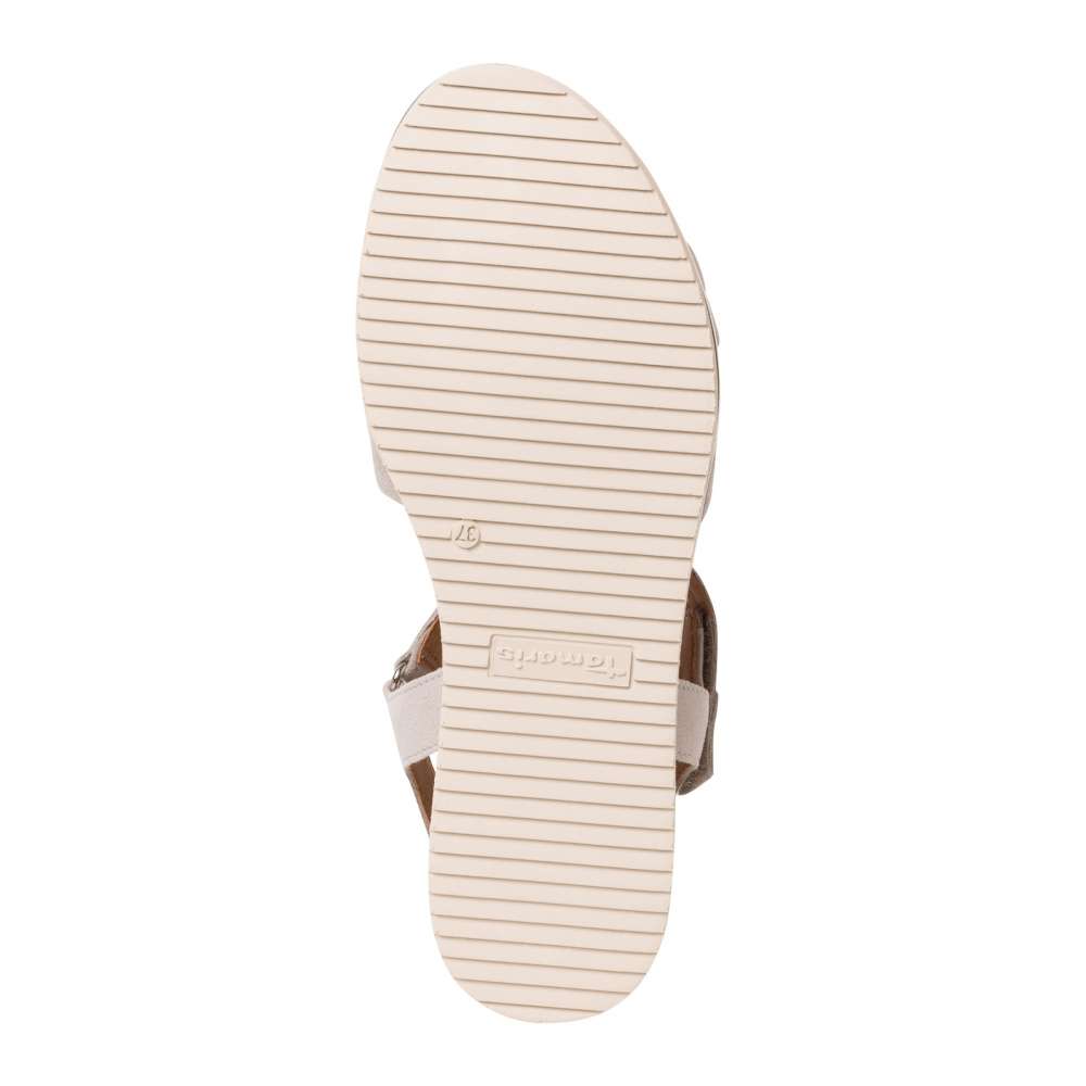 Kožené sandály od značky Tamaris jsou perfektní volba, pokud preferujete pohodlnou, a přitom elegantní chůzi. Pastelová barva se lehce kombinuje s oblečením a klidně můžete zvolit i výraznejší barvy. Bota má lehce vyvýšenou podešev, a to dotváří její elegantní vzhled. Pásek u kotníku nabízí zapínání na přezku, díky kterému si botu uzpůsobíte na Vaši nohu dle potřeby. Kožená stélka z paměťové pěny zaručuje pohodlí po celý den, a navíc se díky hladkému povrchu snáze čistí. Sandálek utváří skvělý outfit s šaty i kraťasy.