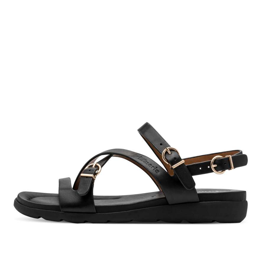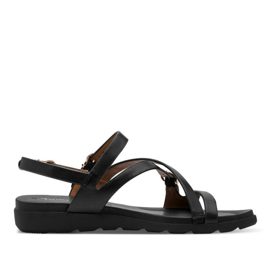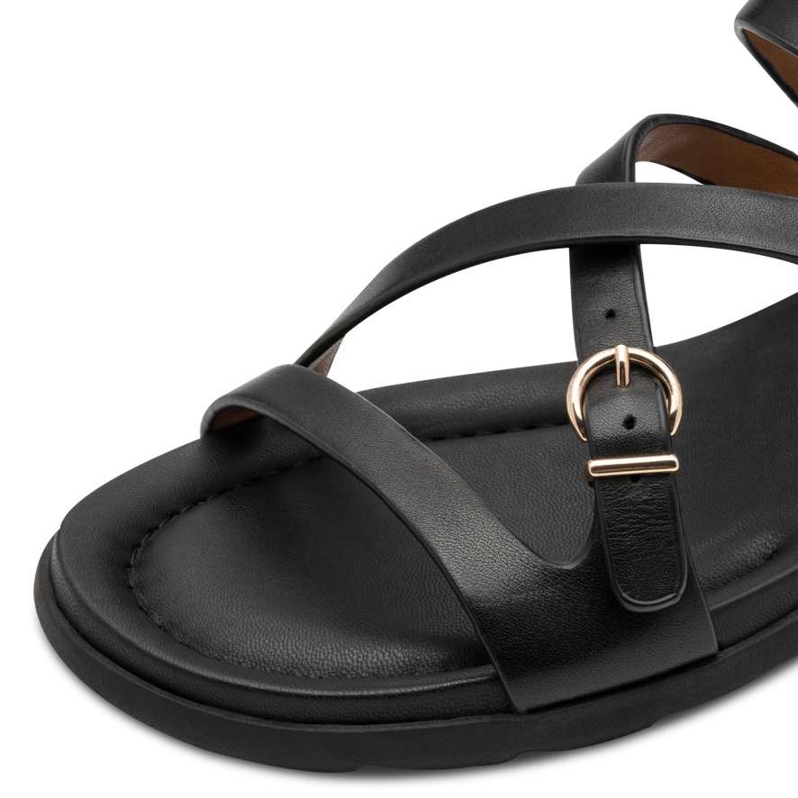 Stylové dámské sandály z kvalitní kůže, které vynikají moderním minimalistickým designem a vysokým komfortem při každodenním nošení. Propojené pásky dodávají obuvi lehkost a přirozeně obepnou chodidlo, zatímco trojice nastavitelných přezek umožňuje snadné a přesné přizpůsobení šířce i tvaru nohy. Praktický tvar spolu s pohodlným provedením dělá z tohoto modelu ideálního společníka pro volný čas, cestování i běžné letní dny, kdy chcete spojit jednoduchý styl a pohodlí.