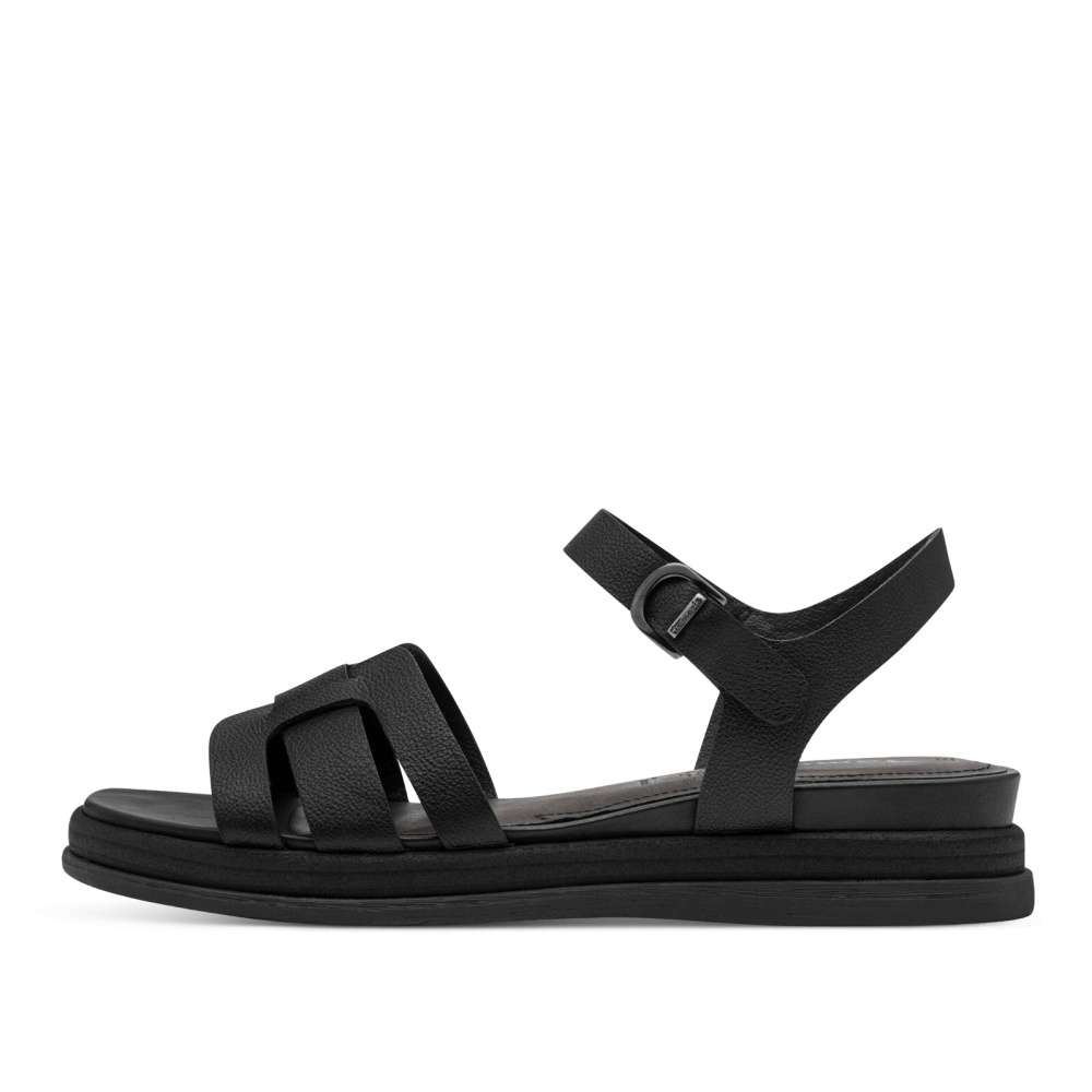 Když se elegance potká s hravostí, vzniknou sandály Tamaris, které si zamilujete na první obutí. Tento kožený model zaujme jemně propletenými pásky v přední části, které se spojují do jednoho harmonického celku a krásně obejmou chodidlo. Kolem kotníku vede pásek se stylovou sponou – ta působí jako ozdobný detail, ale praktické zapínání je řešeno pohodlným suchým zipem, takže obutí je rychlé a snadné. Mírně vyvýšená podešev dodává sandálům příjemnou lehkost při chůzi a zajišťuje komfort po celý den. Ideální volba pro ženy, které chtějí spojit kvalitu, originalitu a pohodlí v jednom doplňku.