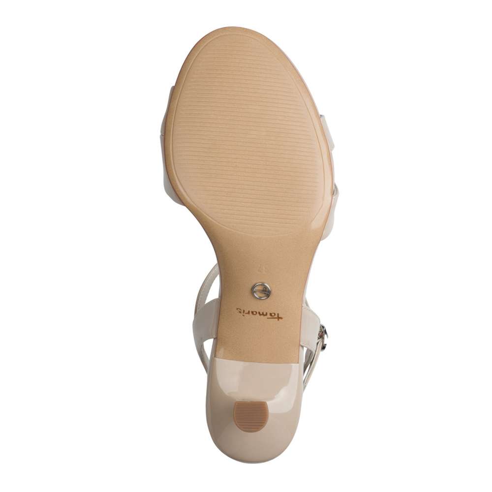Objevte sandále, které nejsou jen obuví, ale skutečnou ozdobou vašich nohou. Působivé odlesky materiálu svršku a přední atraktivně poskládané pásky vytváří atraktivitu vzhledu. Pásek přes nárt s nastavitelnou sponou usnadní nazutí a úpravu dle potřeb každé z Vás. Uvnitř sandálů vás čeká příjemně měkká stélka, která zajišťuje komfort i při delším nošení. Nízký podpatek dodává chůzi lehkost a elegantní ladnost. Dopřejte si kousek, ve kterém se budete cítit krásně, sebevědomě a pohodlně – s Tamaris se každý krok stává stylovým zážitkem.