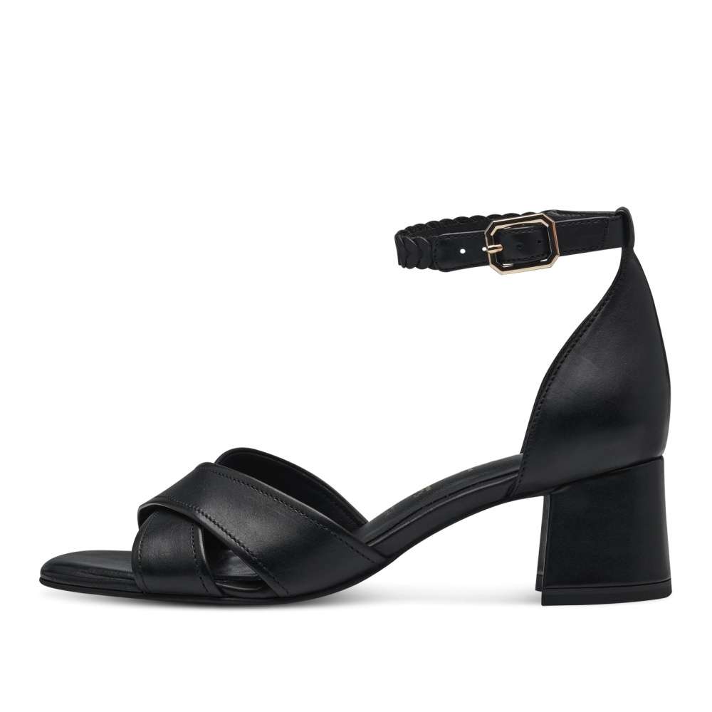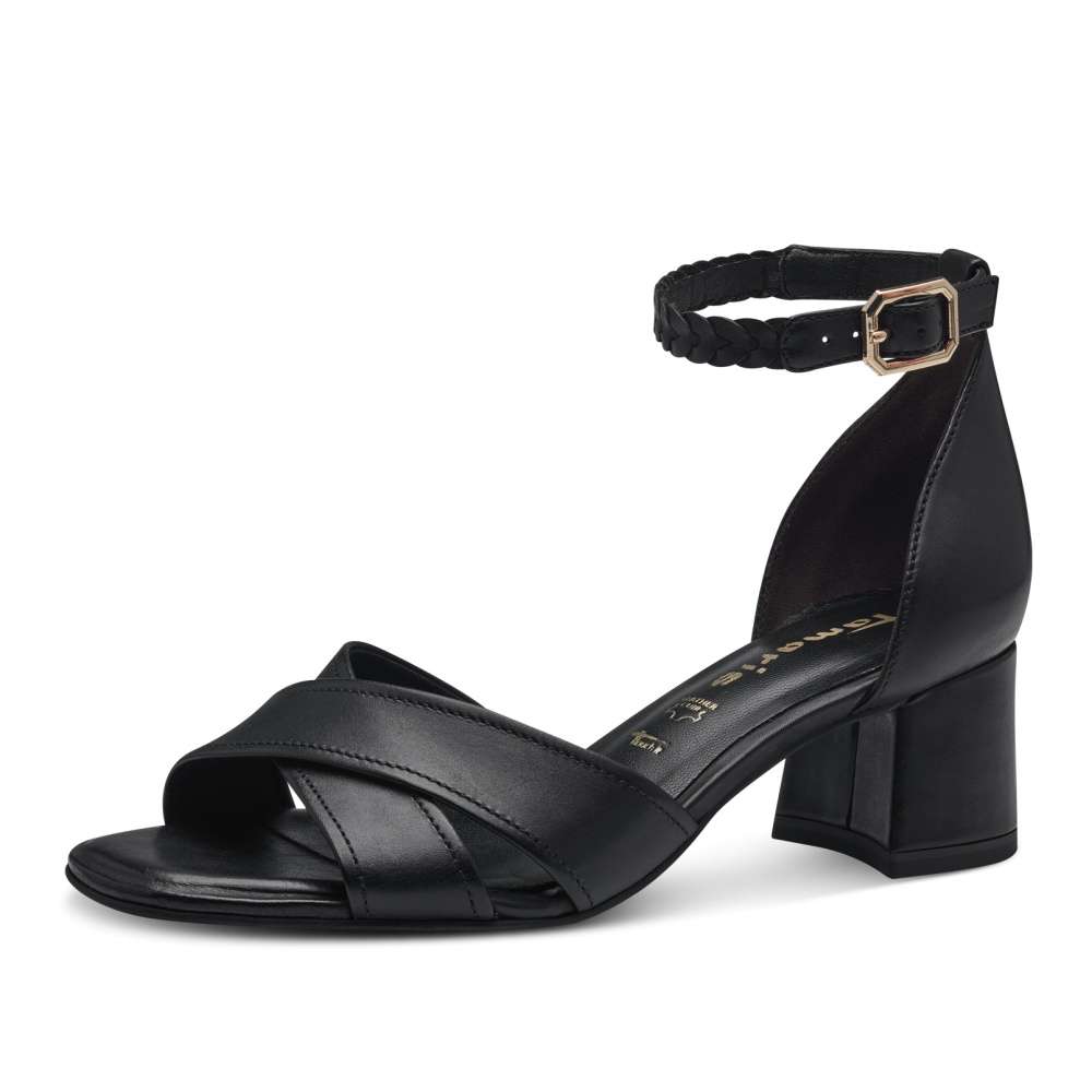 Detailní informace Tyto kožené Tamaris sandálky jsou ideální volbou pro ženy, které hledají elegantní obuv s důrazem na detaily a pohodlí. Dokonalý celek vytváří přeložené přední pásky v kombinaci s propracovaným páskem kolem kotníku, který má funkční sponu k nastavení dle Vašich požadavků. Měkká stélka z paměťové pěny se přizpůsobí tvaru vaší nohy a nabízí neuvěřitelné pohodlí. Eleganci chůzi dodá vyšší podpatek s protiskluzovým prvkem, který oceníte při nejedné protancované noci. Černé sandálky jsou vhodné pro různé příležitosti a dodají vašemu outfitu nádech elegance a ženského půvabu.
