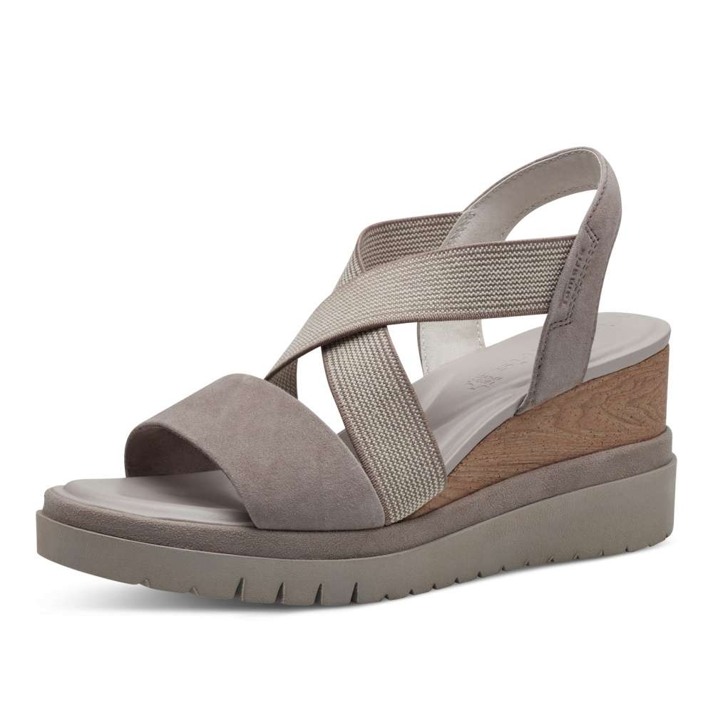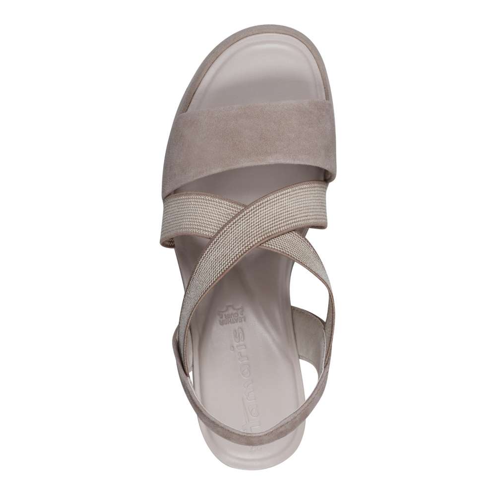 Dámské letní sandálky s překříženými páskami v krásném přírodním odstínu a svrškem z pravé přírodní usně. Obuv je vybavena pružnými gumkami, které se skvěle přizpůsobí Vaší noze. S měkkou stélkou a stabilní podešví se můžete těšit na pohodlnou a komfortní chůzi po celý den nošení. S tímto decentním modelem od značky TAMARIS rozhodně nešlápnete vedle.