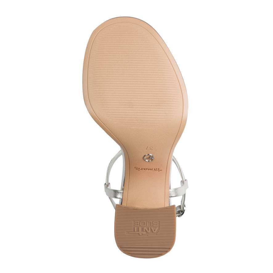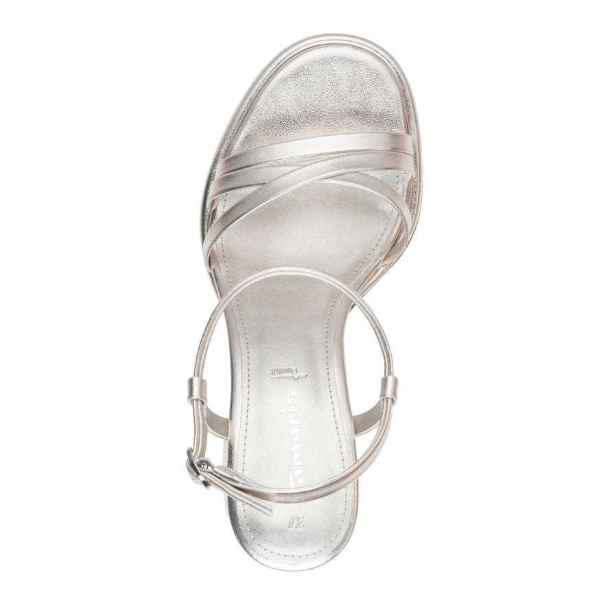 Nepřehlédnutelné sandále Tamaris okouzlí na první pohled svým půvabným a promyšleným designem. Tenké pásky svršku jsou precizně poskládané a zdobené jemnými odlesky, které dodávají obuvi elegantní a zároveň výrazný vzhled. Pásek kolem kotníku s nastavitelnou sponou zajišťuje perfektní přizpůsobení dle vašich potřeb. O maximální pohodlí se stará příjemně měkká stélka, která hýčká chodidlo i při delším nošení. Vysoký a široký podpatek nejen krásně zvýrazní vaši siluetu, ale zároveň účinně tlumí nárazy a díky protiskluzové úpravě poskytuje potřebnou jistotu na každém povrchu. Tyto sandále Tamaris jsou ideální volbou pro ženy, které chtějí zazářit, cítit se sebevědomě a zároveň si dopřát pohodlí bez kompromisů.