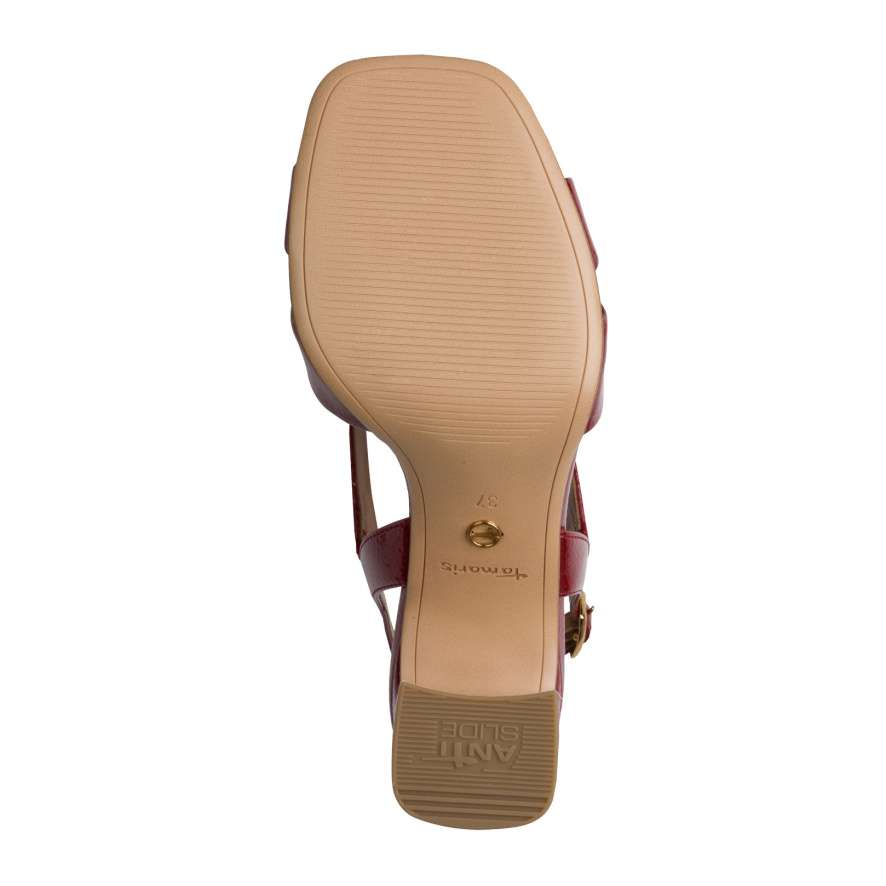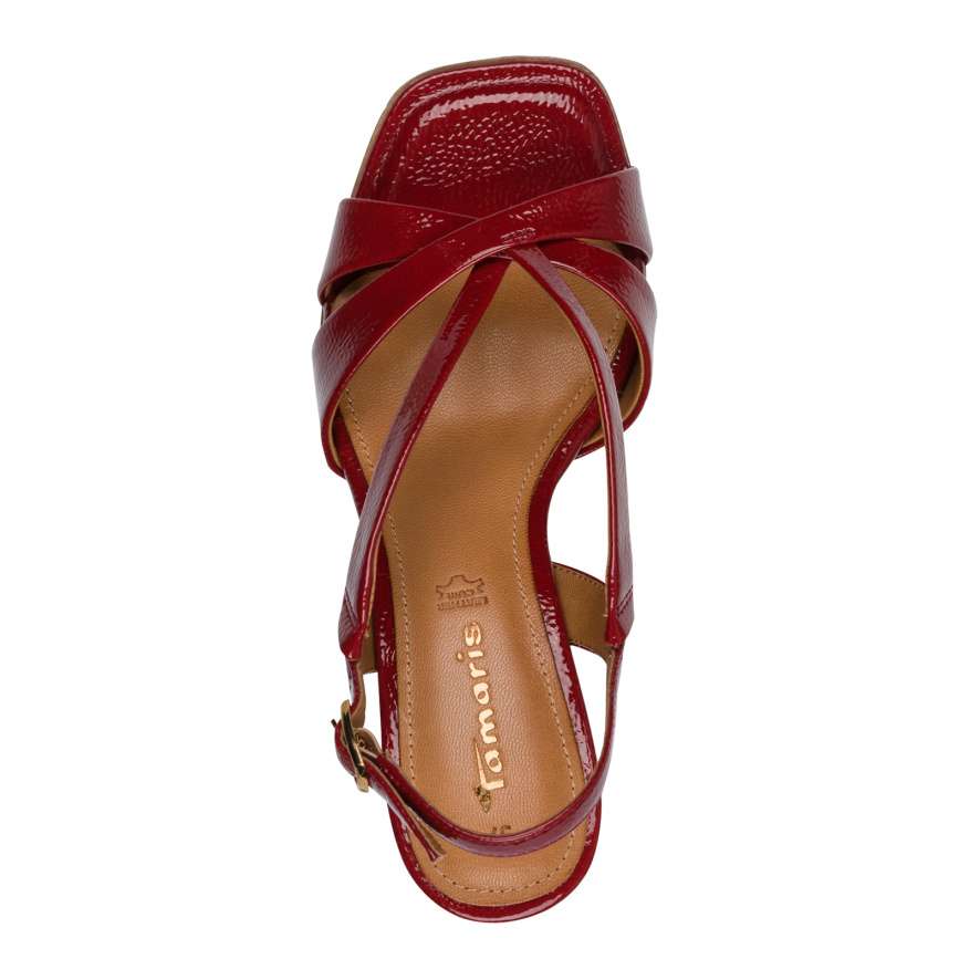 Sandály Tamaris jsou oslavou ženského půvabu a elegance. Atraktivní skladba lesklých pásků jemně obepíná nohu a vytváří sofistikovaný vzhled, který ozdobí Vaše nohy. Zadní pásek s nastavitelnou sponou se dokonale přizpůsobí vašemu tvaru nohy a zajišťuje pocit jistoty a pohodlí při každém kroku. Měkká kožená stélka poskytuje luxusní komfort a jemný došlap, zatímco vysoký široký podpatek s protiskluzovou úpravou a částečným tlumením nárazů dodává stabilitu a umožňuje chodit s grácií. Každý krok s těmito sandály působí elegantně a nezapomenutelně v každé situaci.