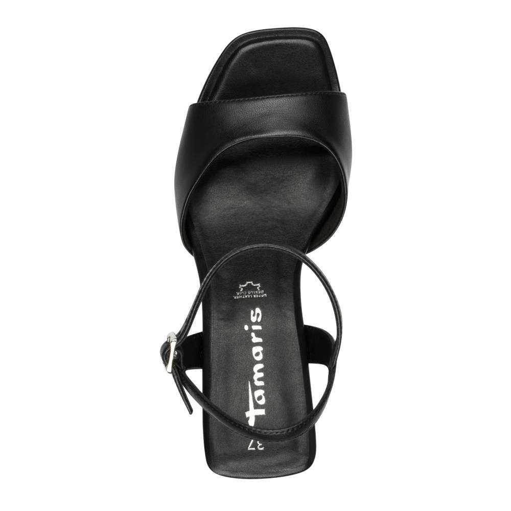 Exkluzivní černý model od značky TAMARIS s jednoduchým páskem v části nártu a svrchním materiálem z pravé přírodní usně. Obuv je vybavena řemínkem s přezkou, díky němuž si můžete boty upravit přesně podle Vašich představ. Se stélkou vyrobenou z paměťové pěny a stabilním podpatkem se můžete těšit na pohodlnou a komfortní chůzi po celý den nošení. Podpatek je navíc nevšední, který jen tak nikdo nemá. Tento vkusný model se bude skvěle vyjímat k rozevlátým letním šatům.