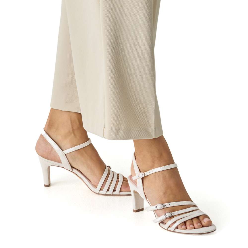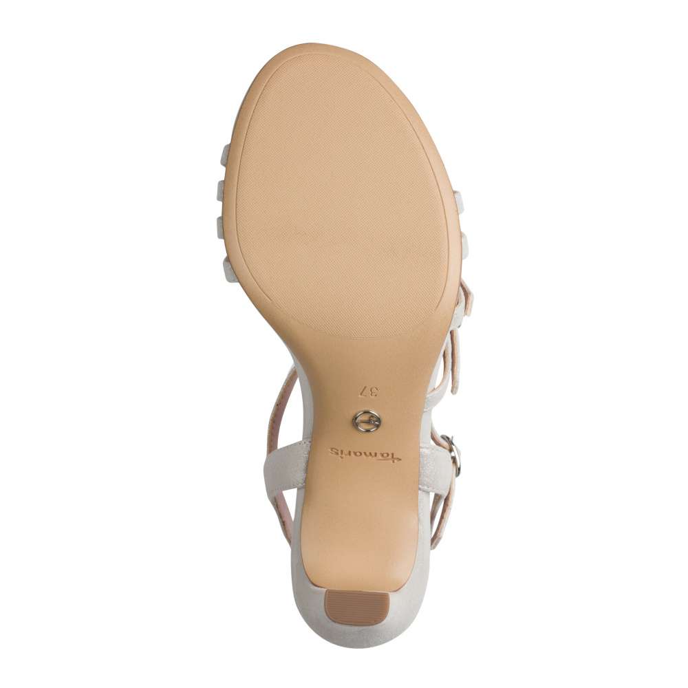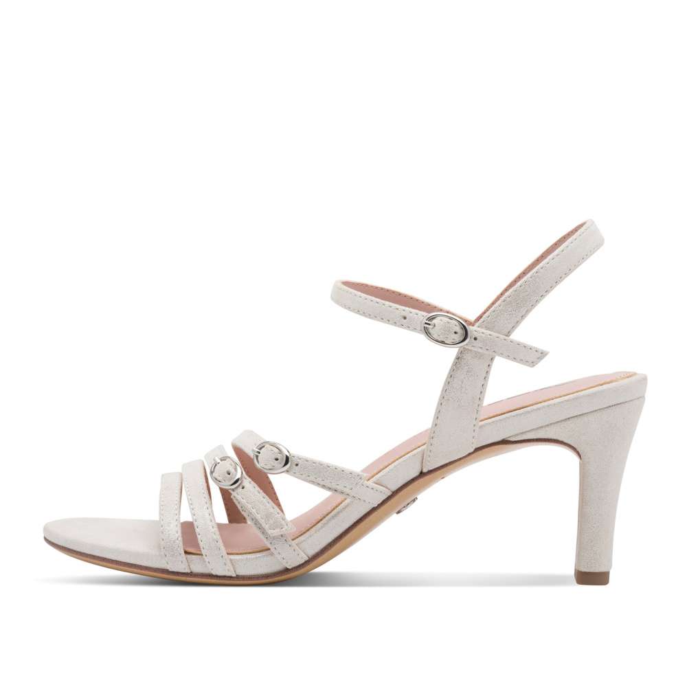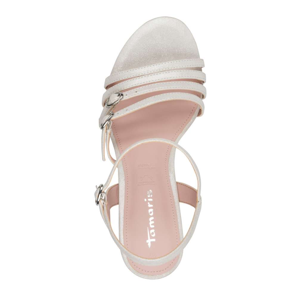 Tyto kožené sandály Tamaris jsou dokonalou kombinací elegance, ženskosti a pohodlí. Působivě poskládané tenké pásky svršku s jemnými odlesky vytvářejí jemnou hru linií, která dodá noze atraktivní vzhled. Pásek přes nárt s nastavitelnou sponou se dokonale přizpůsobí tvaru chodidla, zajišťuje pohodlí a jistotu při chůzi a umožňuje snadné nazouvání. Příjemně měkká kožená stélka obepíná chodidlo komfortem a podporou, díky čemuž se každý krok stává radostí. Vysoký podpatek elegantně prodlužuje nohy a dodává postavě ladnost. Tyto sandály jsou ideální volbou pro ženy, které chtějí vyzařovat ženskost, sebevědomí a styl při každé příležitosti – od letní procházky po večerní událost.