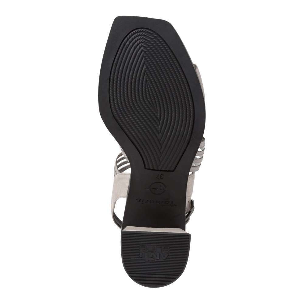 Tento úžasný sandálek od značky Tamaris dodá šmrnc každému outfitu. Svršek tvoří pásky v lichotivém provedení. Pásek u kotníku nabízí zapínaní s funkční přezkou, kterou si uzpůsobíte botu přesně na sebe. V 5 cm vysokém podpatku navíc naleznete prvek na odpružení, který tlumí nárazy a protiskluzový prvek, který výrazně snižuje riziko uklouznutí. Po kombinaci s šaty vznikne krásný letní outfit vhodný i na společenské akce. Technologie: Stélka Touch-it – měkká stélka, která se dokonale přizpůsobí tvaru nohy, a díky tomu při nošení zajišťuje optimální pohodlí. Technologie ANTISLIDE – obuv s patentovaným protiskluzovým prvkem v podpatku, který výrazným způsobem snižuje riziko uklouznutí na kluzkém povrchu. Technologie ANTISHOKK – speciální odpružující prvek v podpatku, který tlumí nárazy a otřesy způsobené chůzí o cca 50 % a tím šetří páteř, meziobratlové ploténky a klouby. Dlouhodobě tedy ulevuje celé partii zad a díky tomu můžete nosit své oblíbené boty na vysokých podpatcích po celý den i v kanceláři, aniž by Vás bolely nohy.