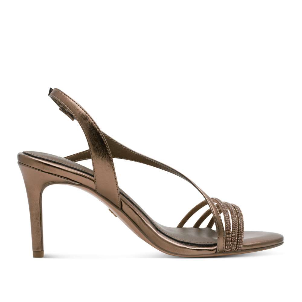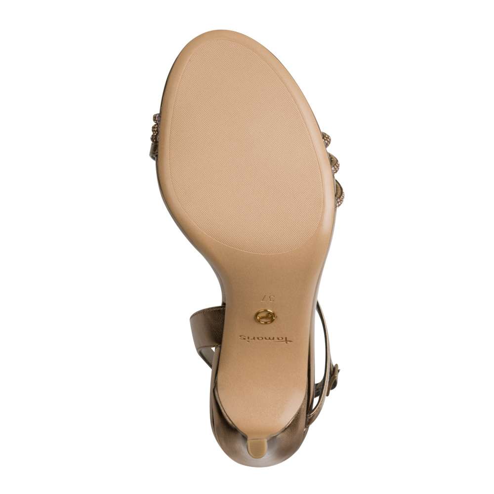Ladné linie pásků lodiček Tamaris se stanou skutečným šperkem vašich nohou. Elegantní design podtrhují zlaté odlesky materiálu, které dodávají obuvi luxusní nádech, zatímco minimalistické kamínky jemně rozzáří každý krok a přidají modelu nádech výjimečnosti. O příjemný pocit při nošení se postará komfortní stélka, která zajistí pohodlí i během delších společenských událostí. Vysoký podpatek krásně prodlouží siluetu, dodá postavě eleganci a zvýrazní ženský půvab. Tyto lodičky Tamaris jsou ideální volbou pro chvíle, kdy chcete zazářit – perfektně doplní společenské šaty, elegantní outfit i slavnostní příležitosti a stanou se nepřehlédnutelným doplňkem vašeho stylu.
