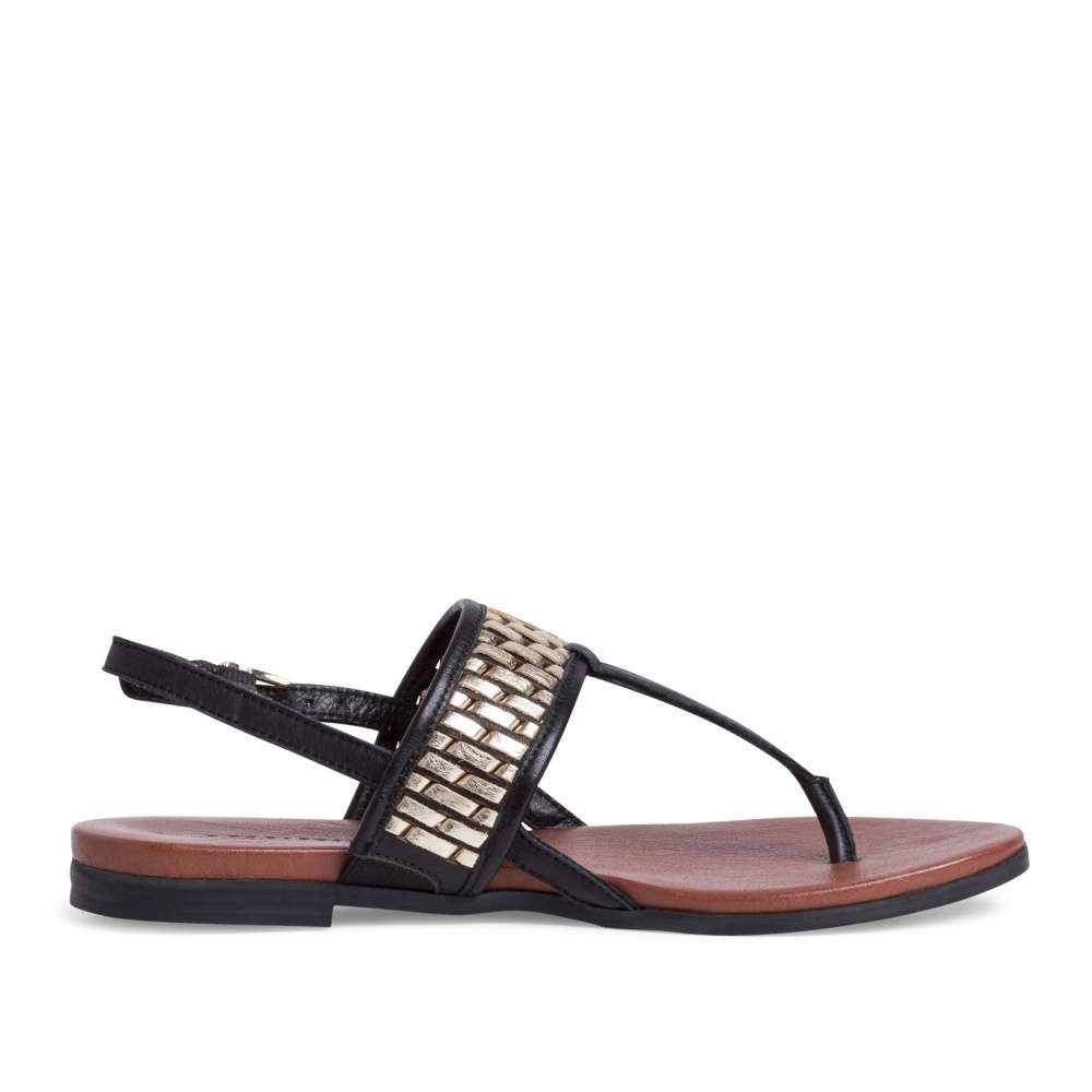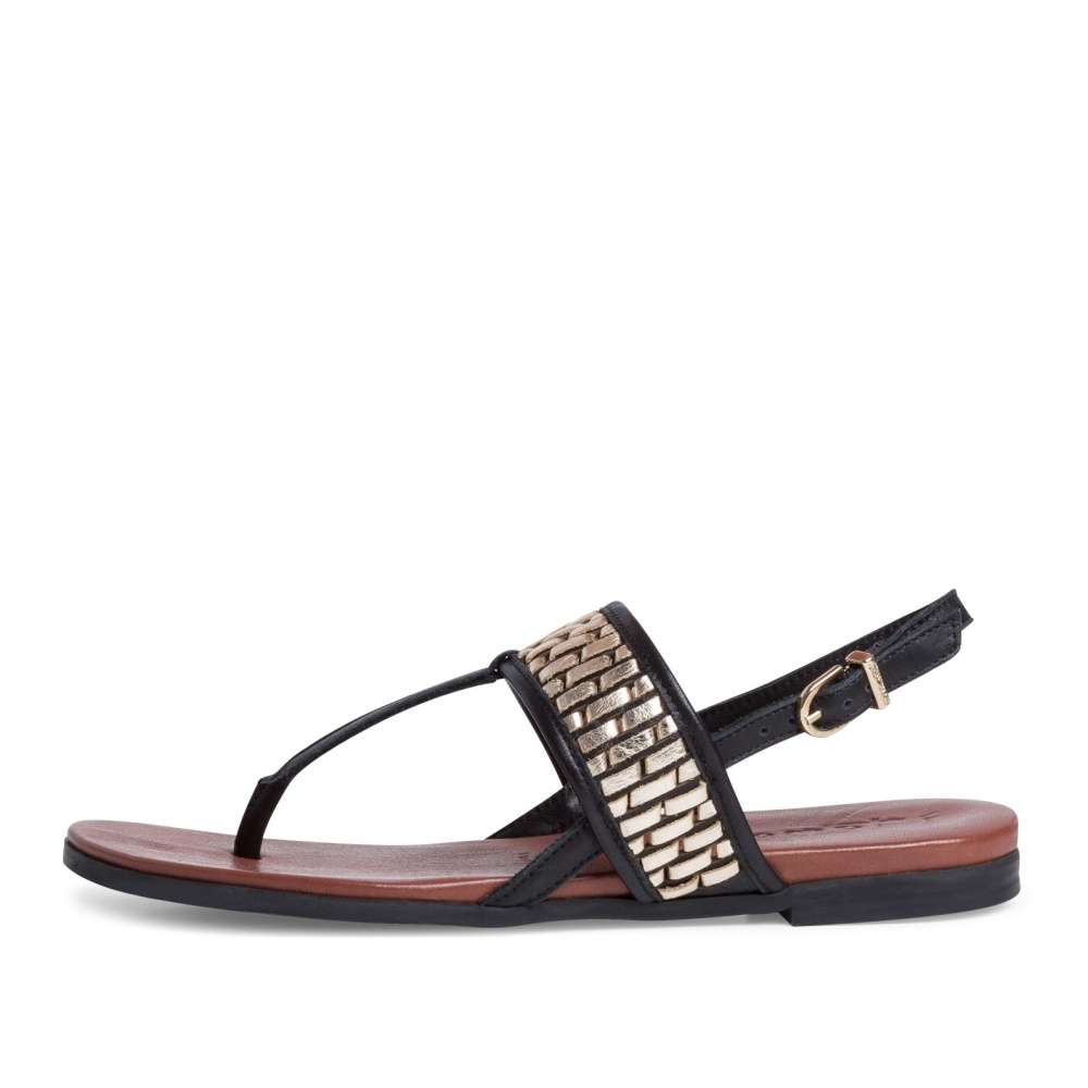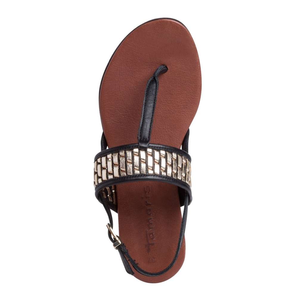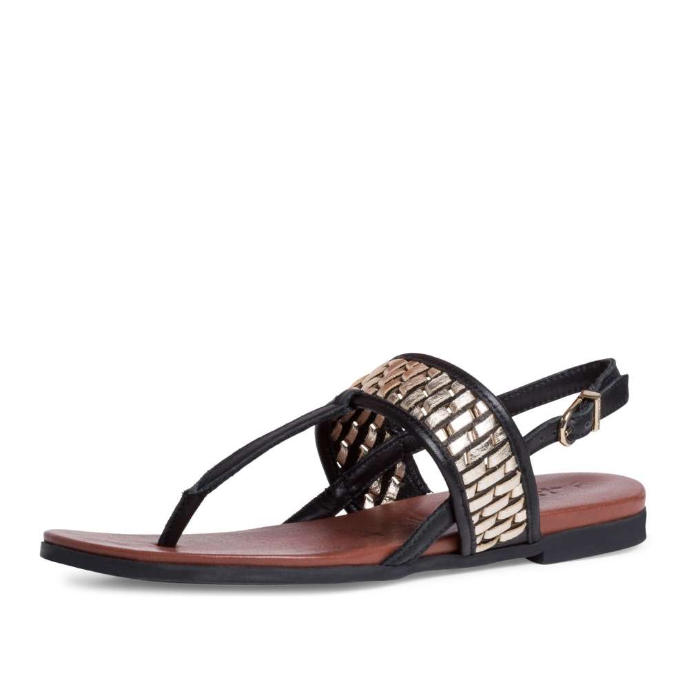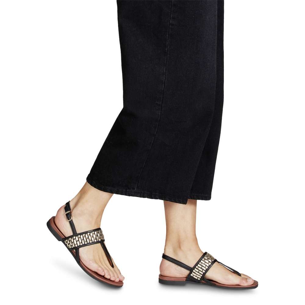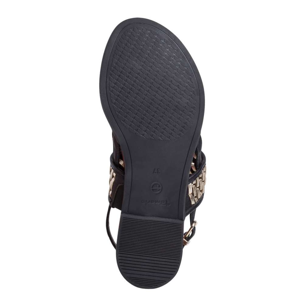 Černé kožené sandály ve stylu žabek s metalickými prvky, značky TAMARIS.