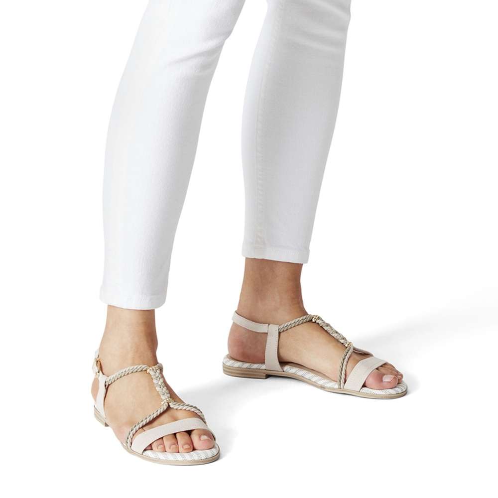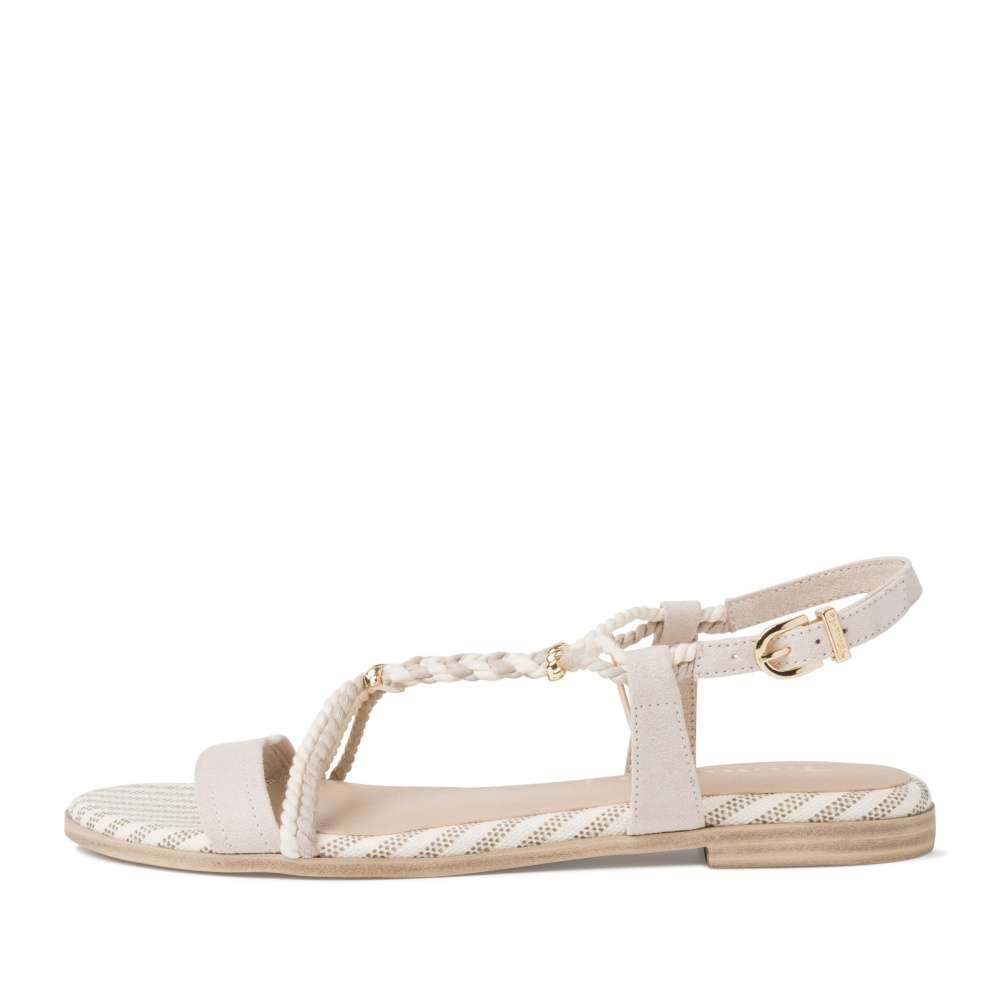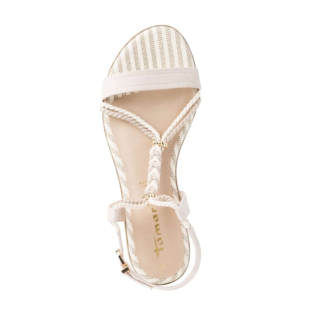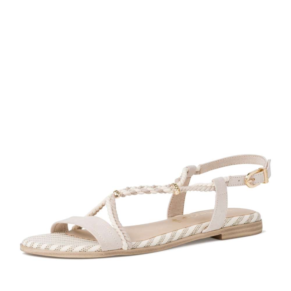 Krásné elegantní sandálky značky TAMARIS, budou pro Vás tou správnou volbou. Ozdobou jsou překřížené ozdobené pletené pásky přes nárt se zlatými dekorativními kroužky. Pásek kolem kotníku má zapínání sponkou s lepší přizpůsobení přímo k Vaší noze. Tyto překrásné sandálky Vám nesmí chybět ve Vašem botníku, které zkombinujete s hezkými letními šaty nebo kalhotami nad kotníky.